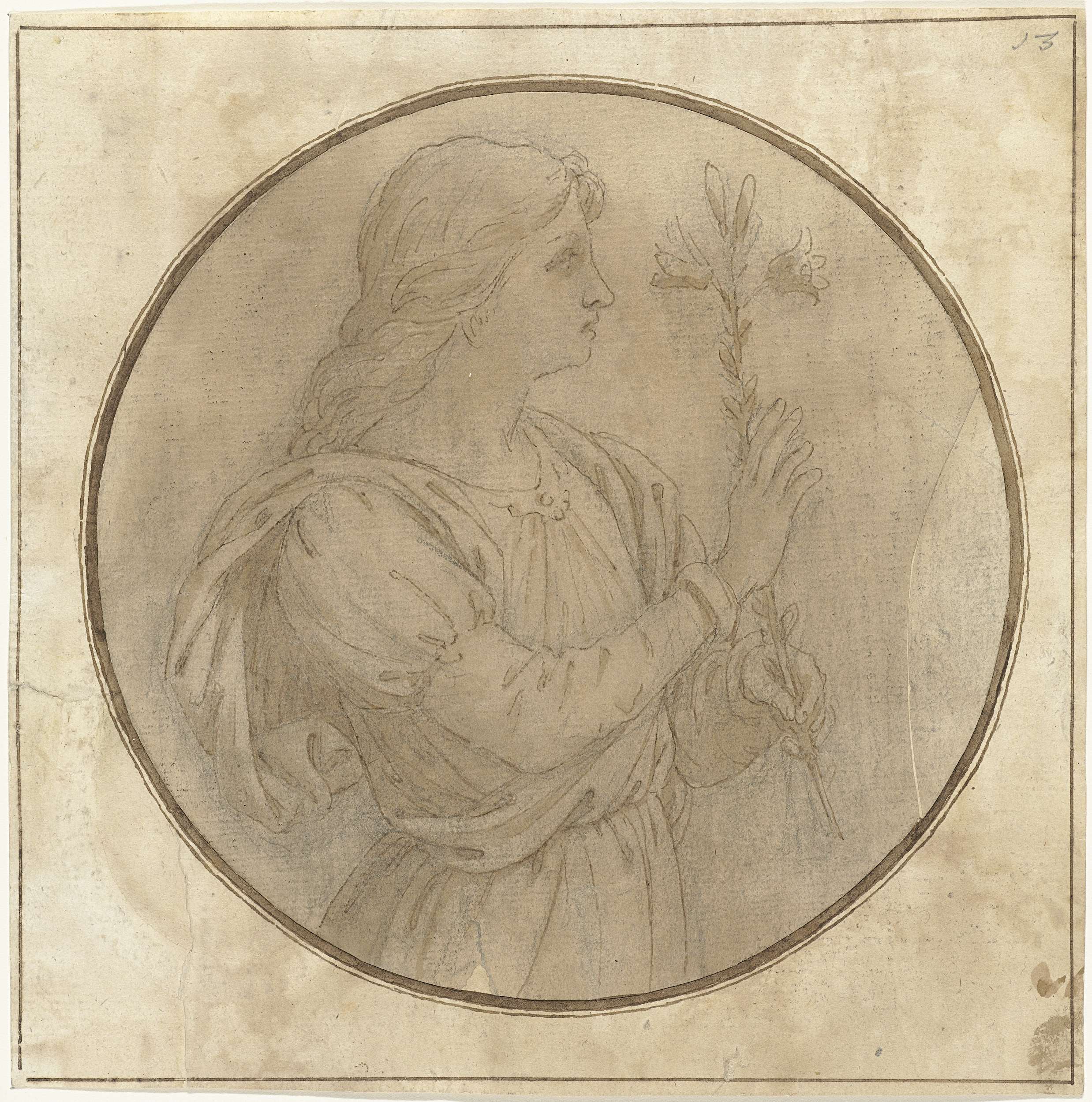 Ontwerp voor een rond plafond met Mercurius en Minerva