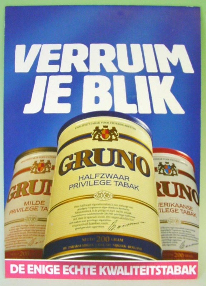 Reclamebord van karton voor het merk Gruno tabak ca....