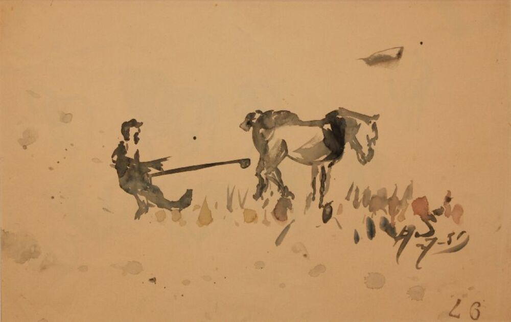 Foto, voorstellende het dorsen van graan, begin 20st...