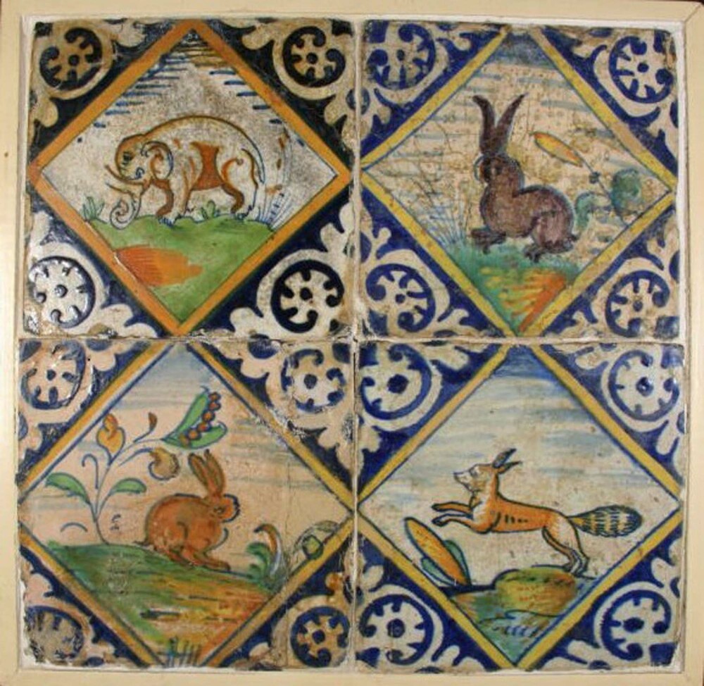 tegel van keramiek met tinglazuur, voorstellende: vo...