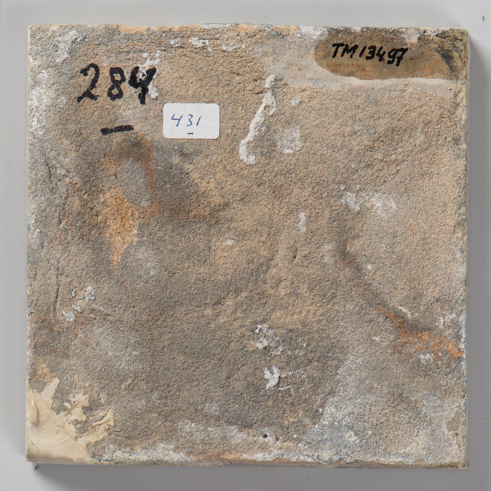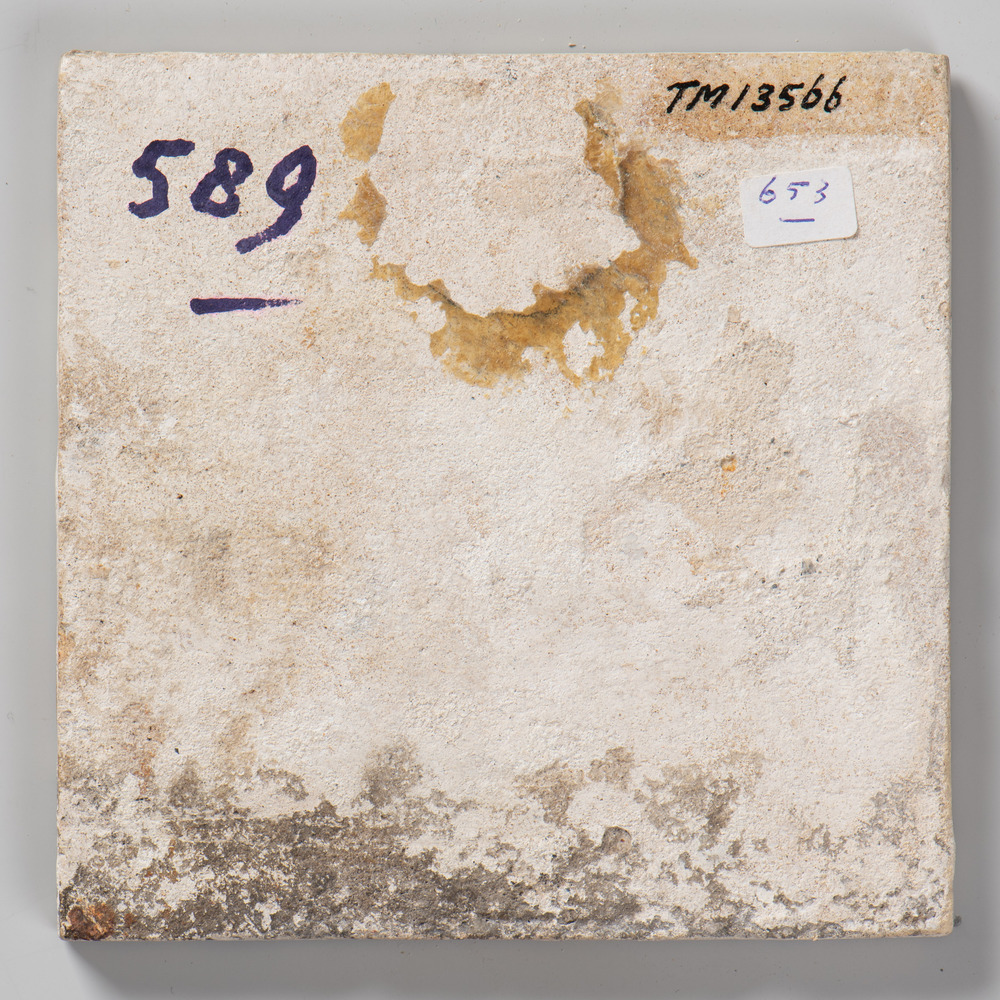 Tegel van keramiek met tinglazuur, voorstellende: or...