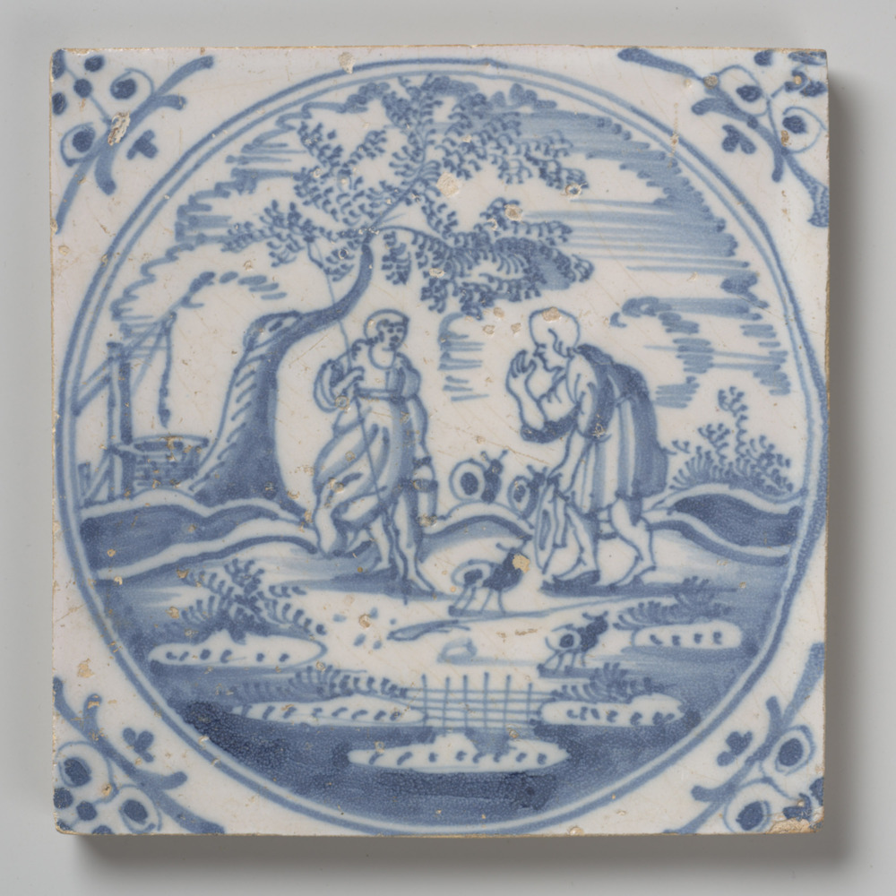 tegel van aardewerk met tinglazuur, voorstellende: h...