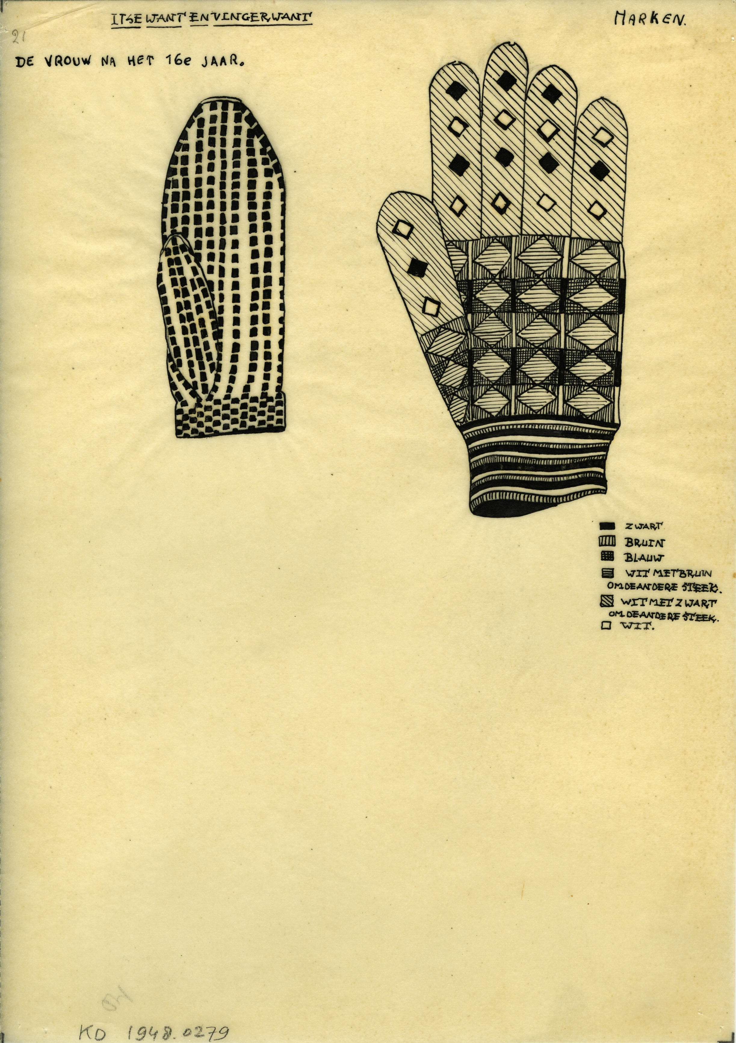 Tekening van een want en handschoen, Marken (patroon...