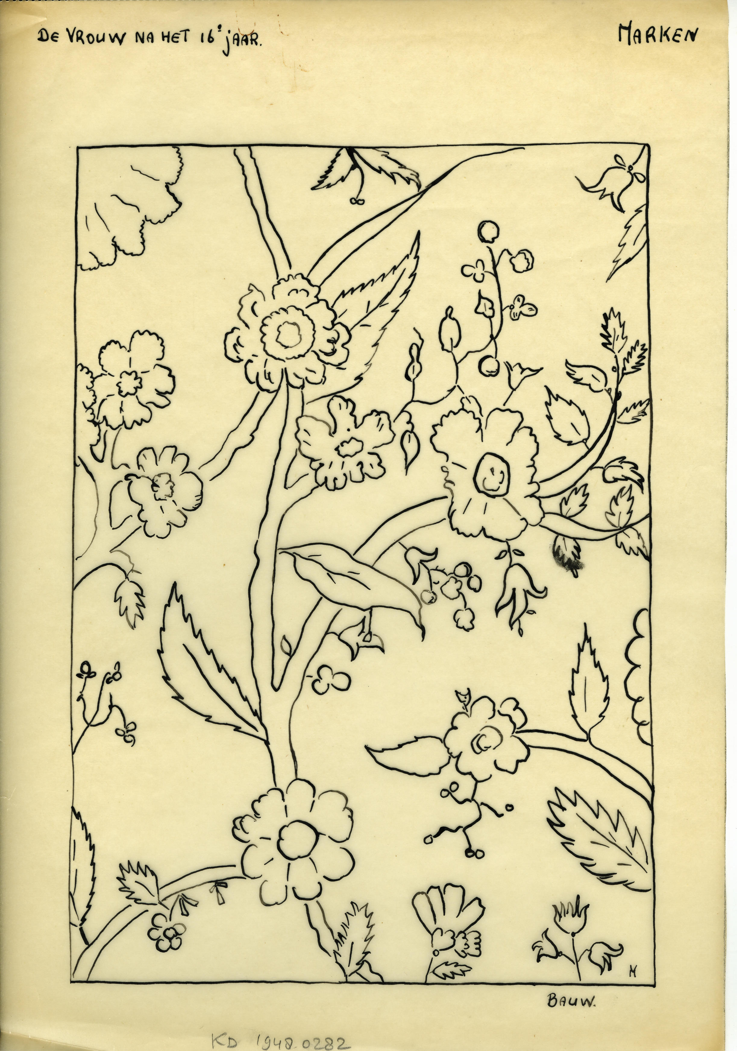 Tekening van een 'bauw', Marken (patroontekening)