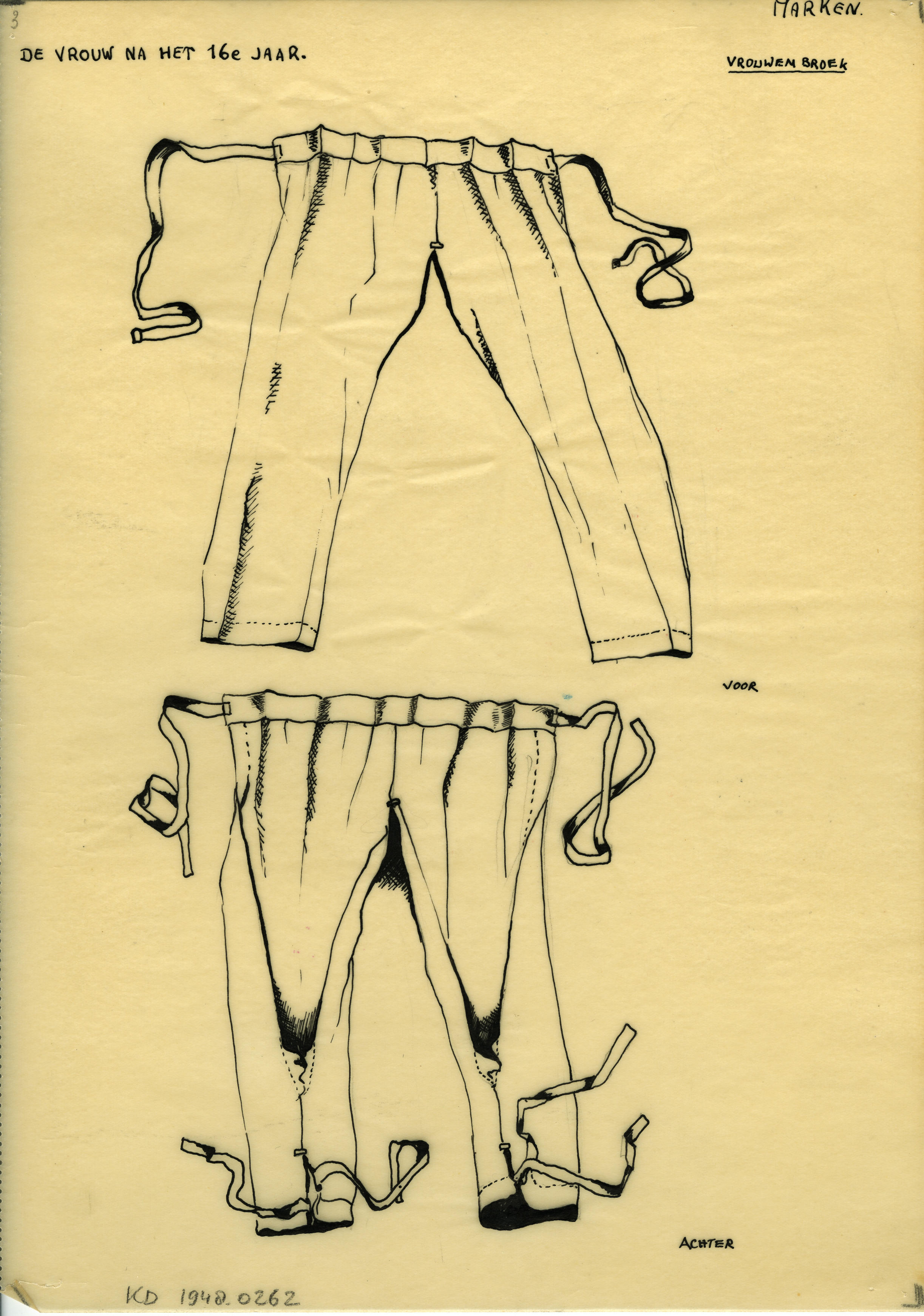 Tekening van een vrouwenbroek, Marken (patroontekening)