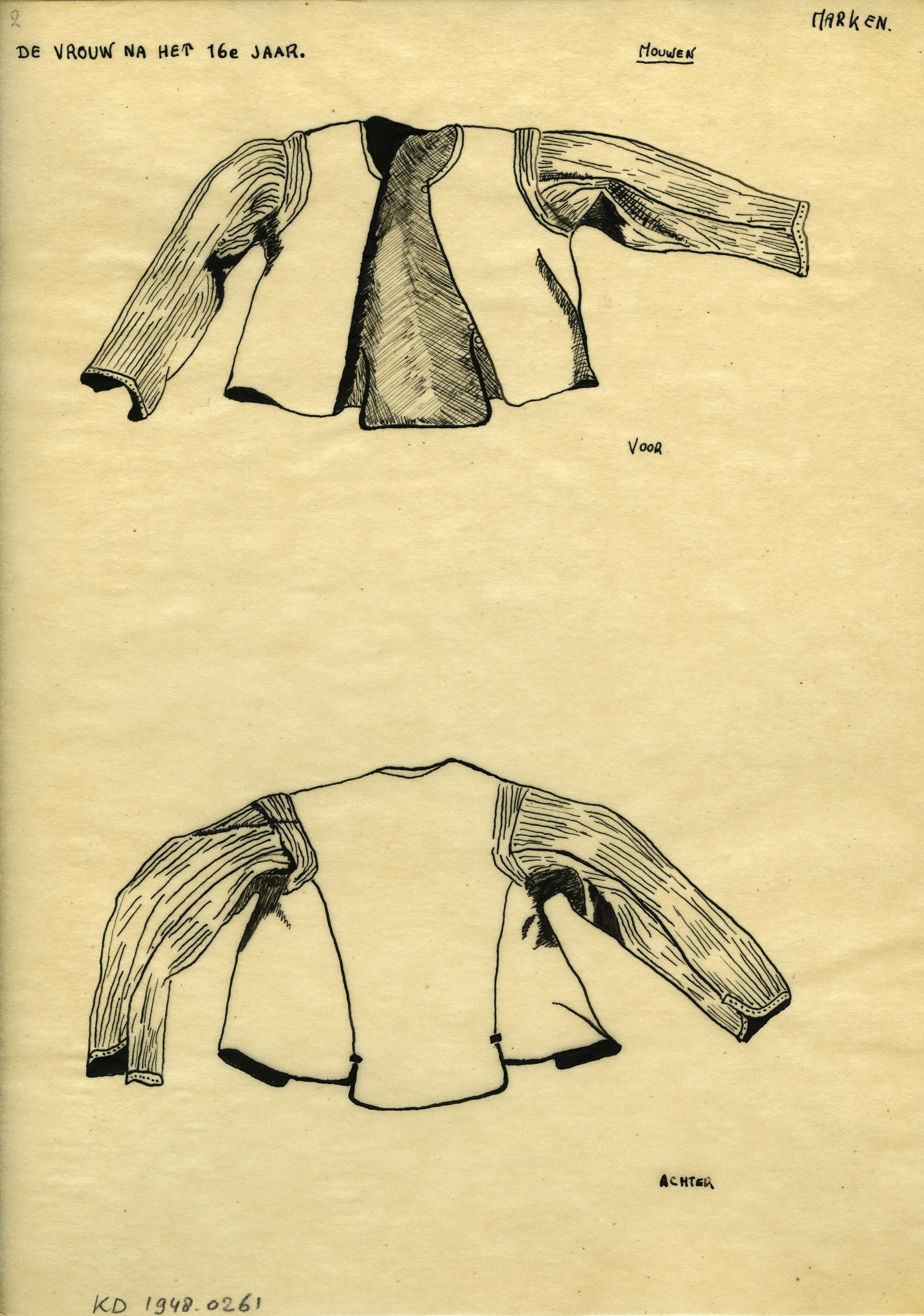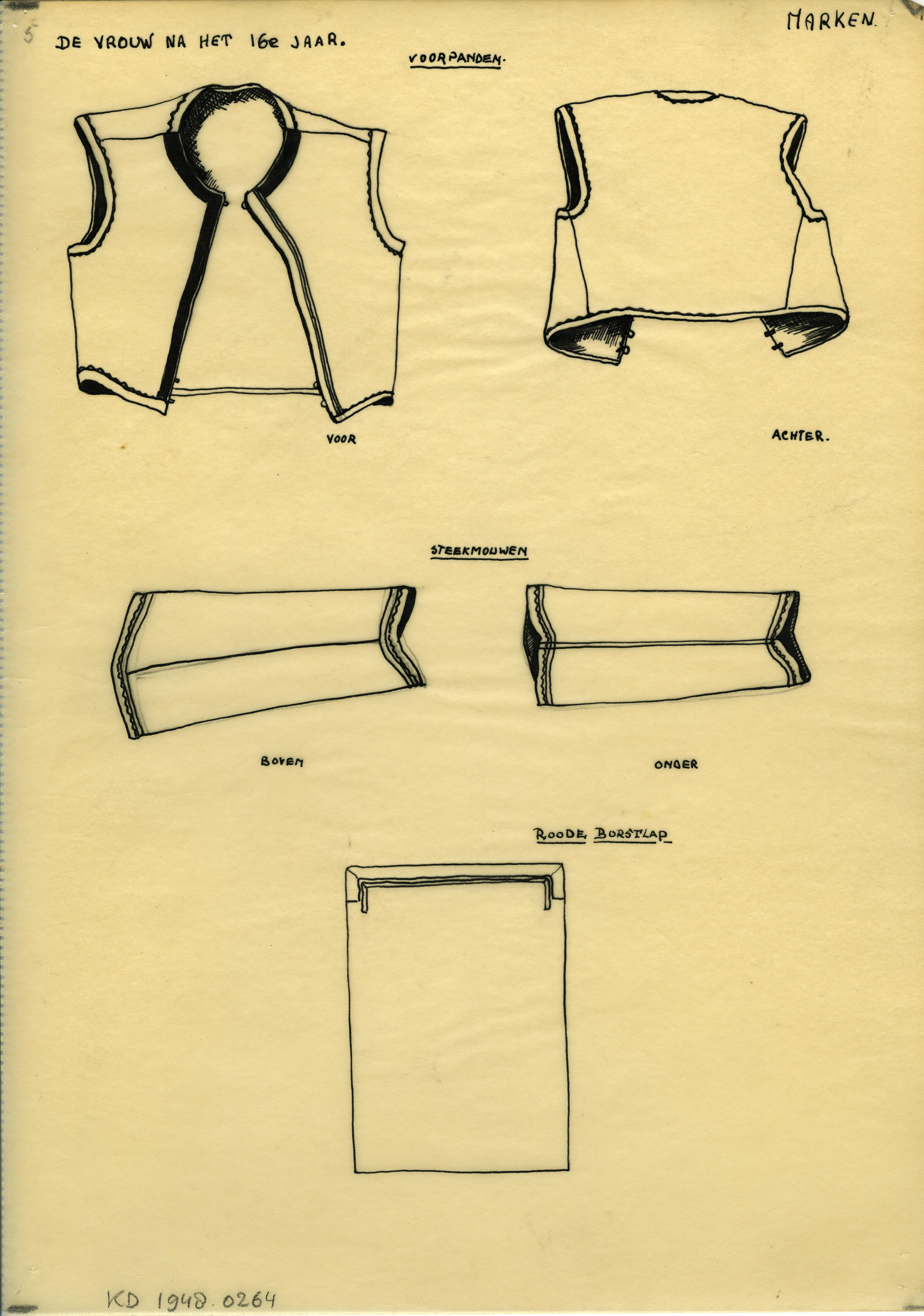 Tekening van 'mouwen', Marken (patroontekening)