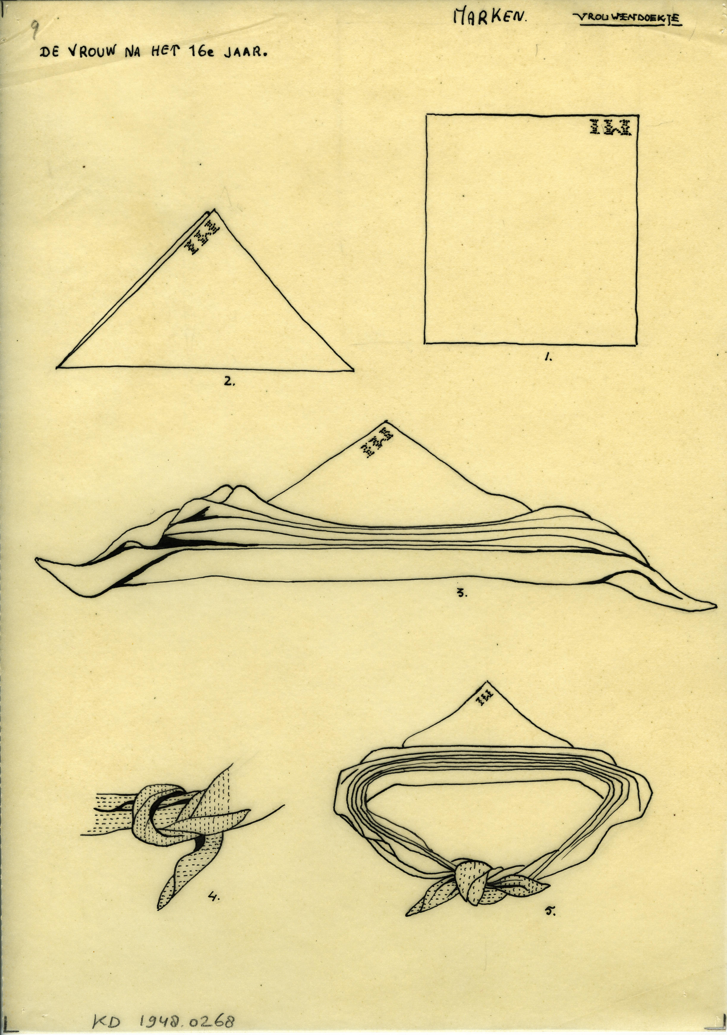 Tekening van vrouwendoekjes, Marken (patroontekening)