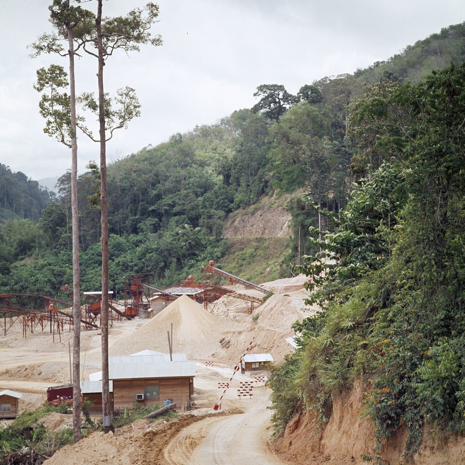 Het wegkappen van het regenwoud t.b.v. een weg (Kual...