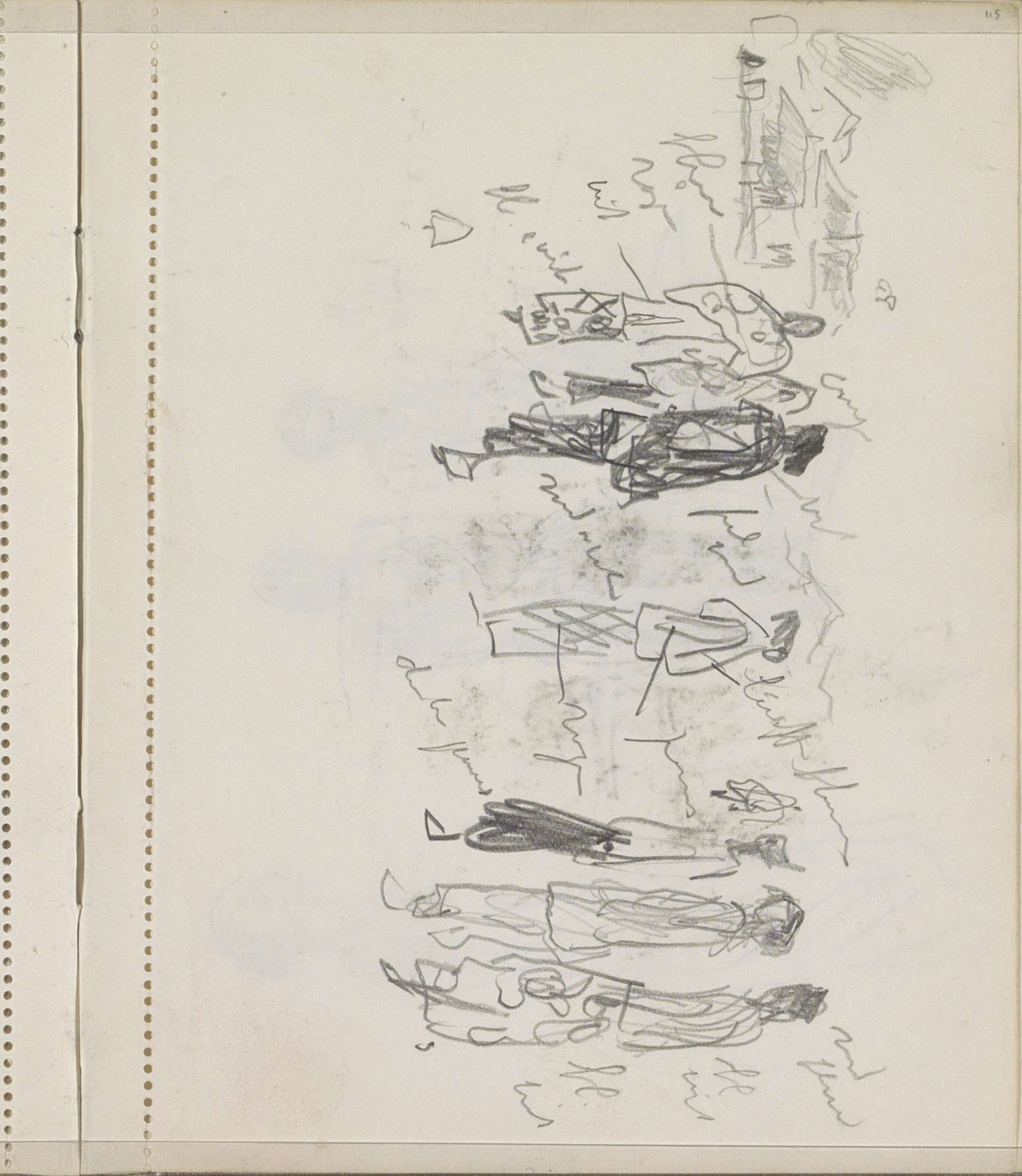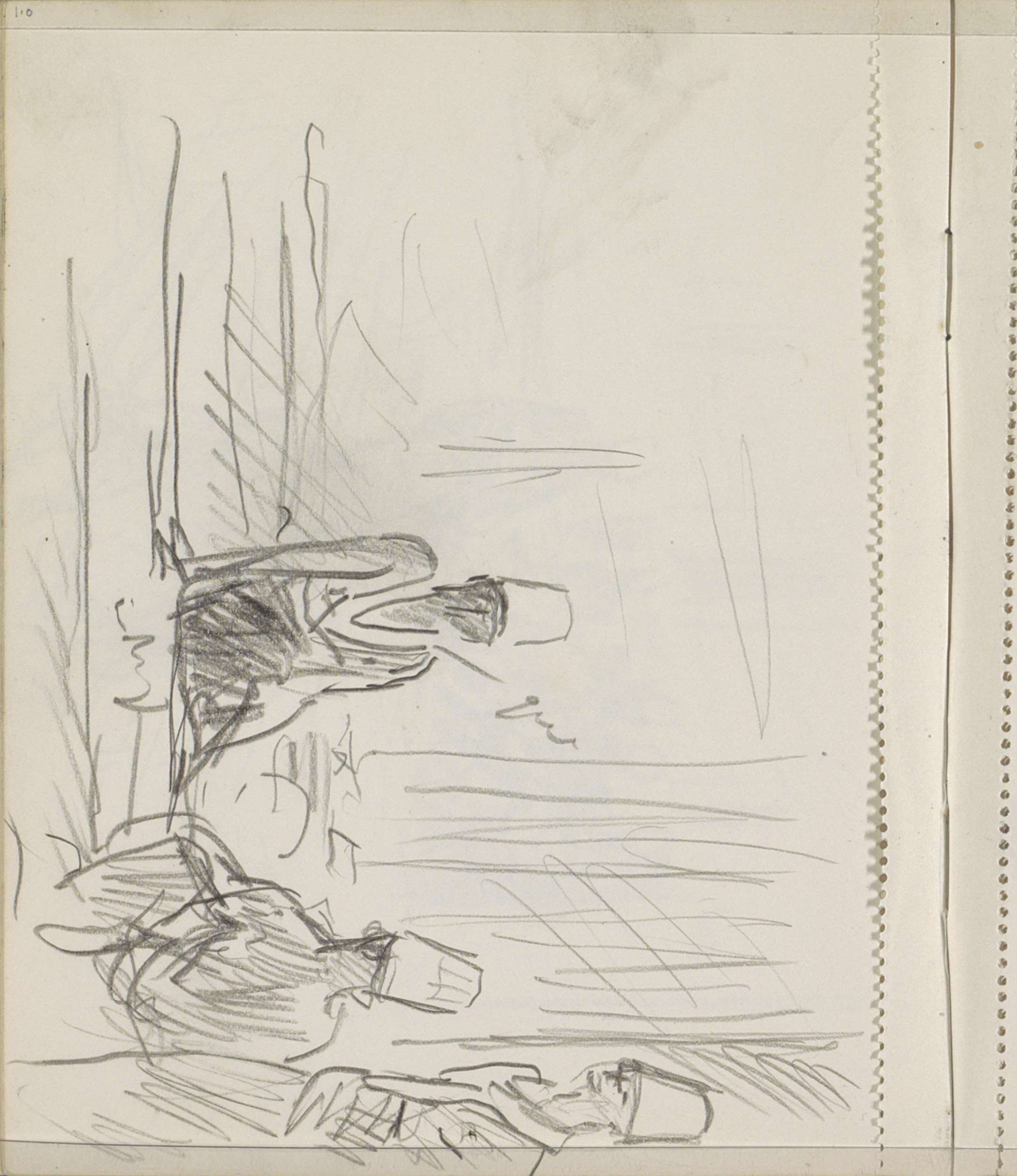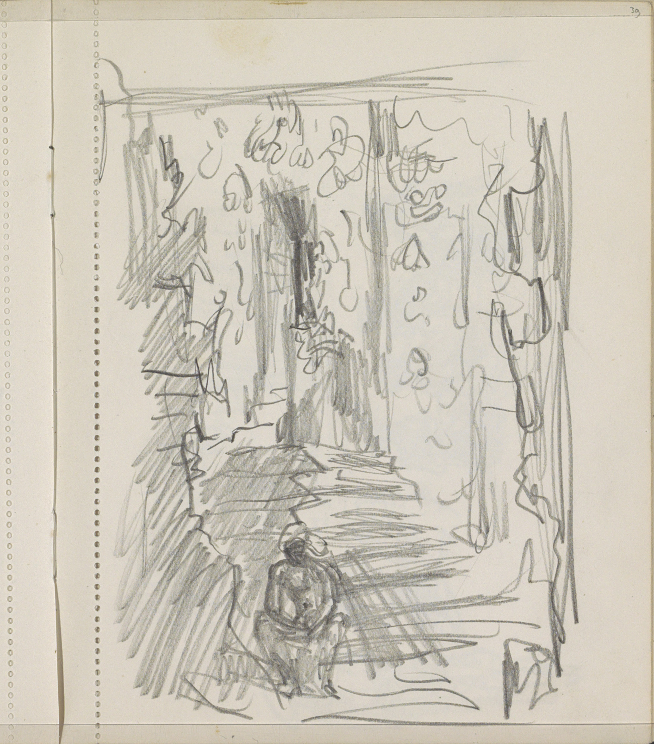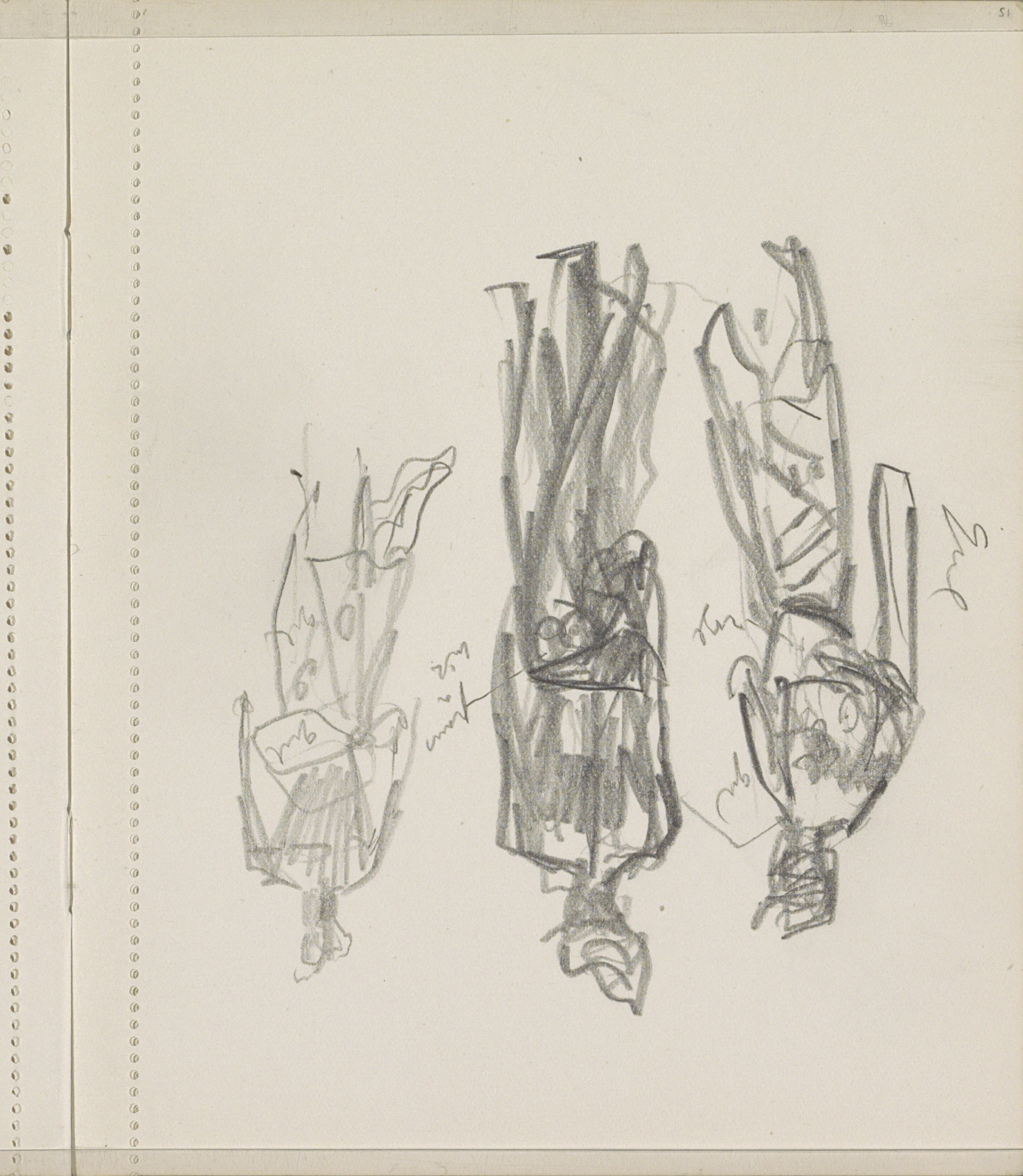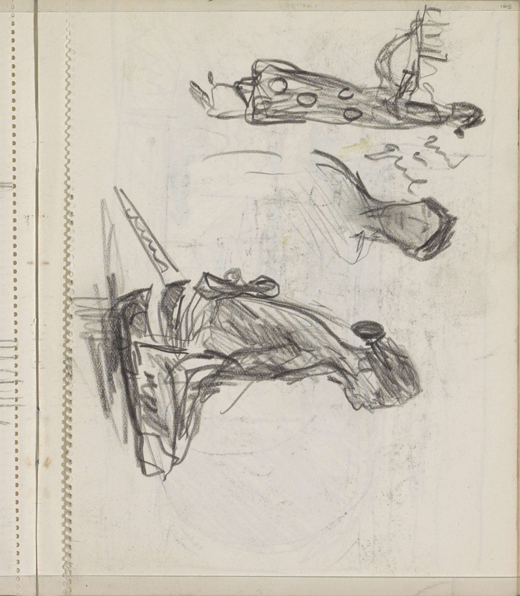 Figuren op de trappen voor een gebouw, mogelijk een ...