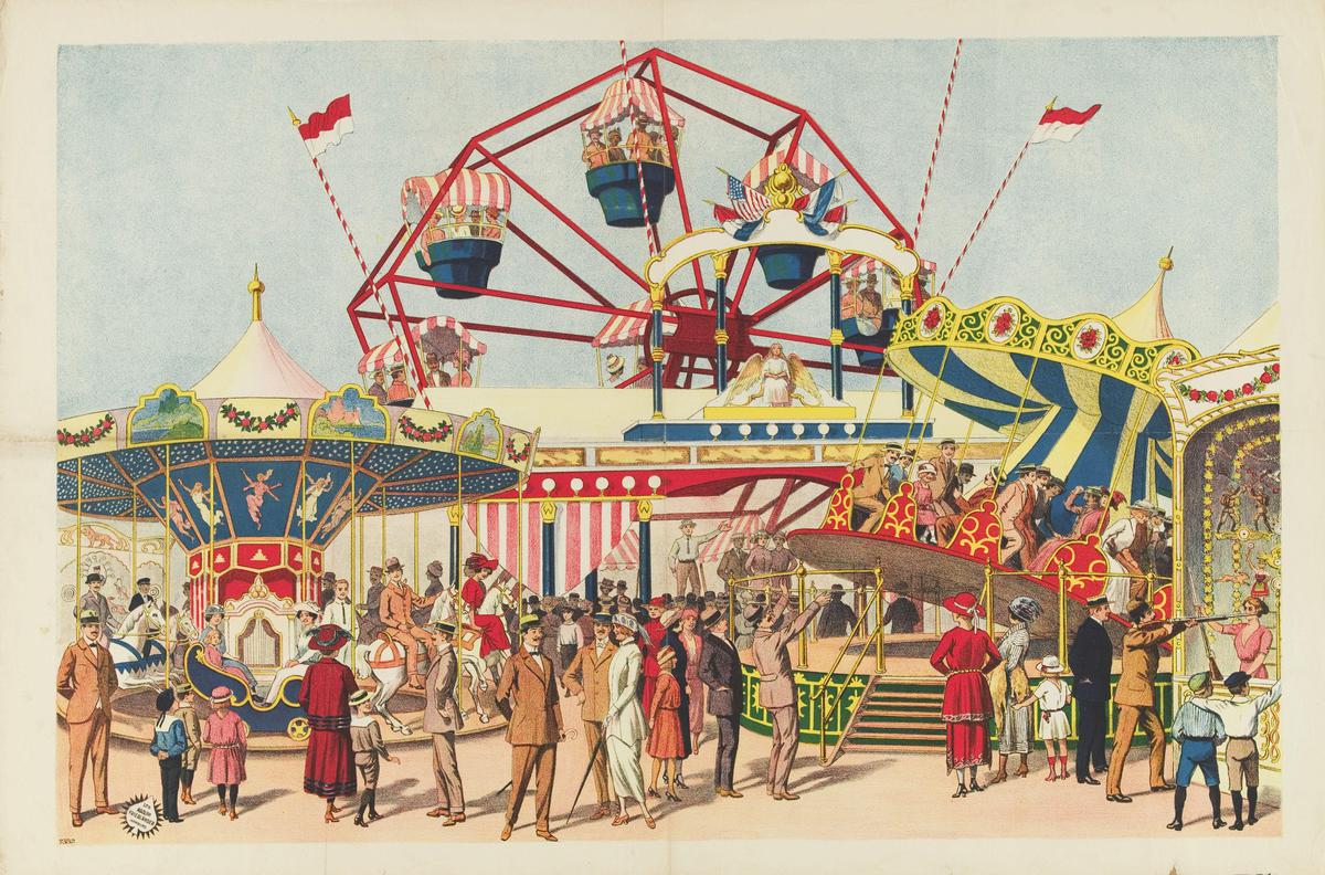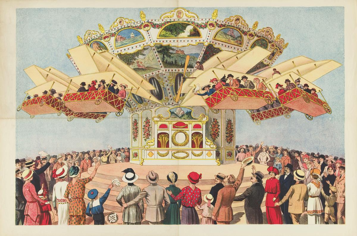 Walter Lowe, wielr. op schuine ladder + circustent-i...