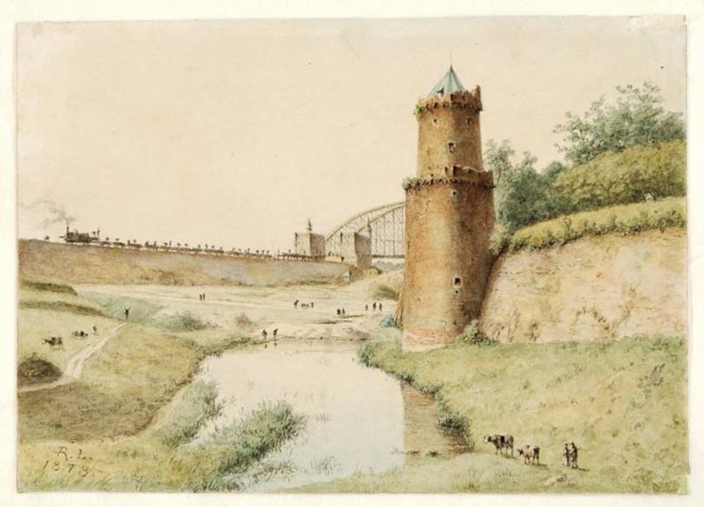 Gezicht op de stadsmuur van Nijmegen met de Kronenbu...