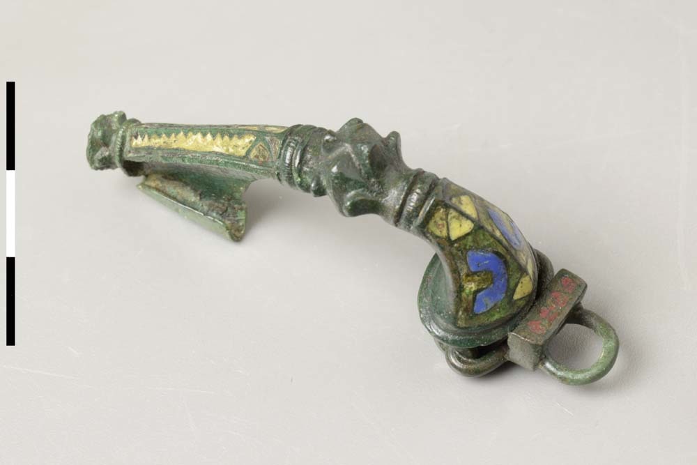 Geëmailleerde Britse trompetkopfibula van brons uit ...