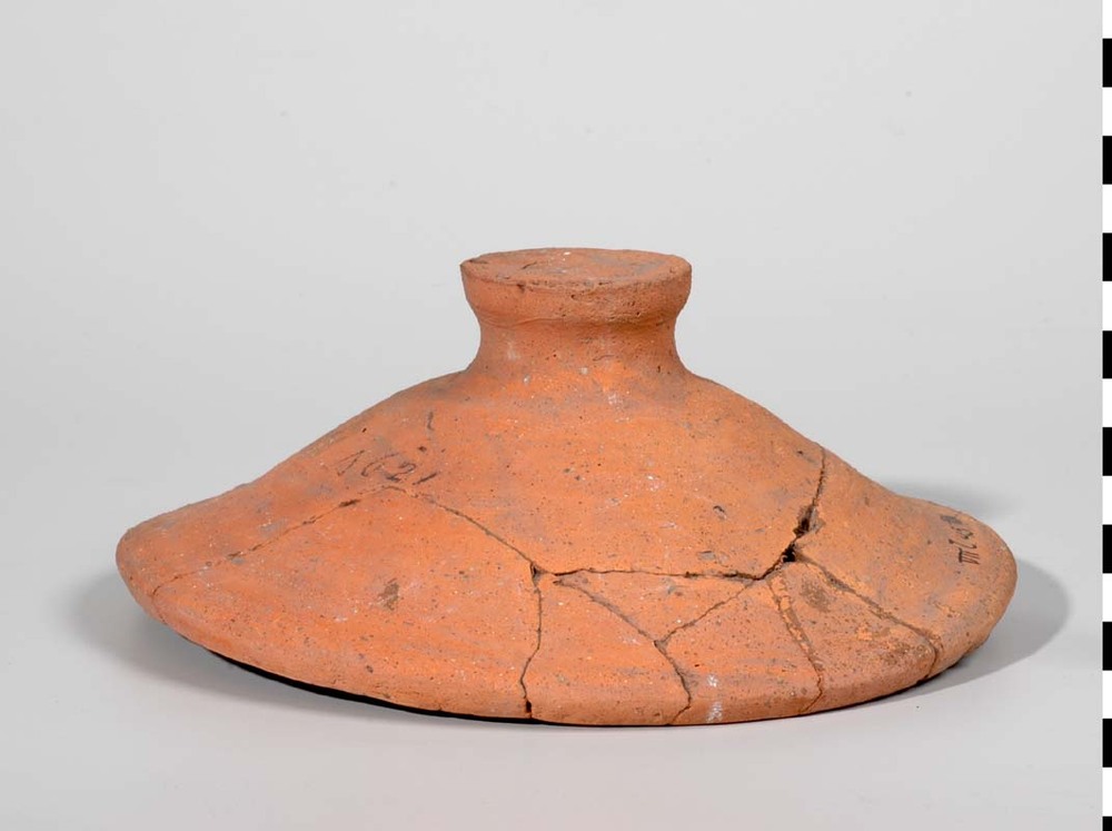 Kookpot met deksel van ruwwandig rossig aardewerk ui...