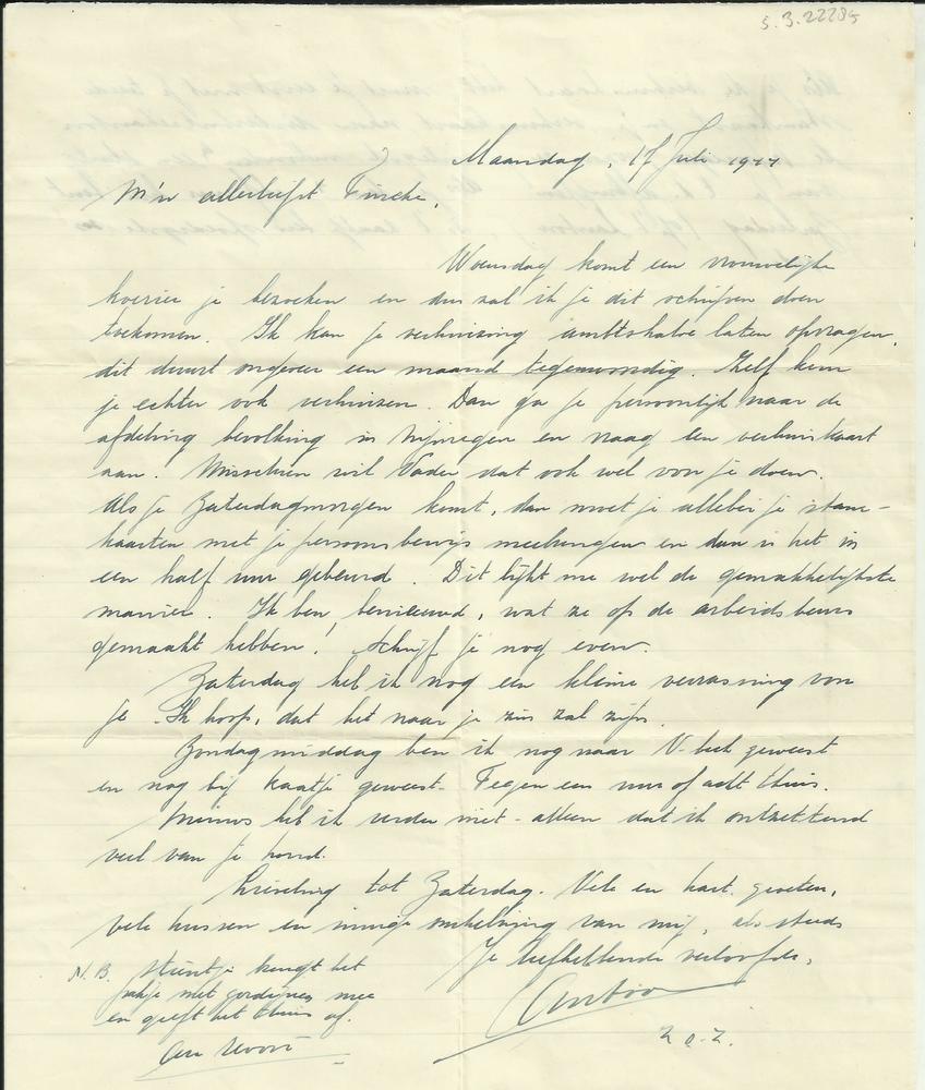 Brief van Antoon Jeuken aan verloofde, 17 juli 1944