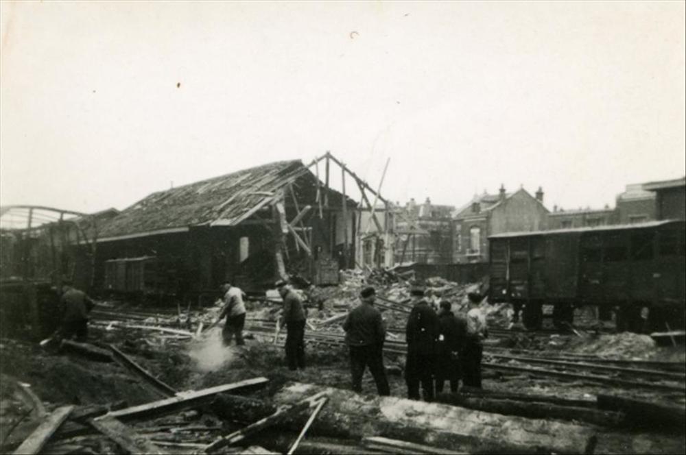 Nijmegen, 22 februari 1944; uitgebrand laaddepot met...