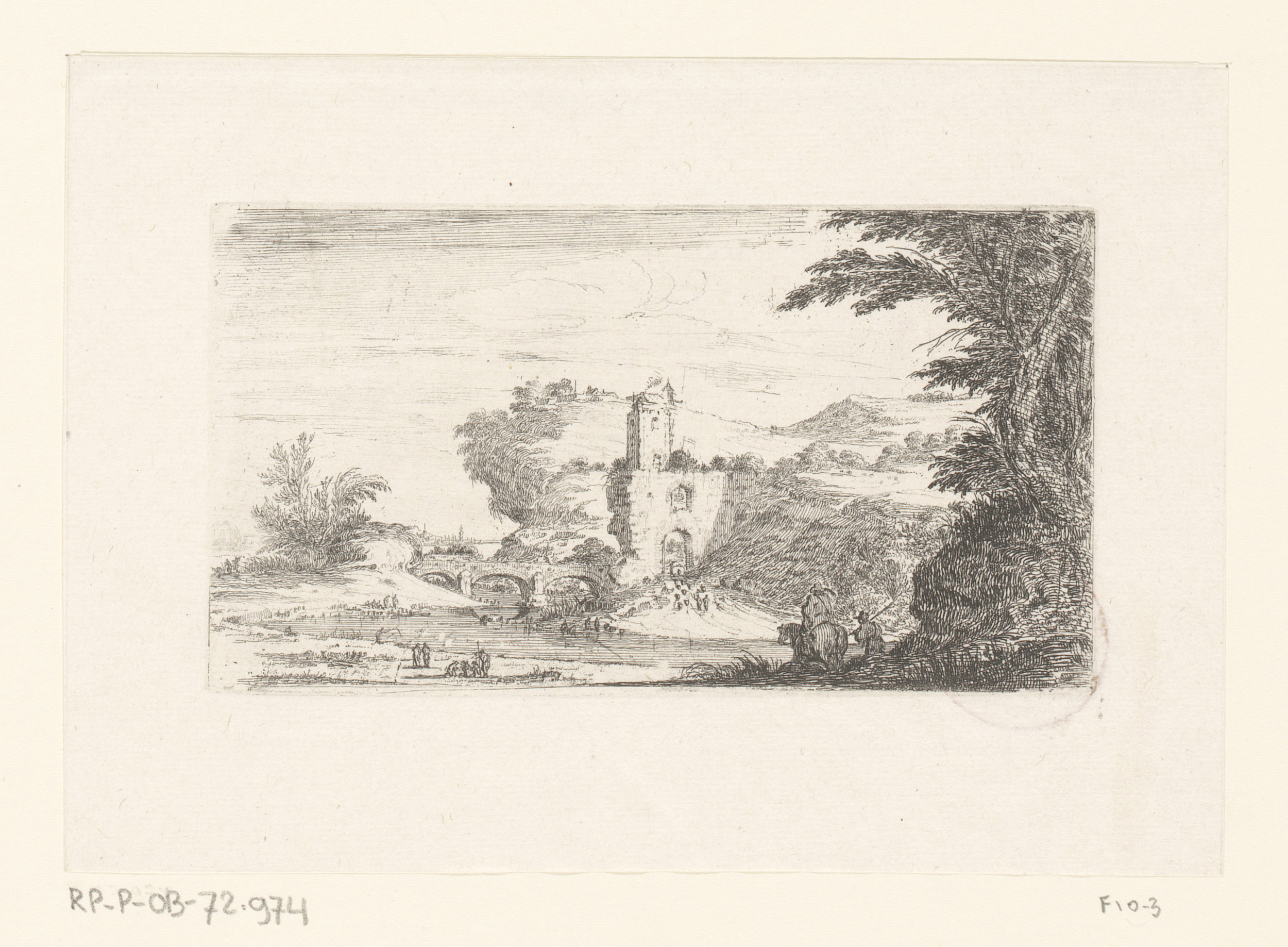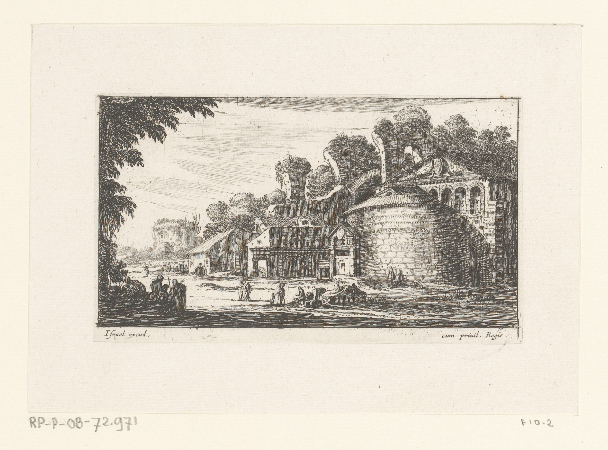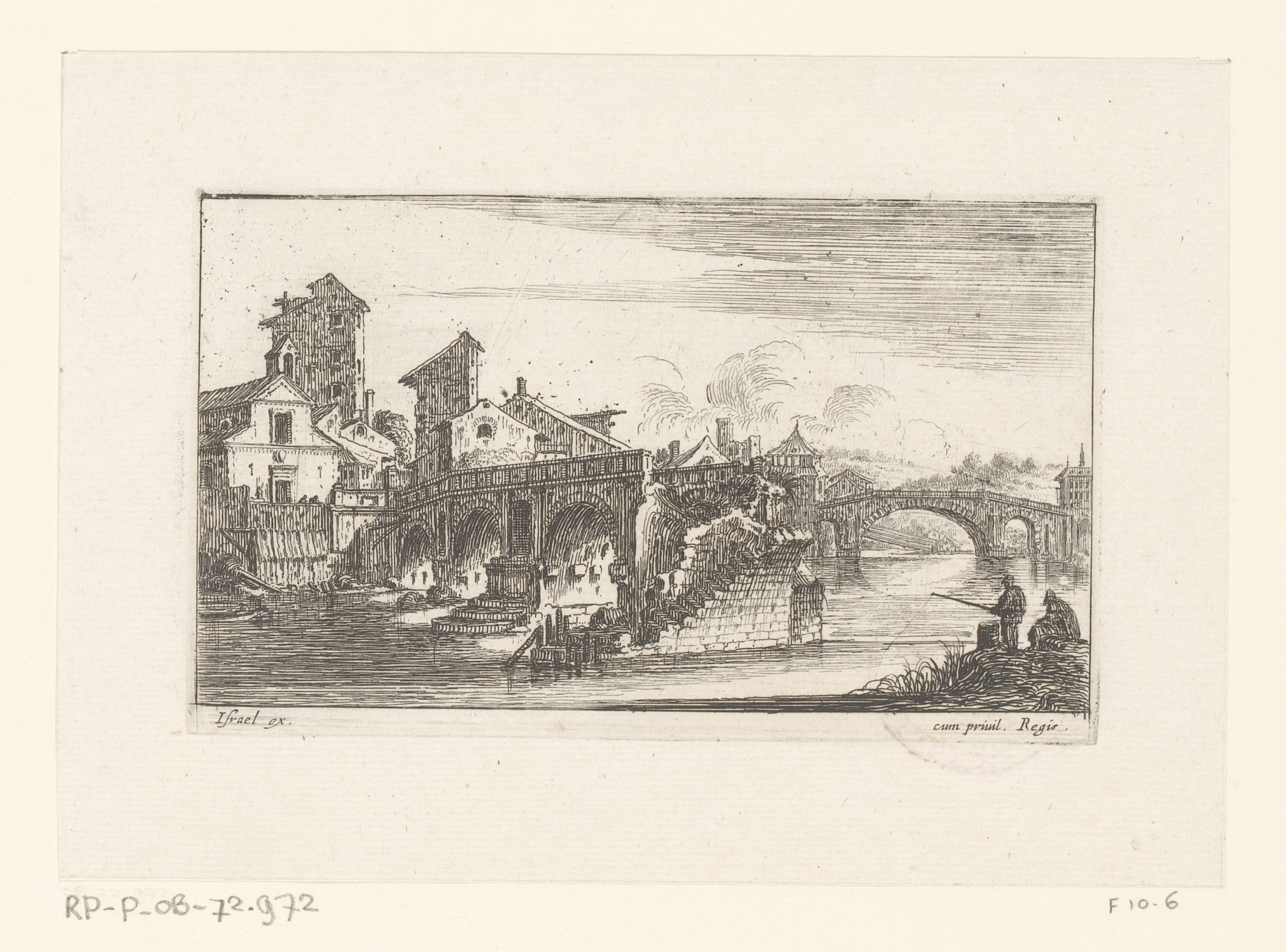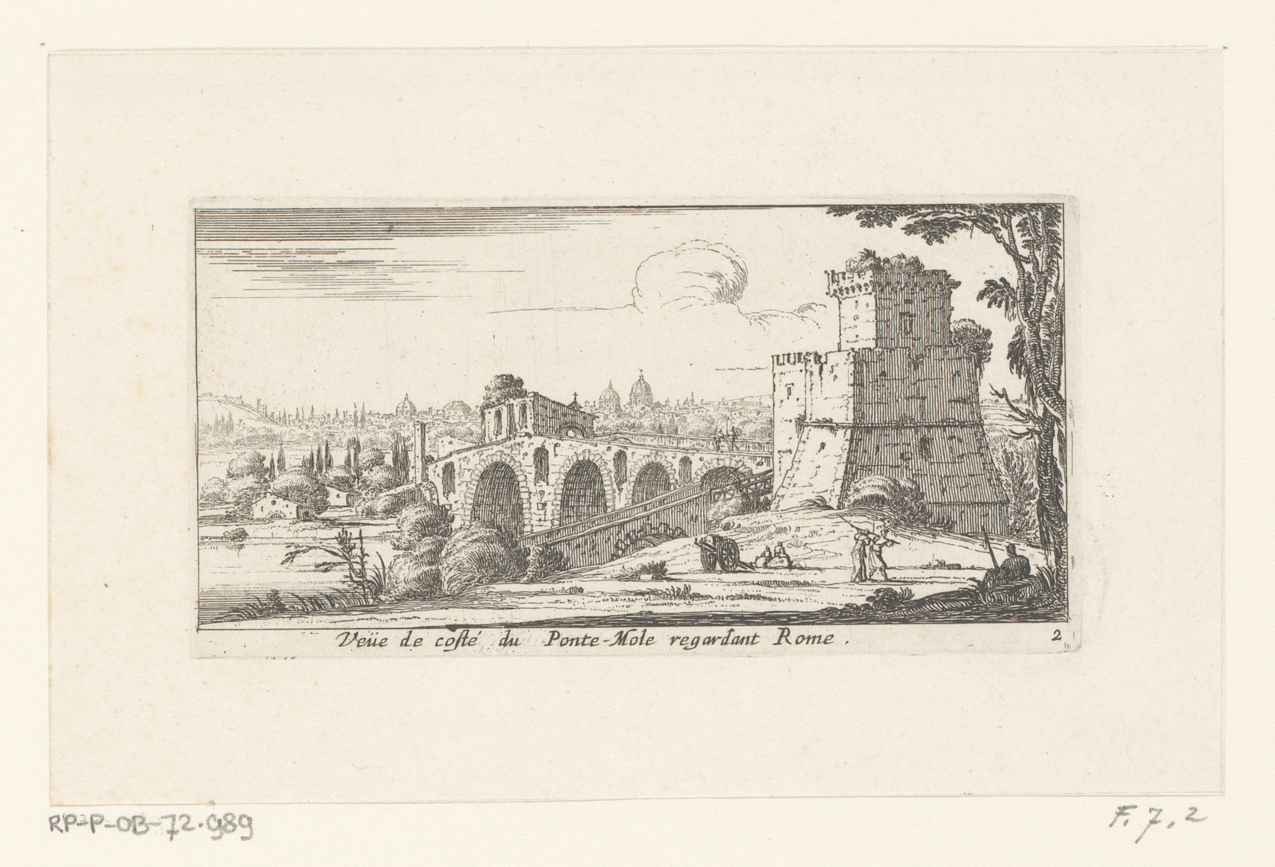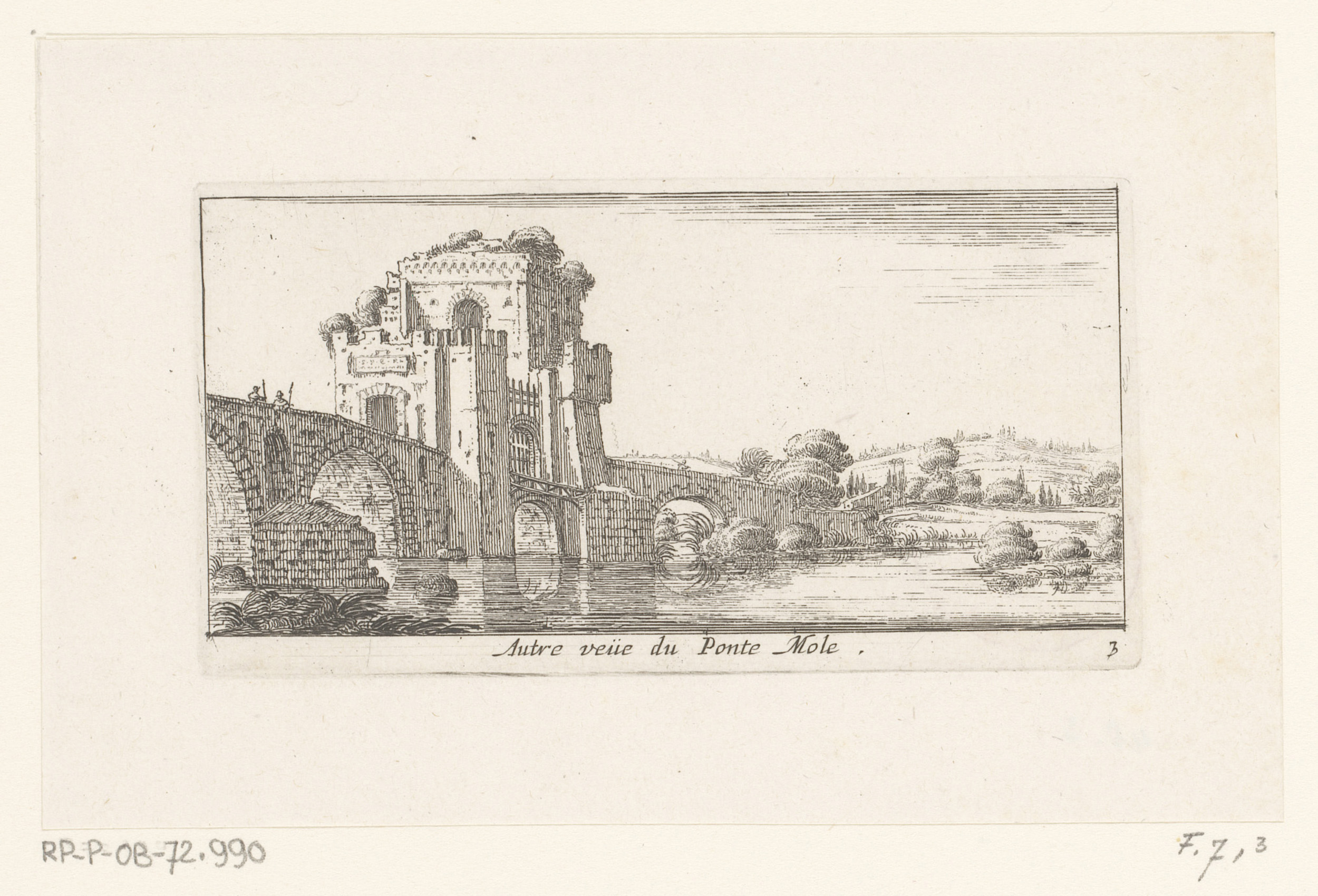 Gezicht op de Ponte Lucano en het mausoleum van Plau...