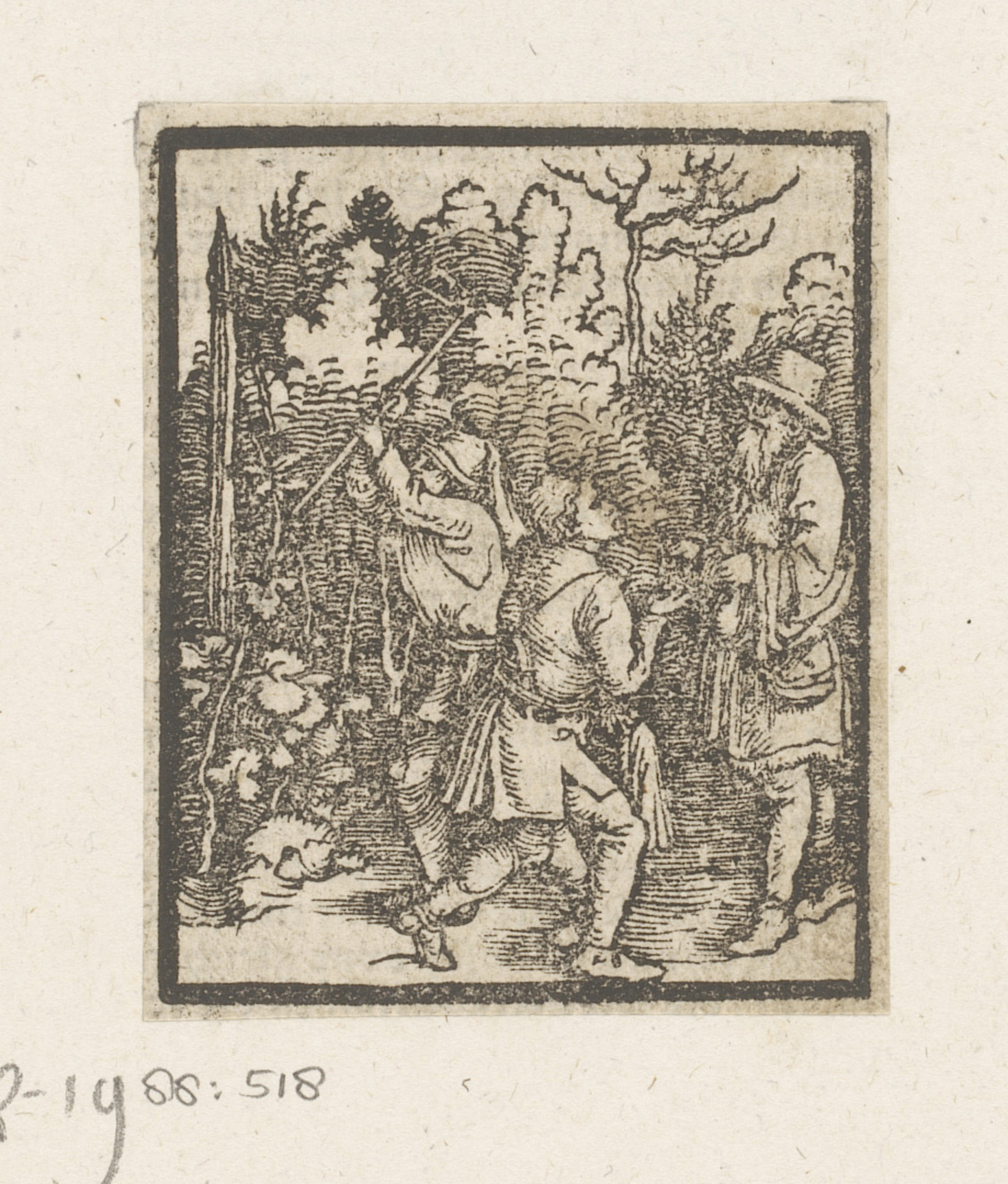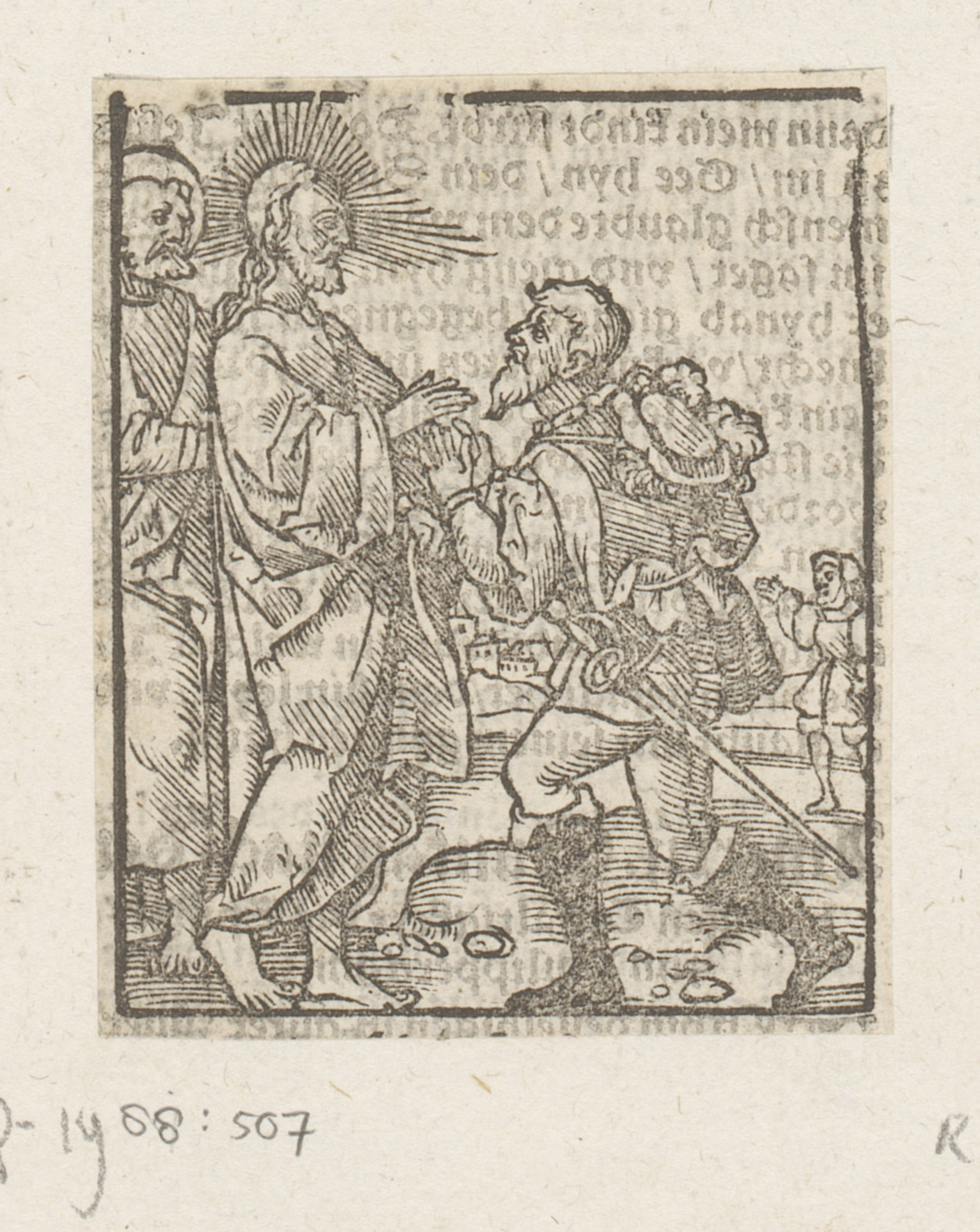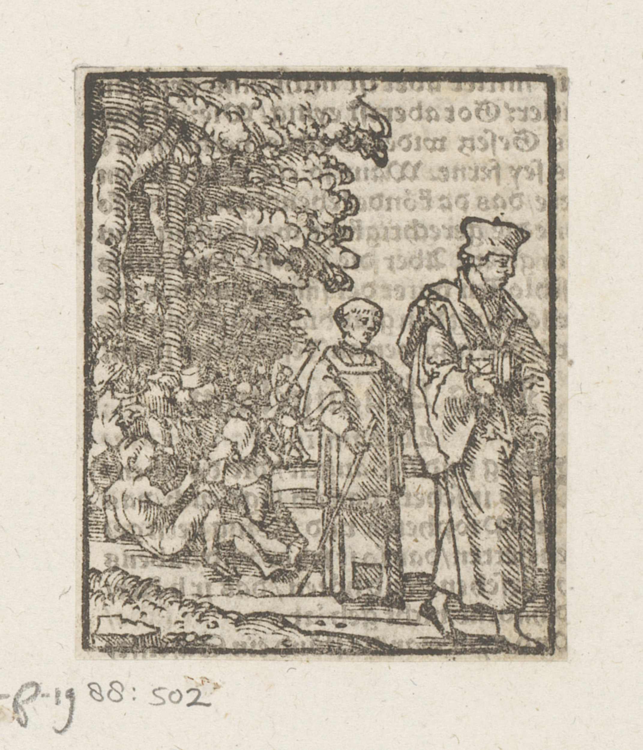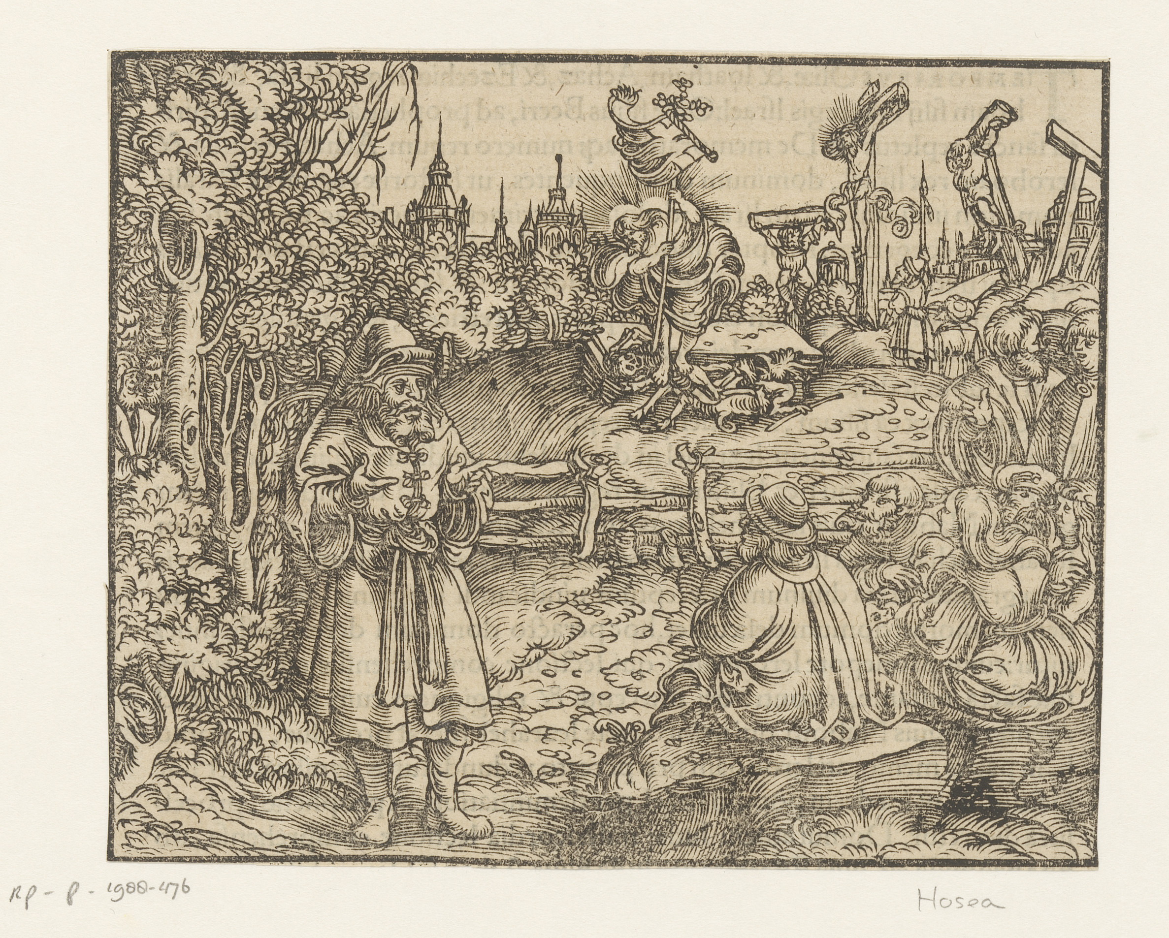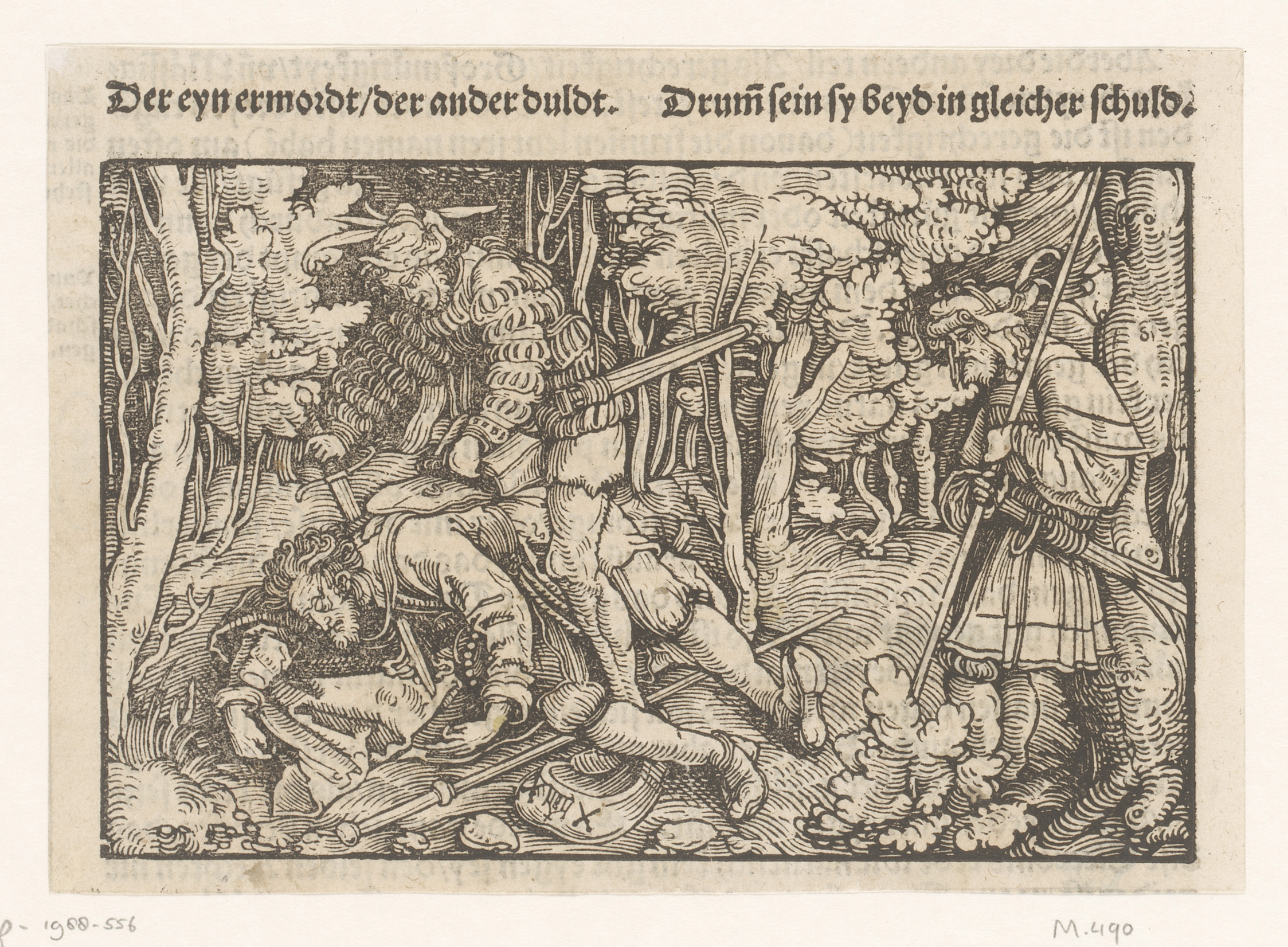 Struikrover vermoordt een pelgrim terwijl rechts een...