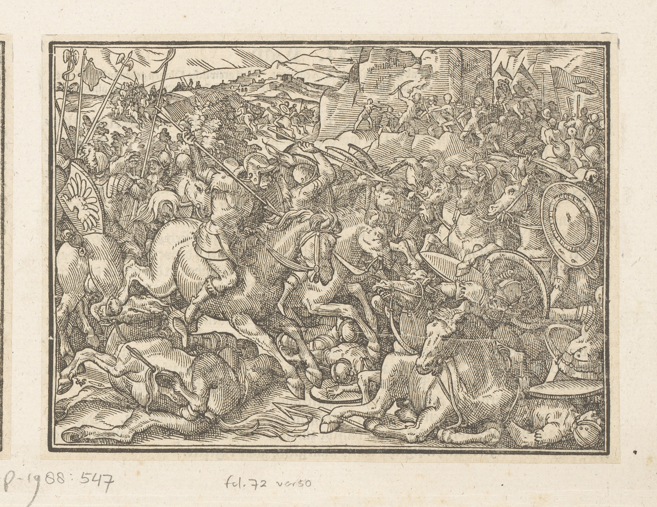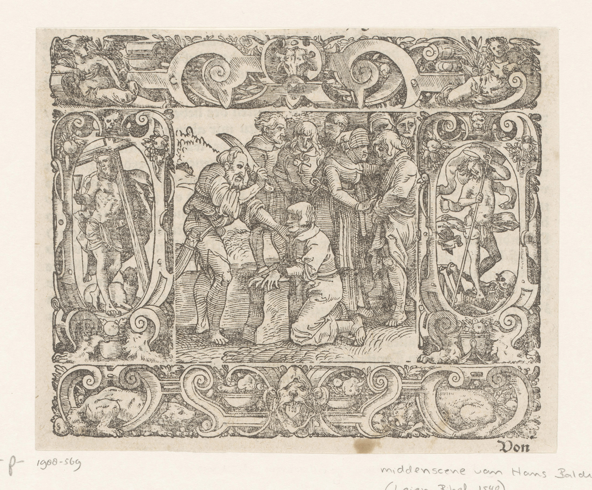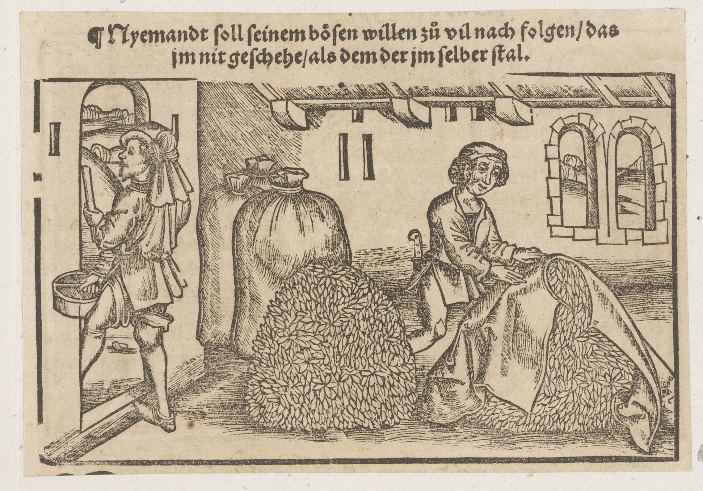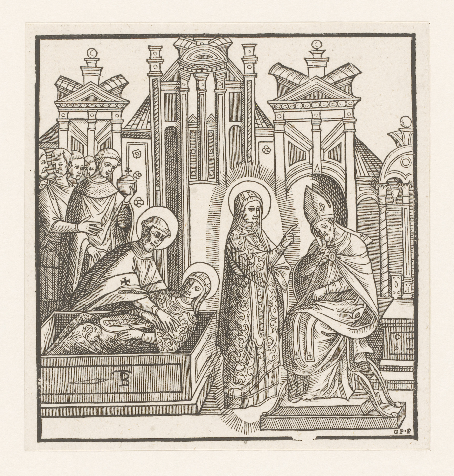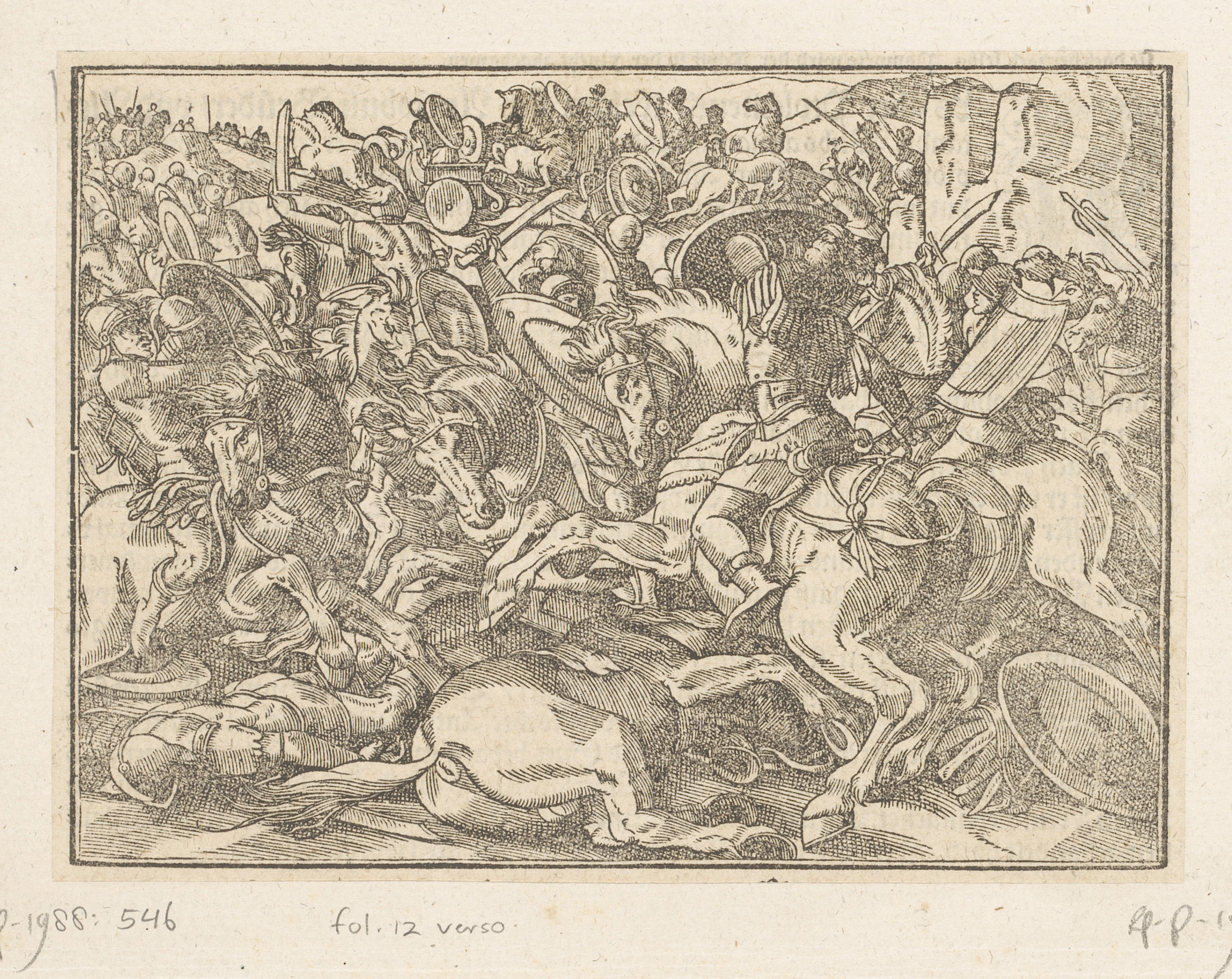 Struikrover vermoordt een pelgrim terwijl rechts een...