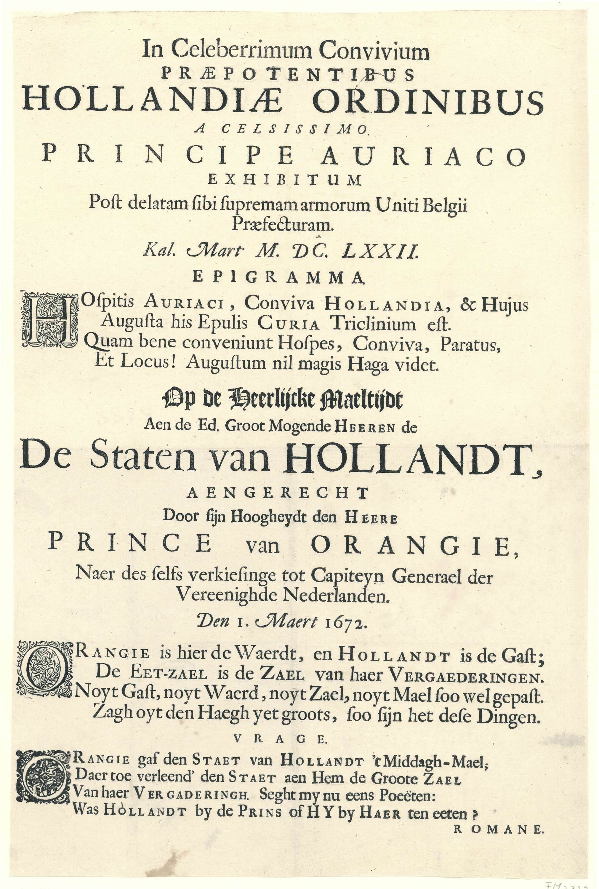Epigrammen op het feestmaal door Willem III op 1 maa...