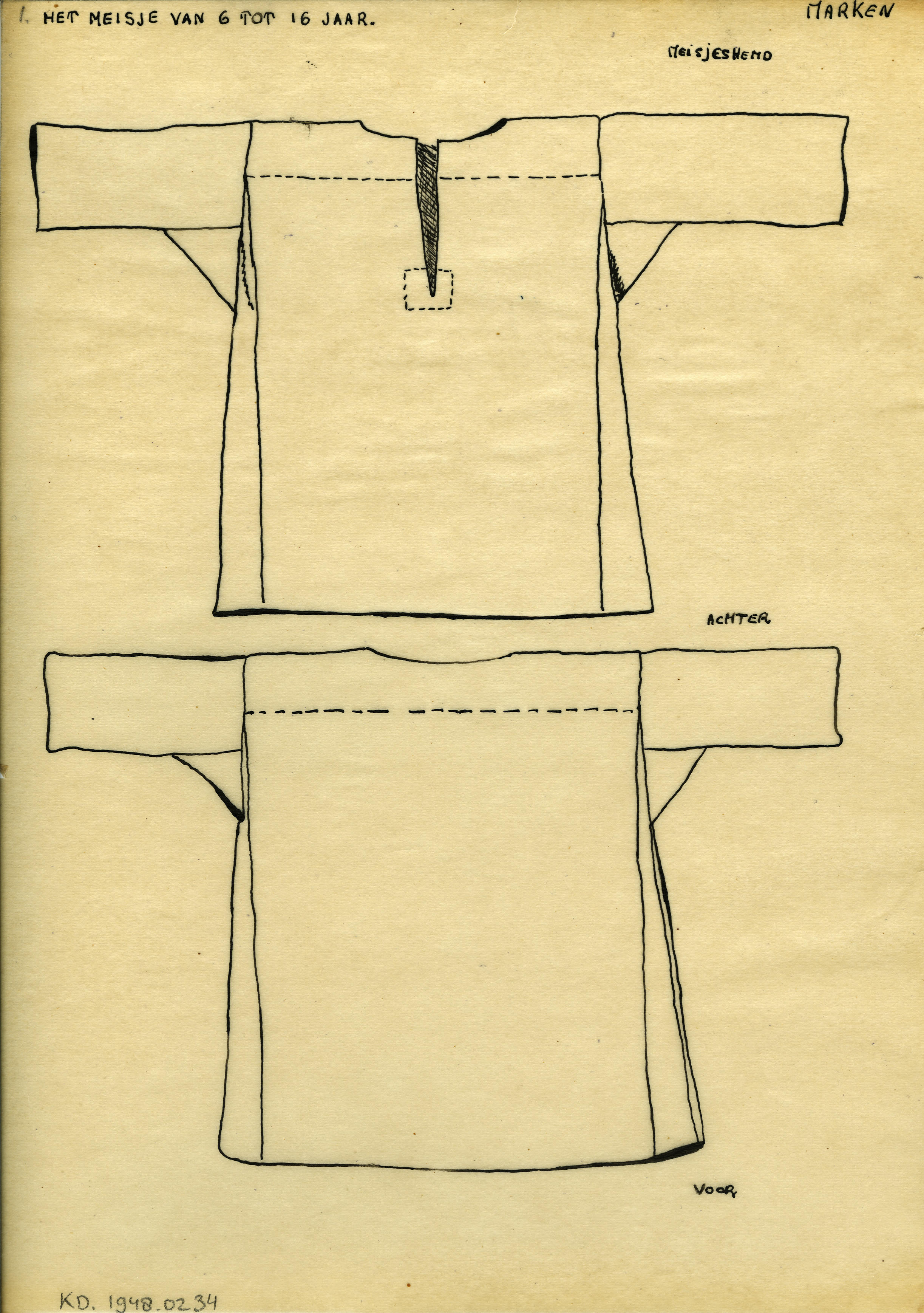 Tekening van een meisjeshemd, Marken (patroontekening)