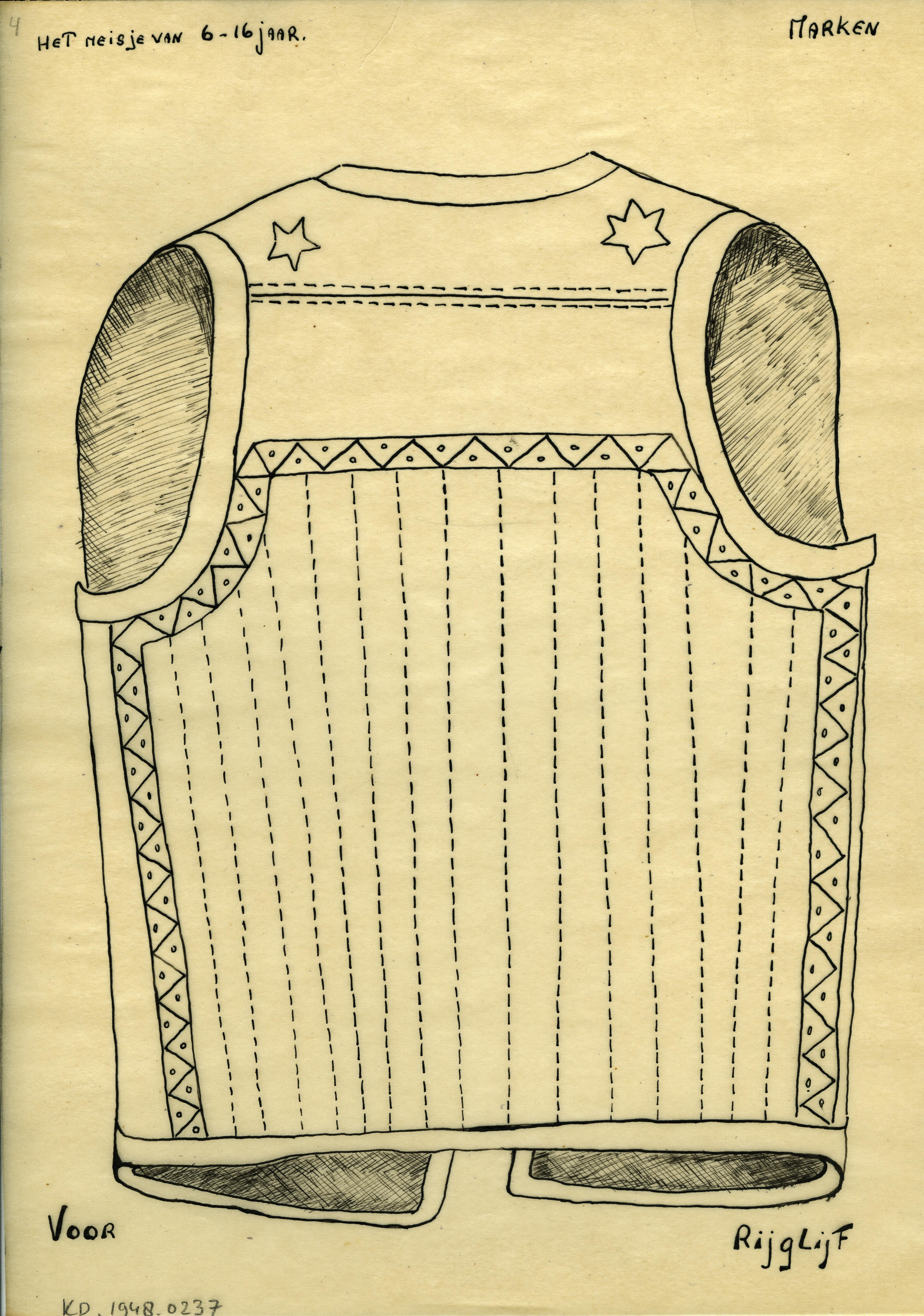 Tekening van een vrouwenruigje, Marken (patroonteken...