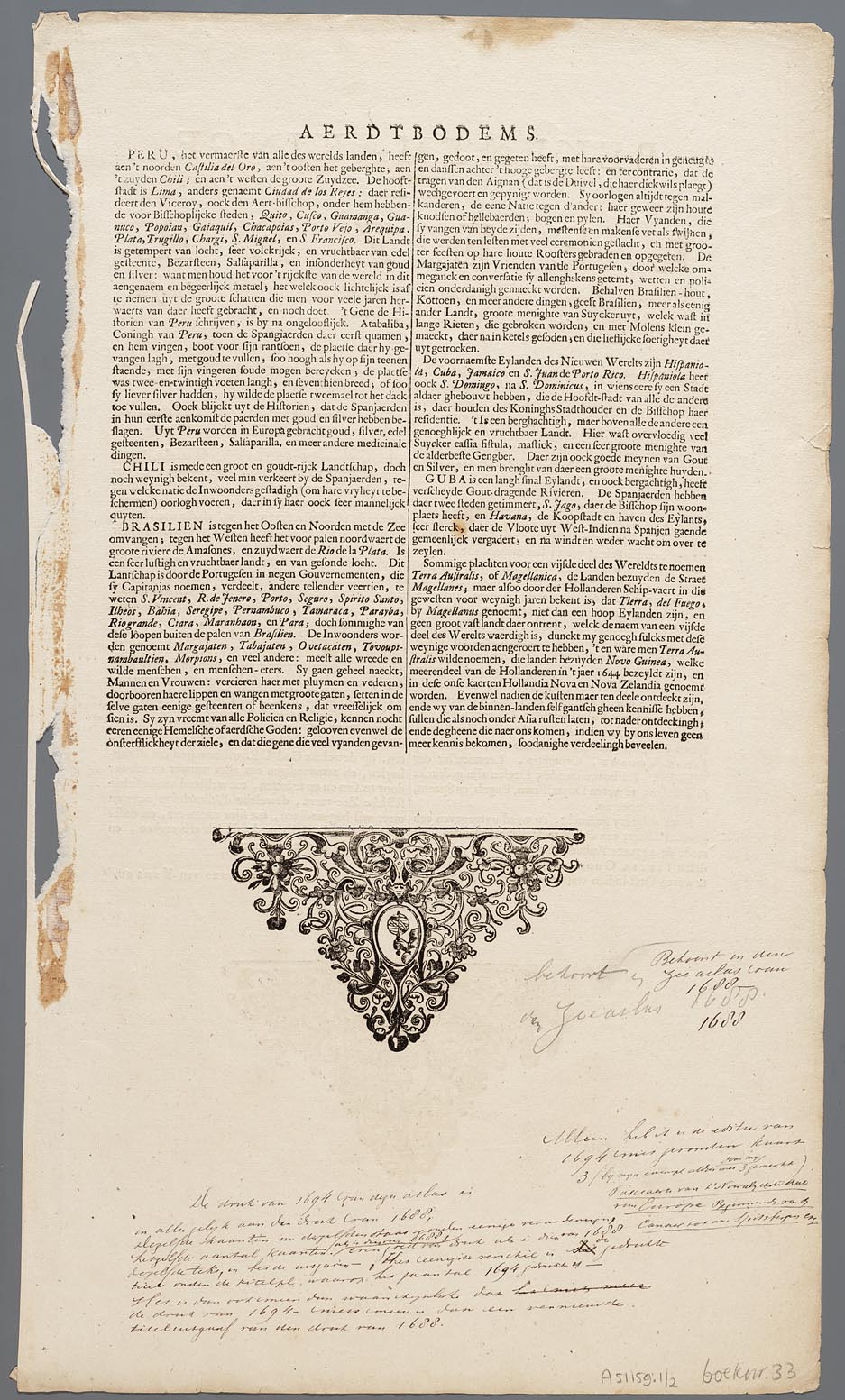 Blad met 4 tekstpagina´s uit "De groote nieuwe verme...