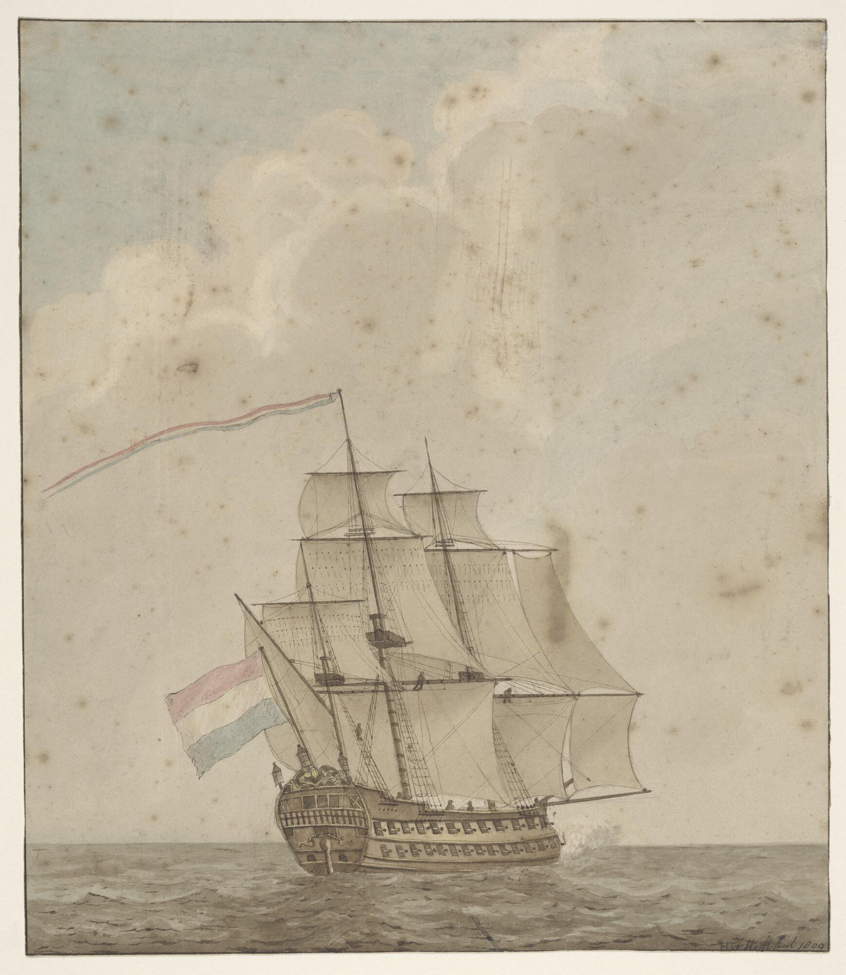 Een linieschip onder zeil