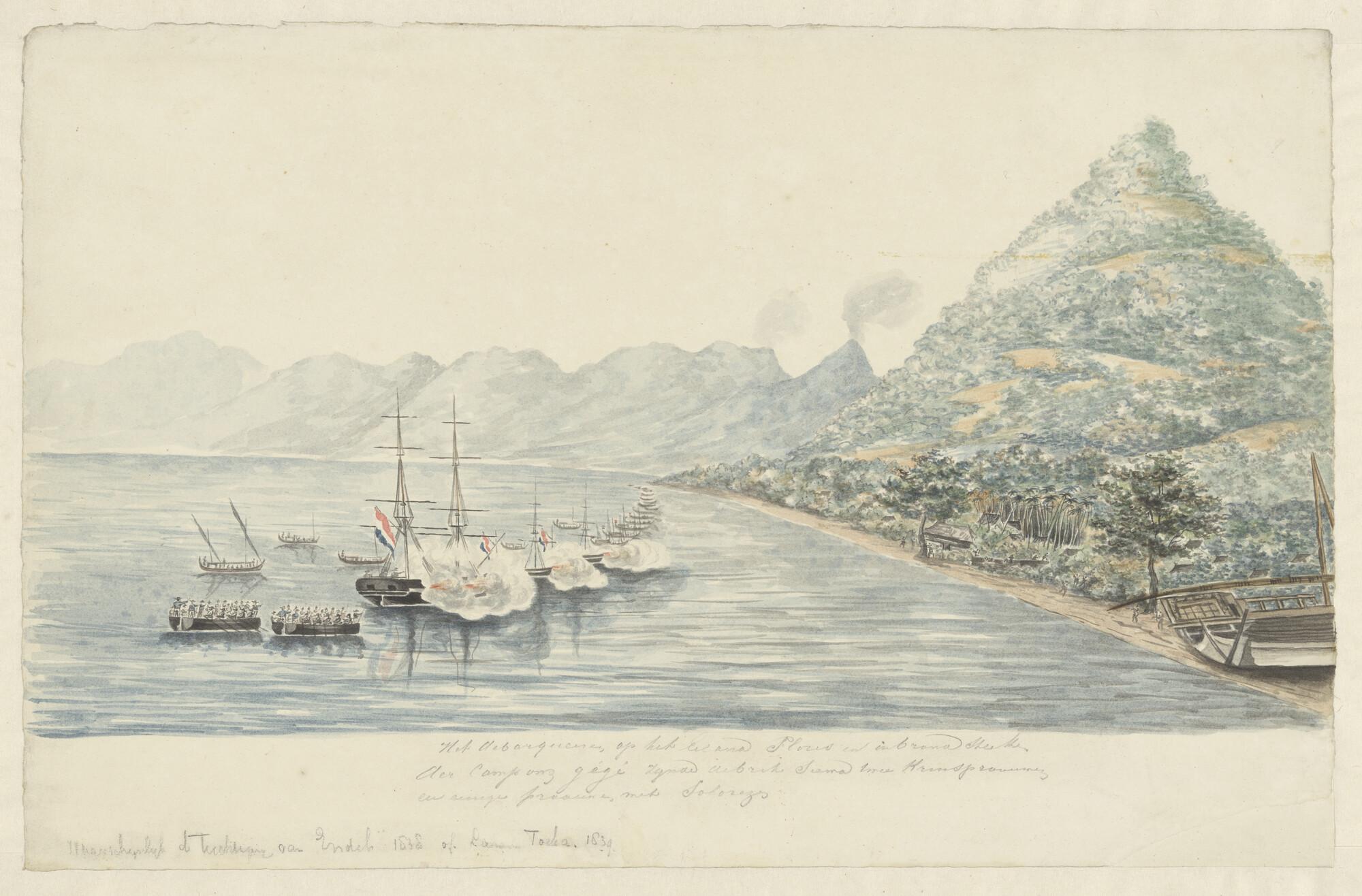 Beschieting van de kampong Gégé op het eiland Flores