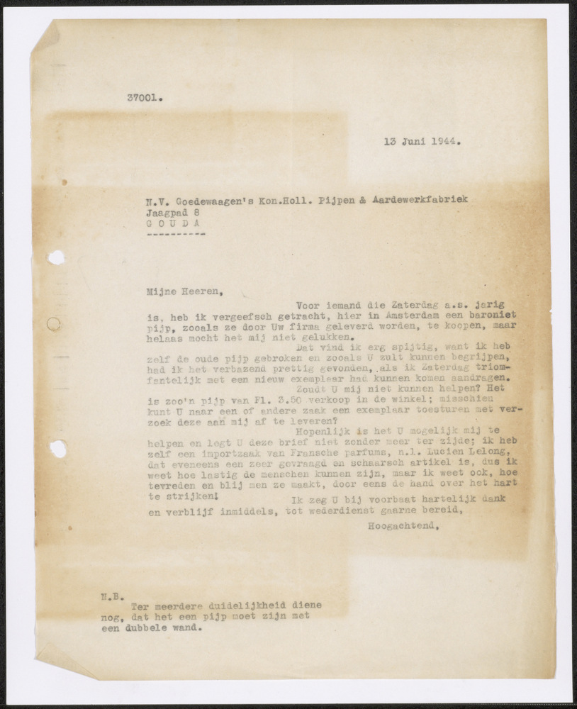 Brief uit Amsterdam naar Gouda 13 juni 1944