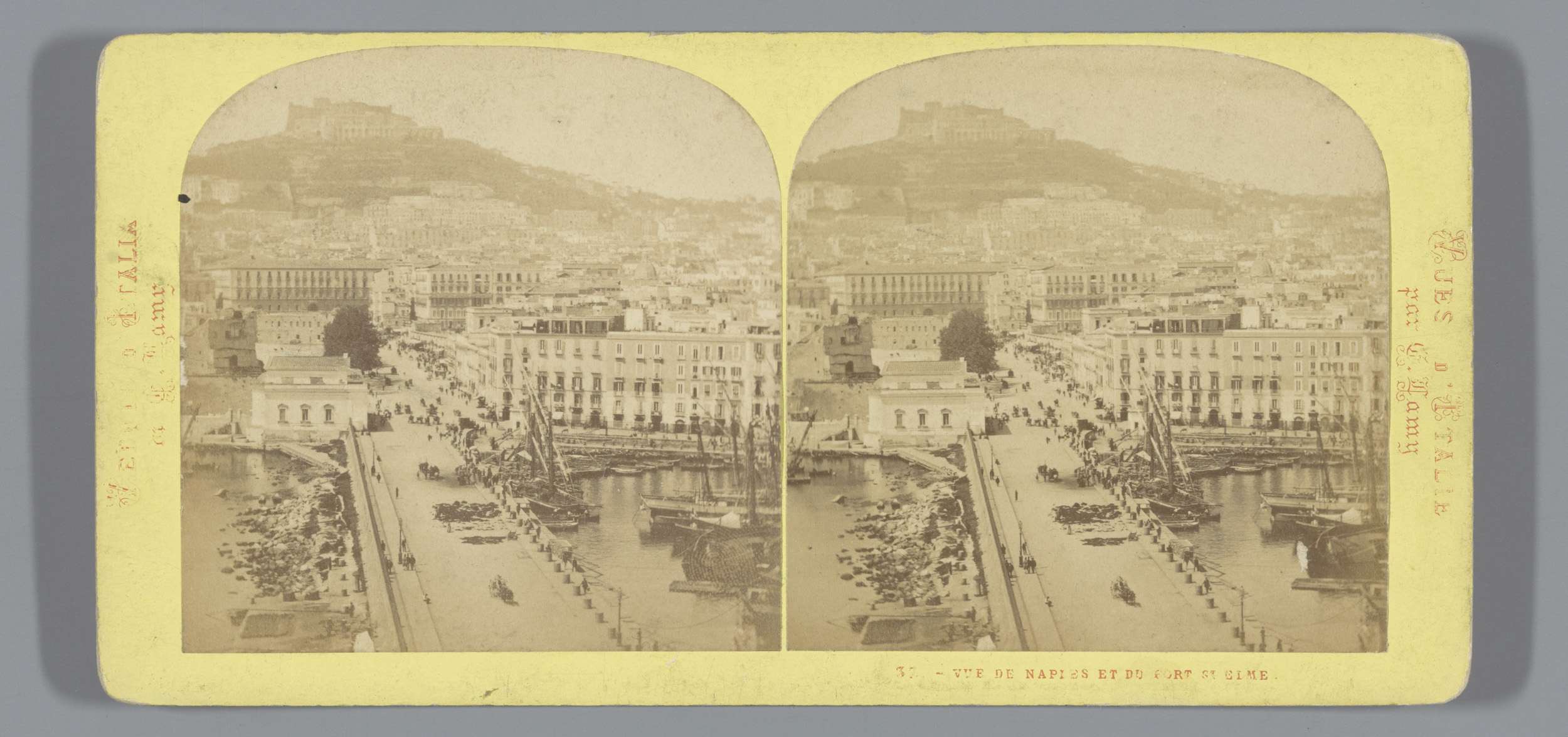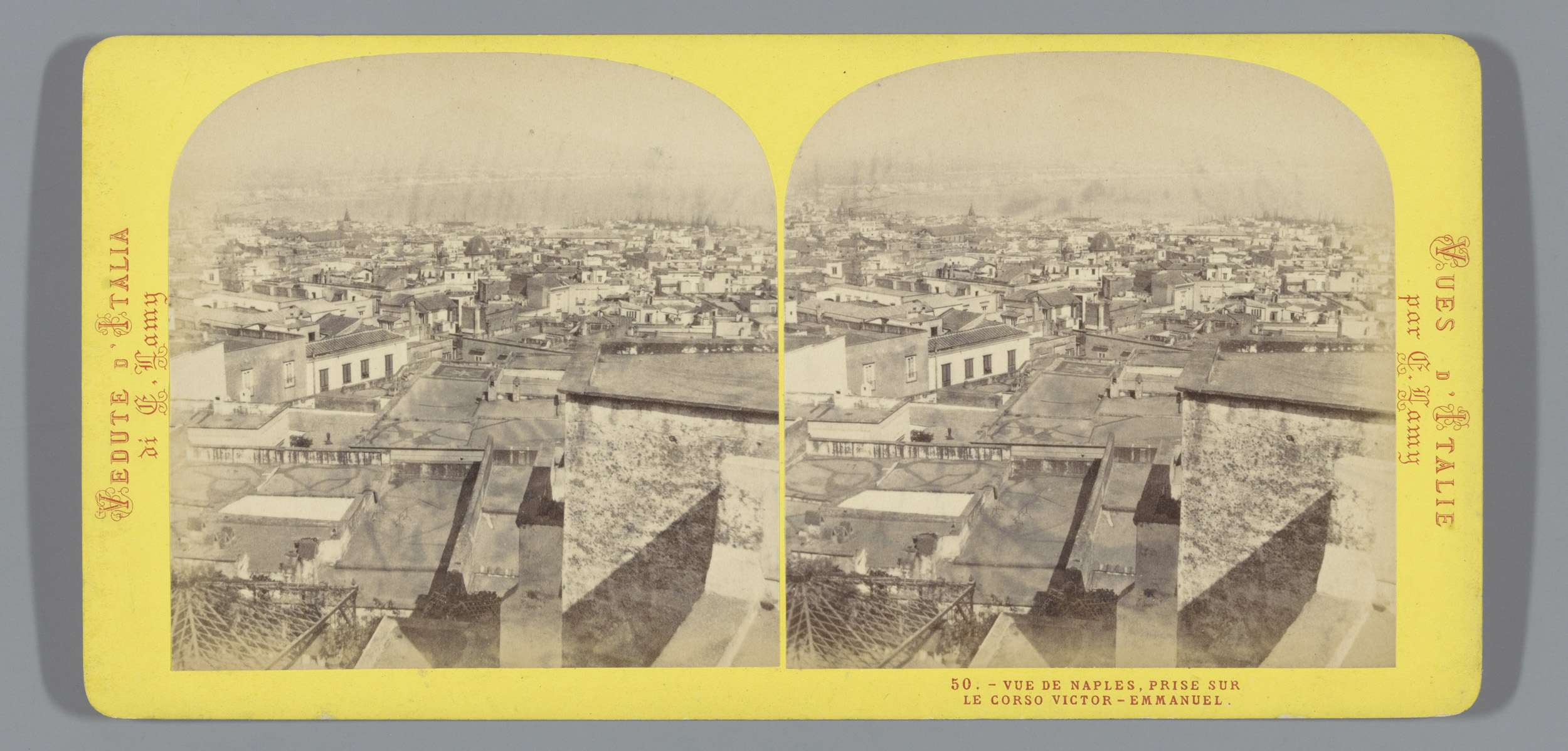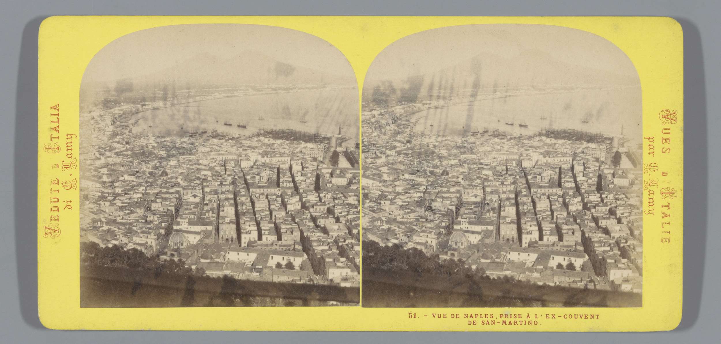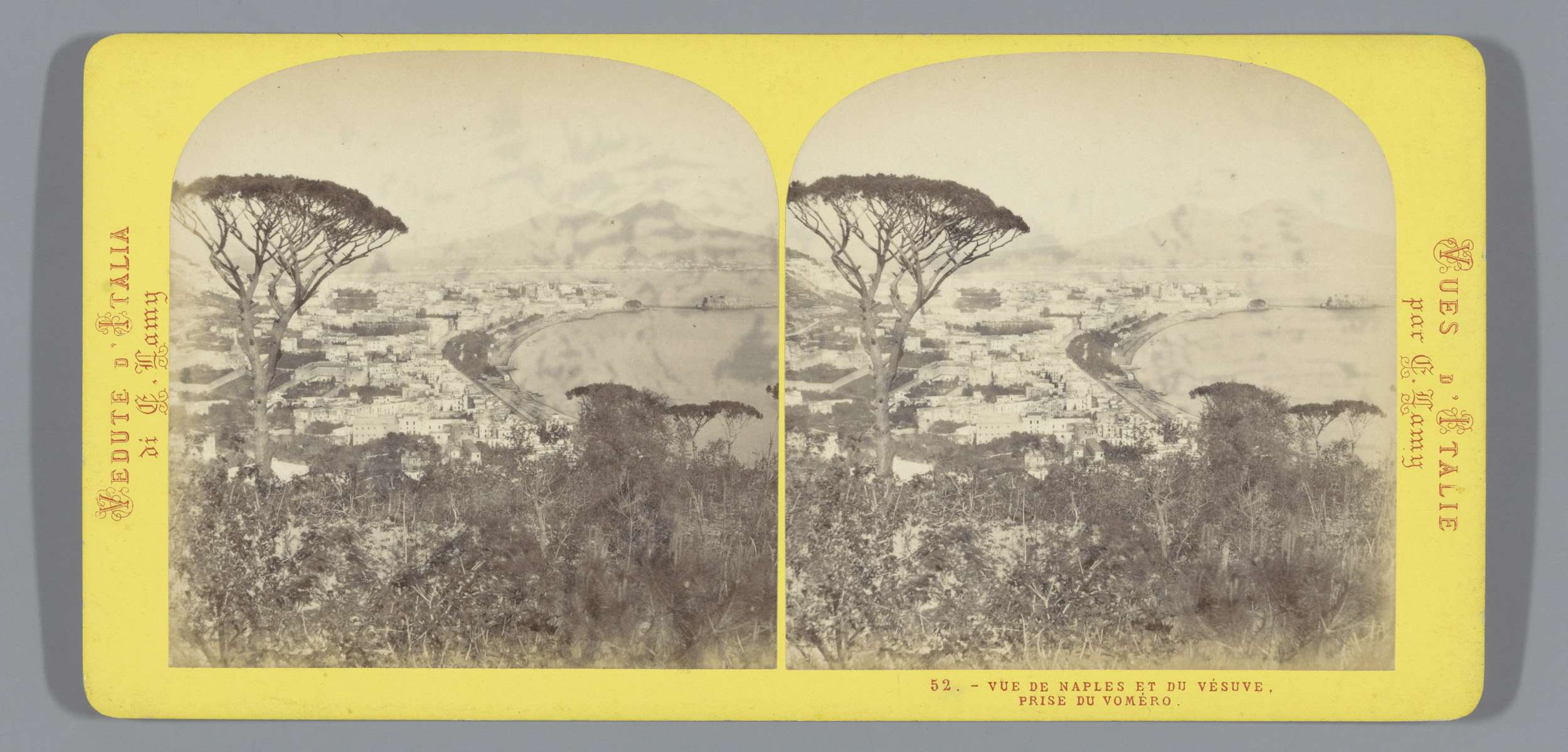 Gezicht op Napels met daarachter de baai en de Vesuv...