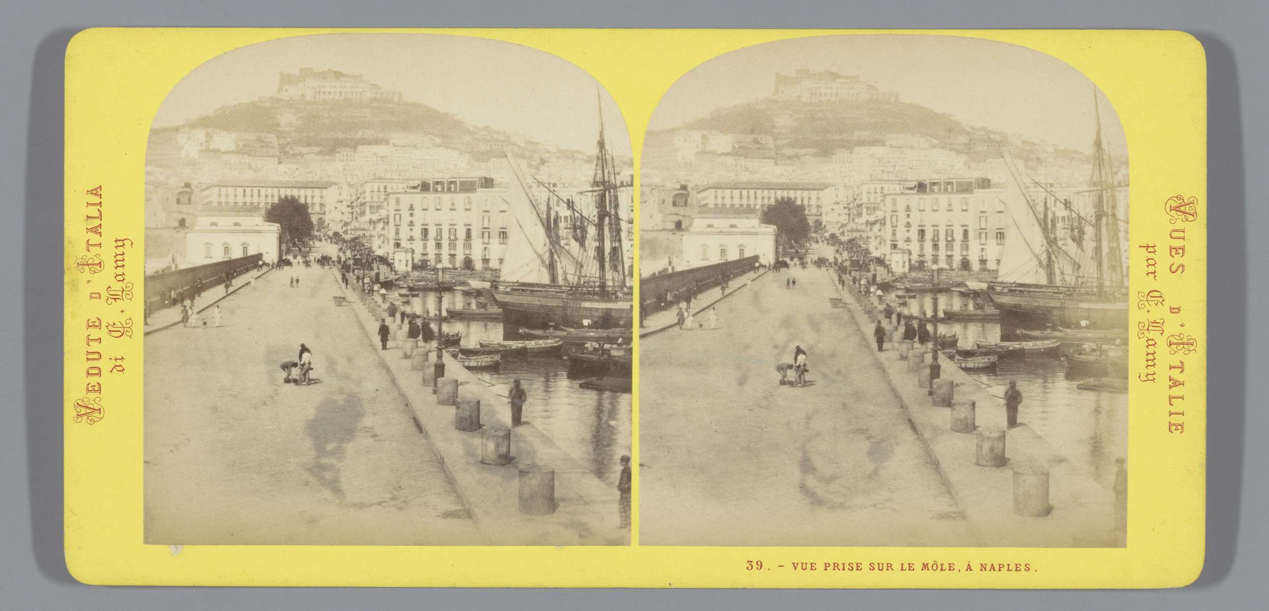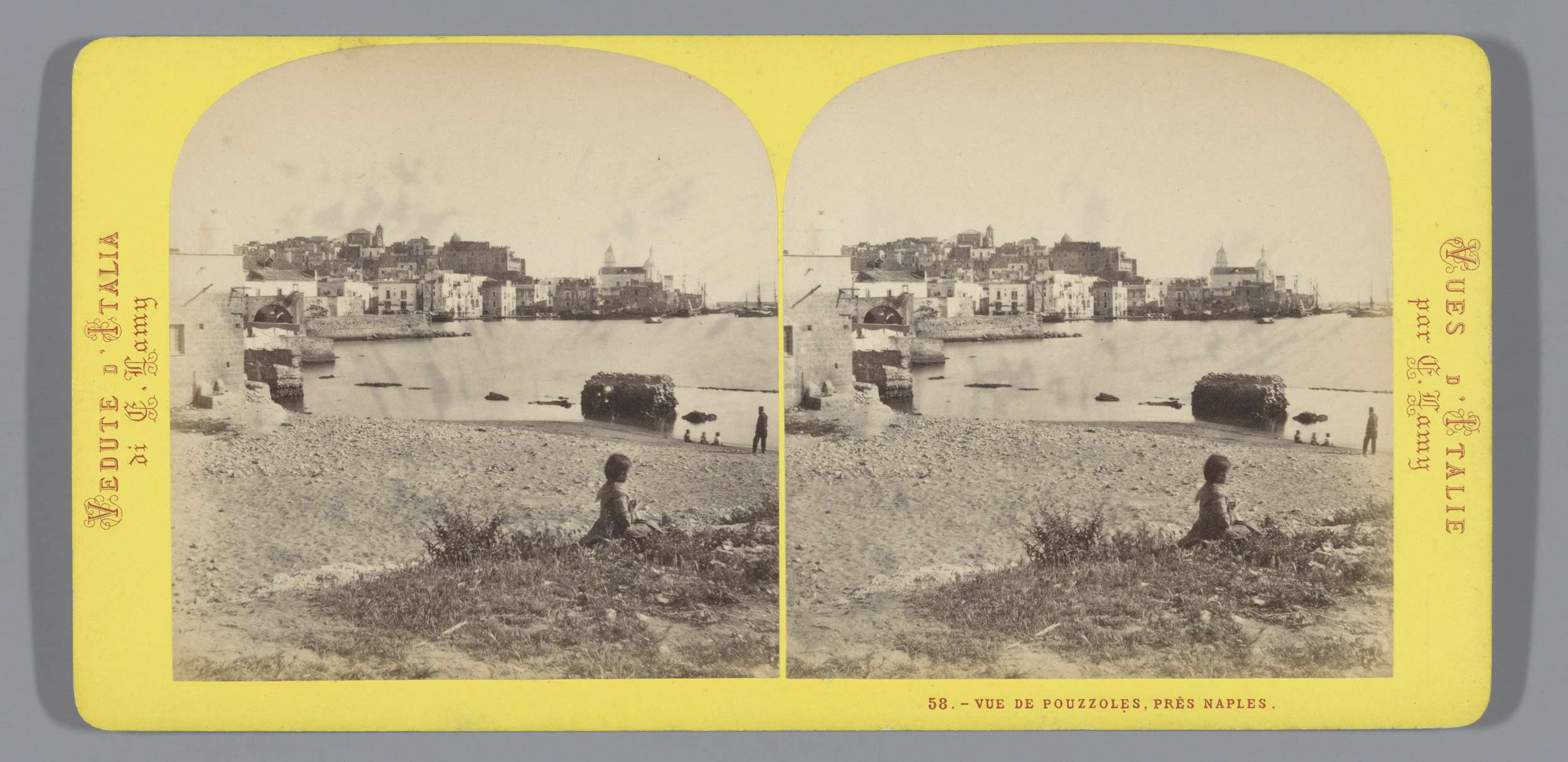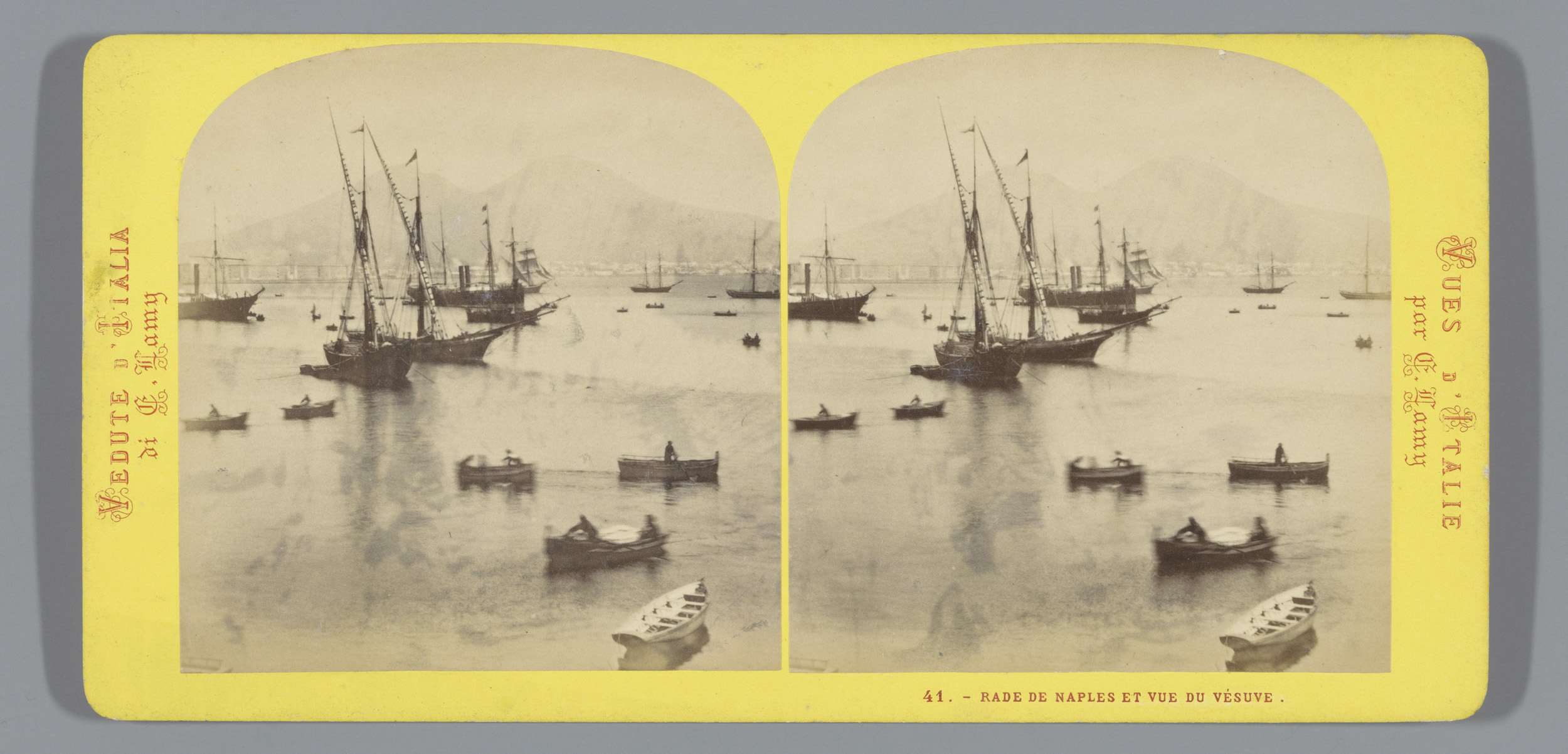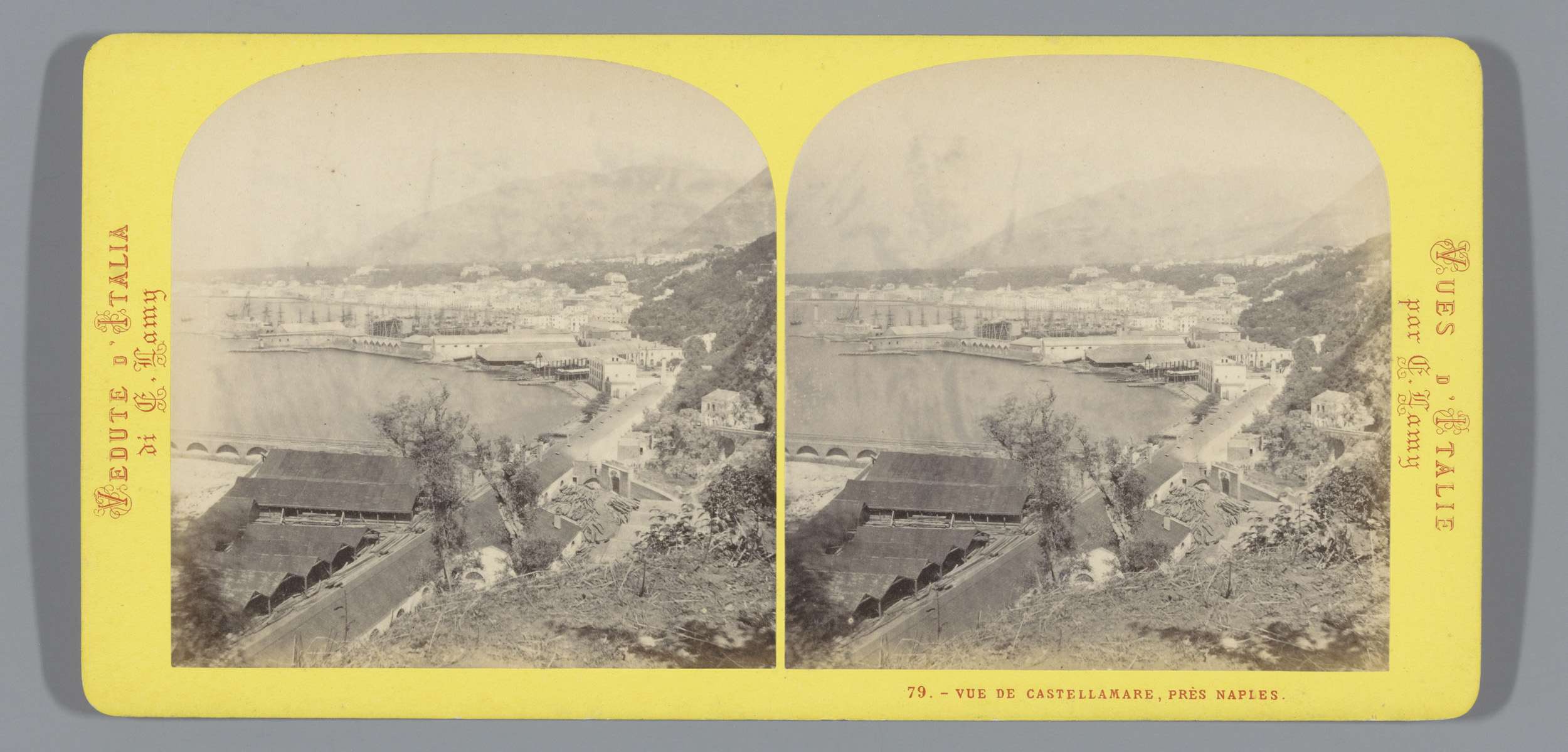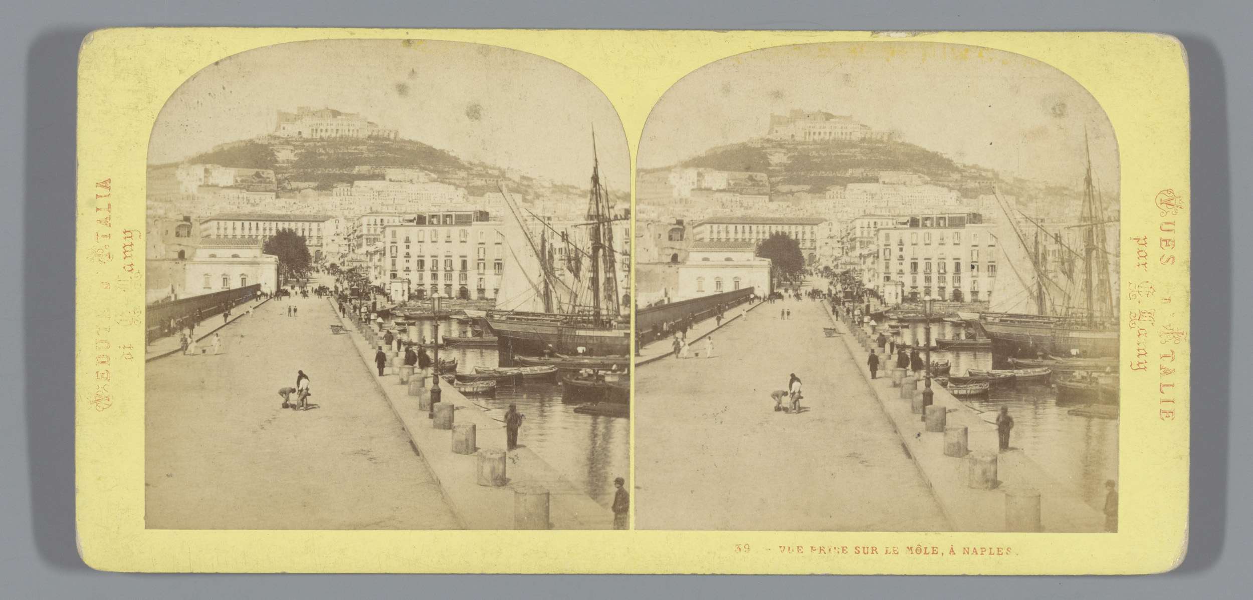 Gezicht op Napels met daarachter de baai en de Vesuv...