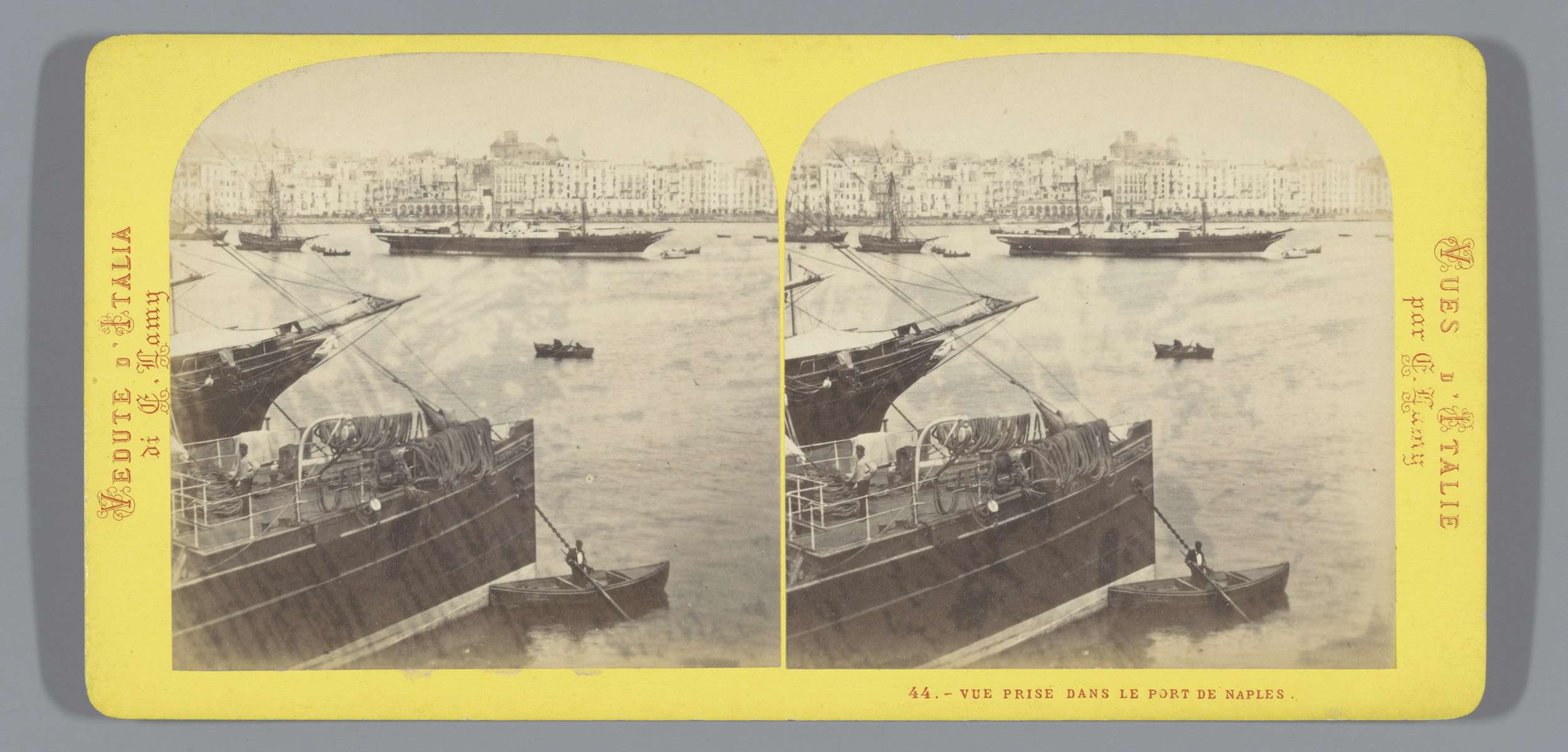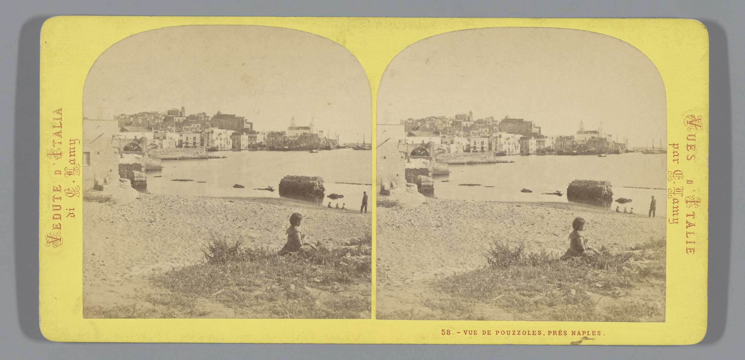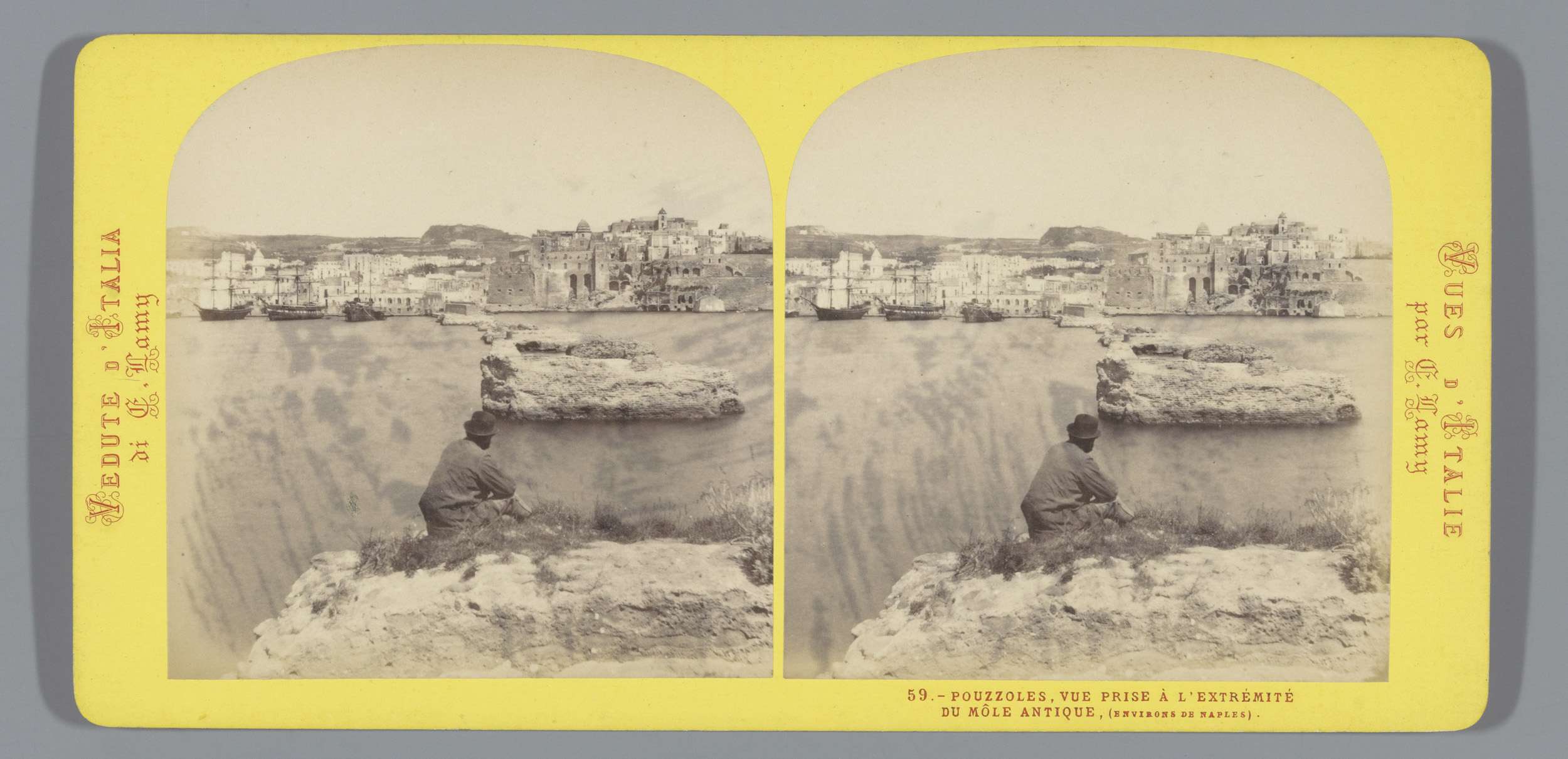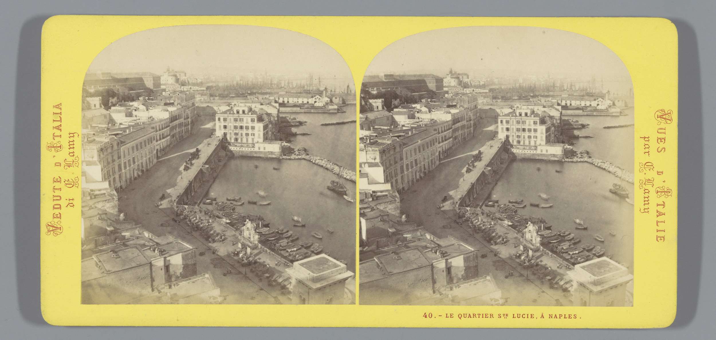Gezicht op Napels met daarachter de baai en de Vesuv...
