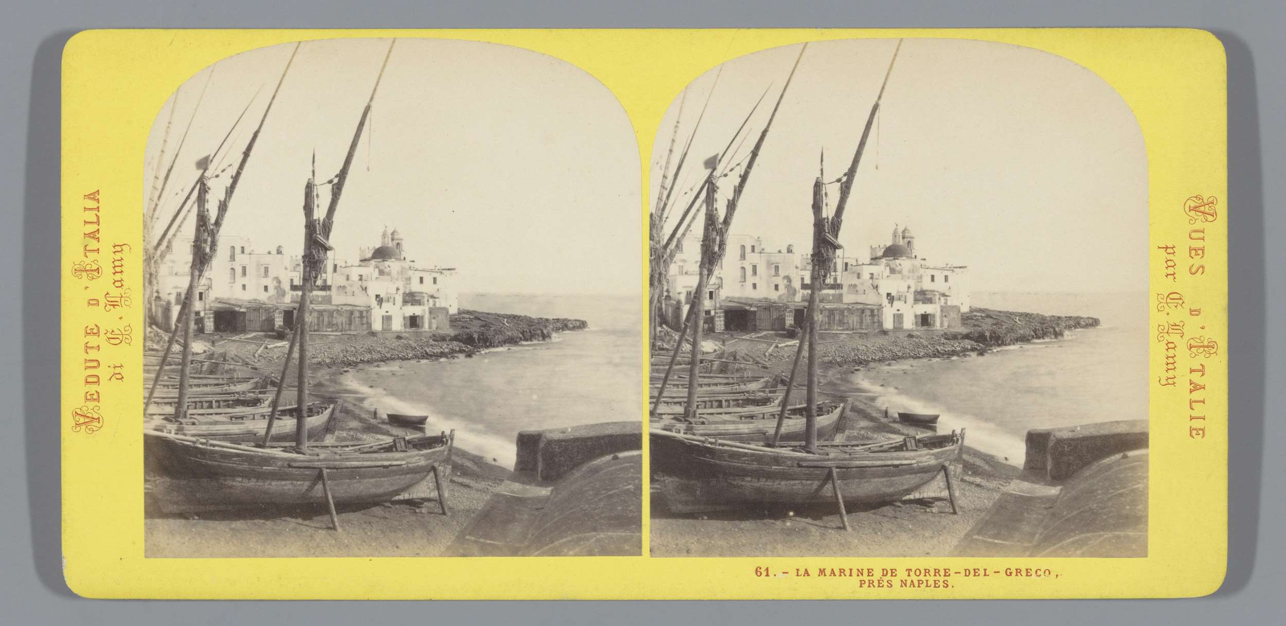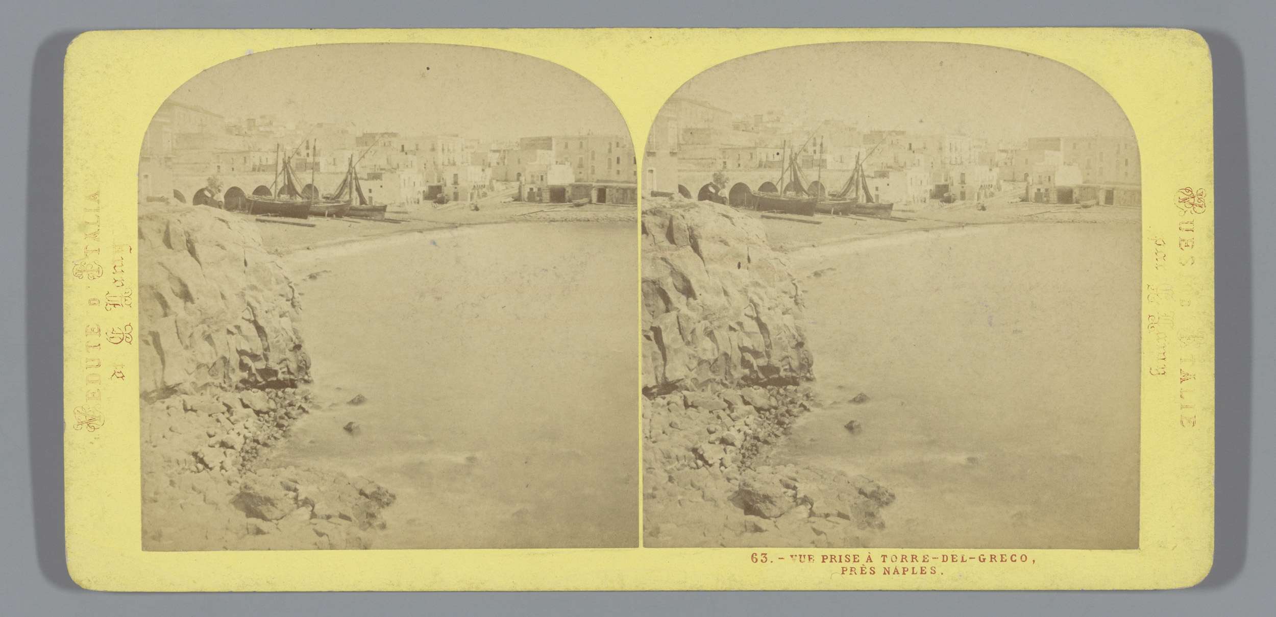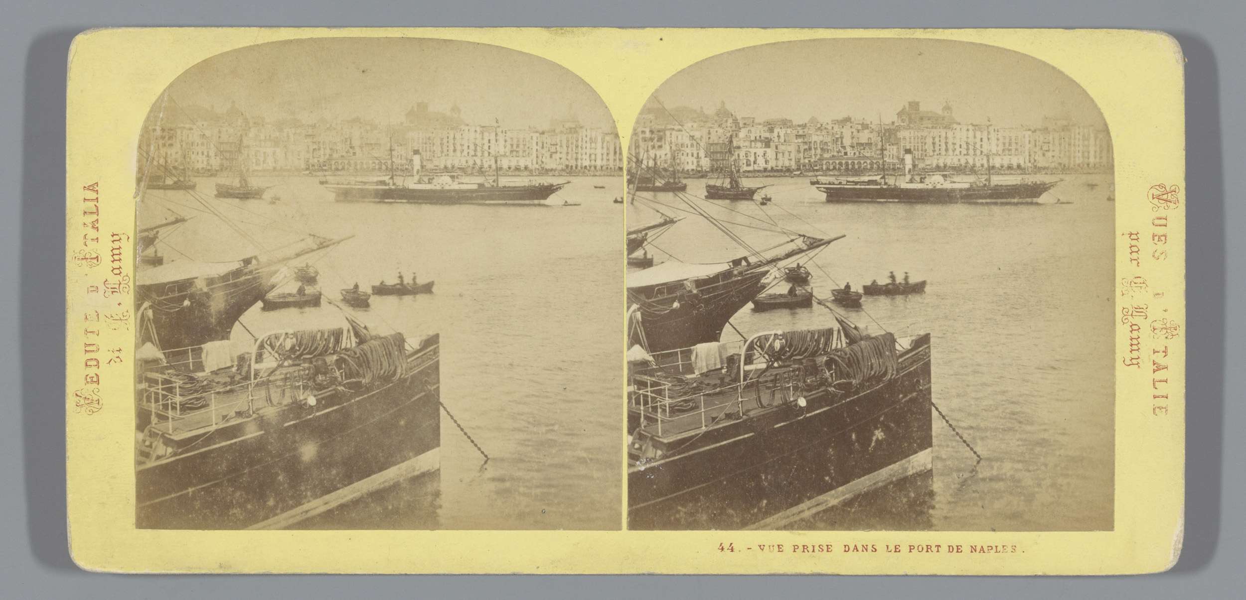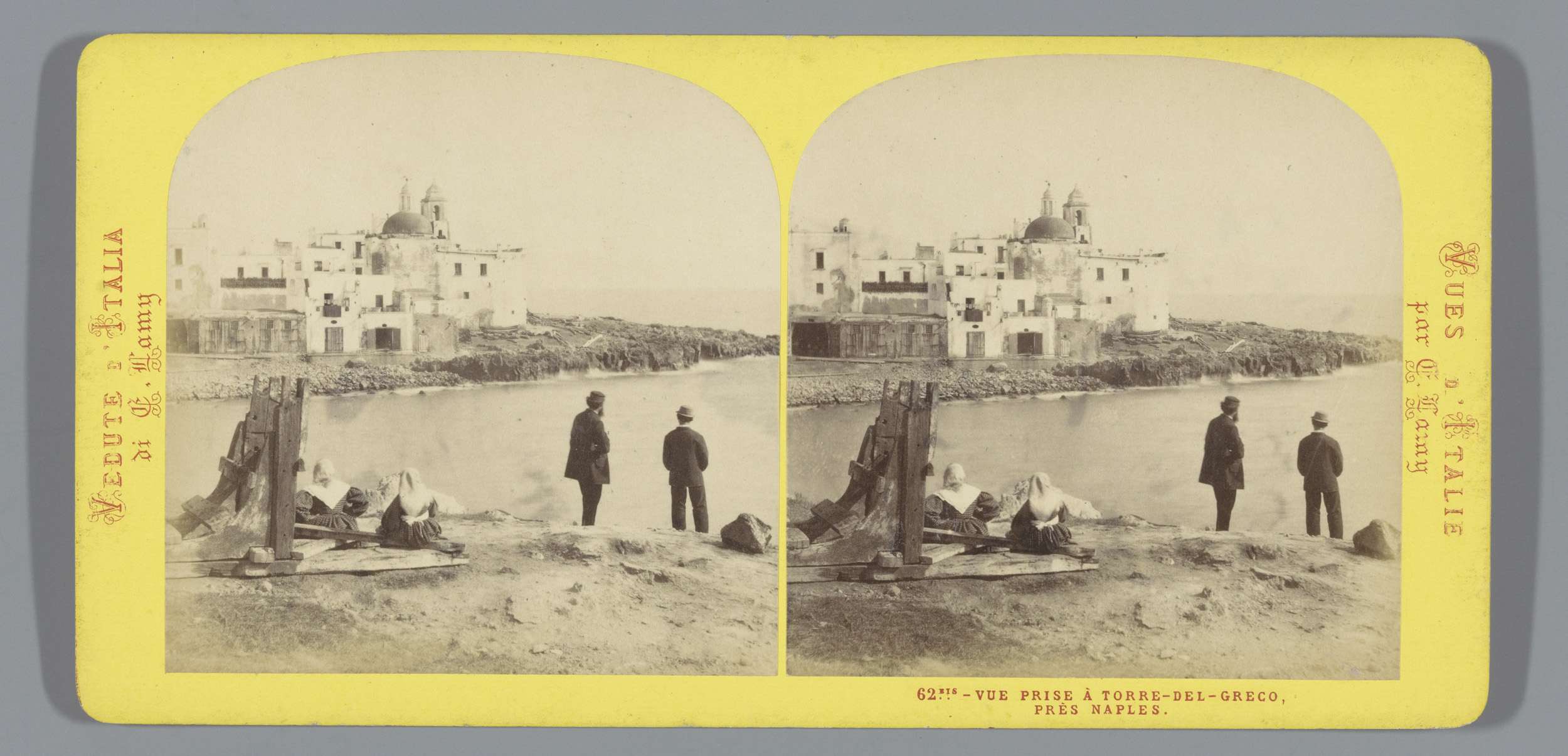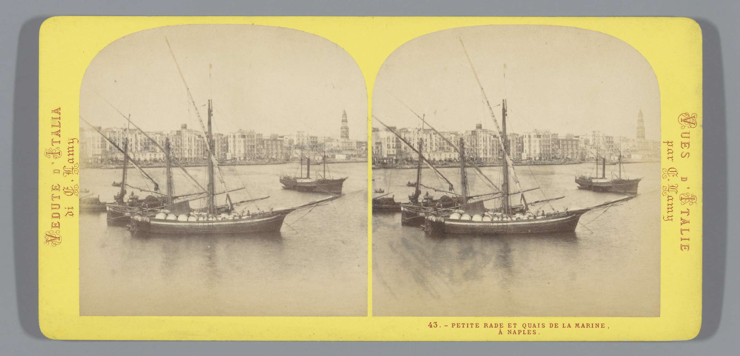 Gezicht op Napels met daarachter de baai en de Vesuv...
