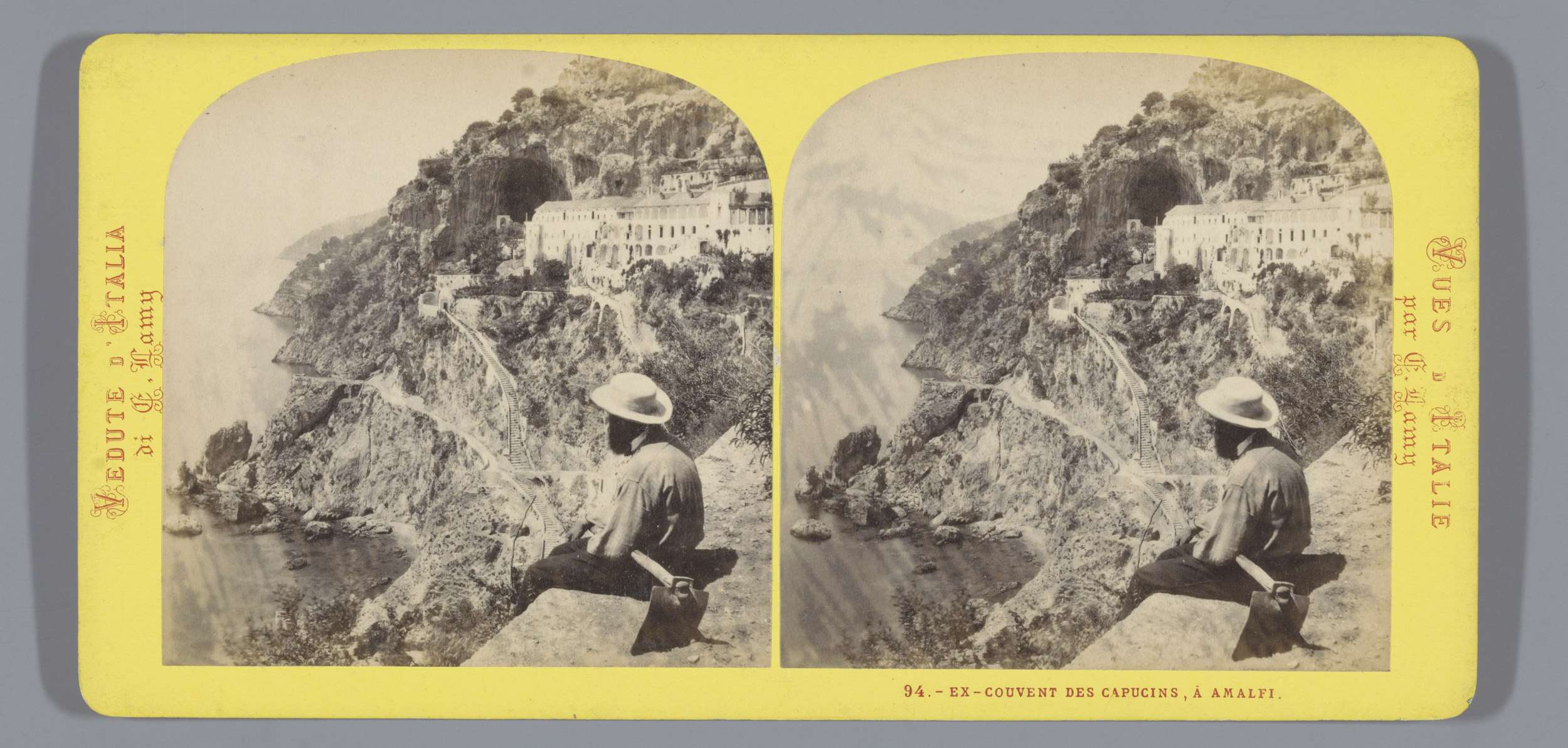 Gezicht op de kust bij Amalfi, gezien vanaf een voor...