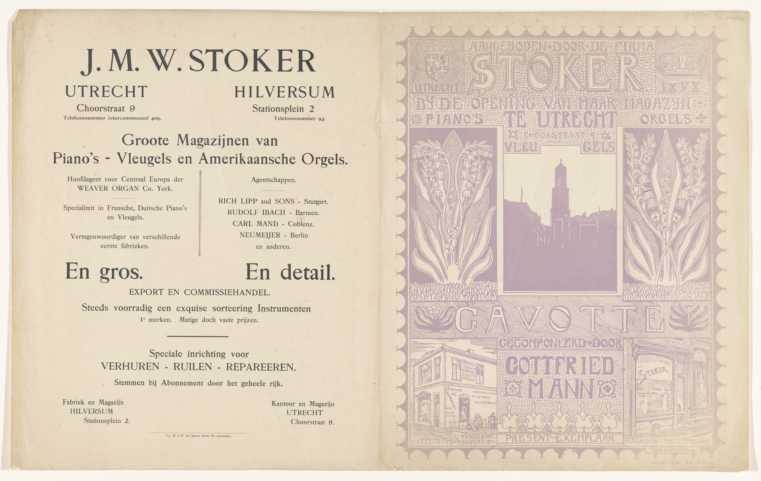Brochure van pianohandel Stoker met de Domtoren van ...