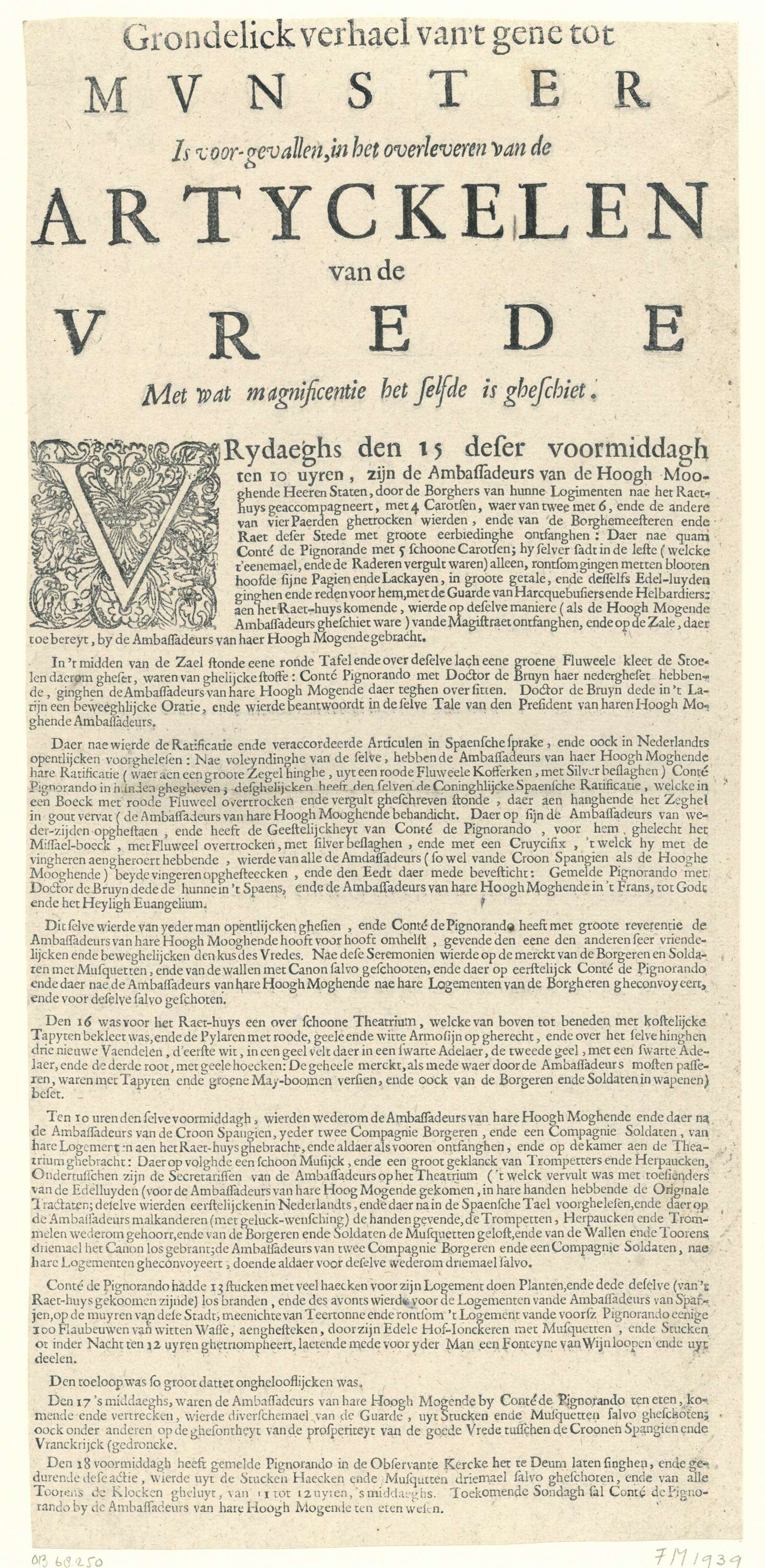 Bekendmaking van de vrede gesloten te Münster, 1648