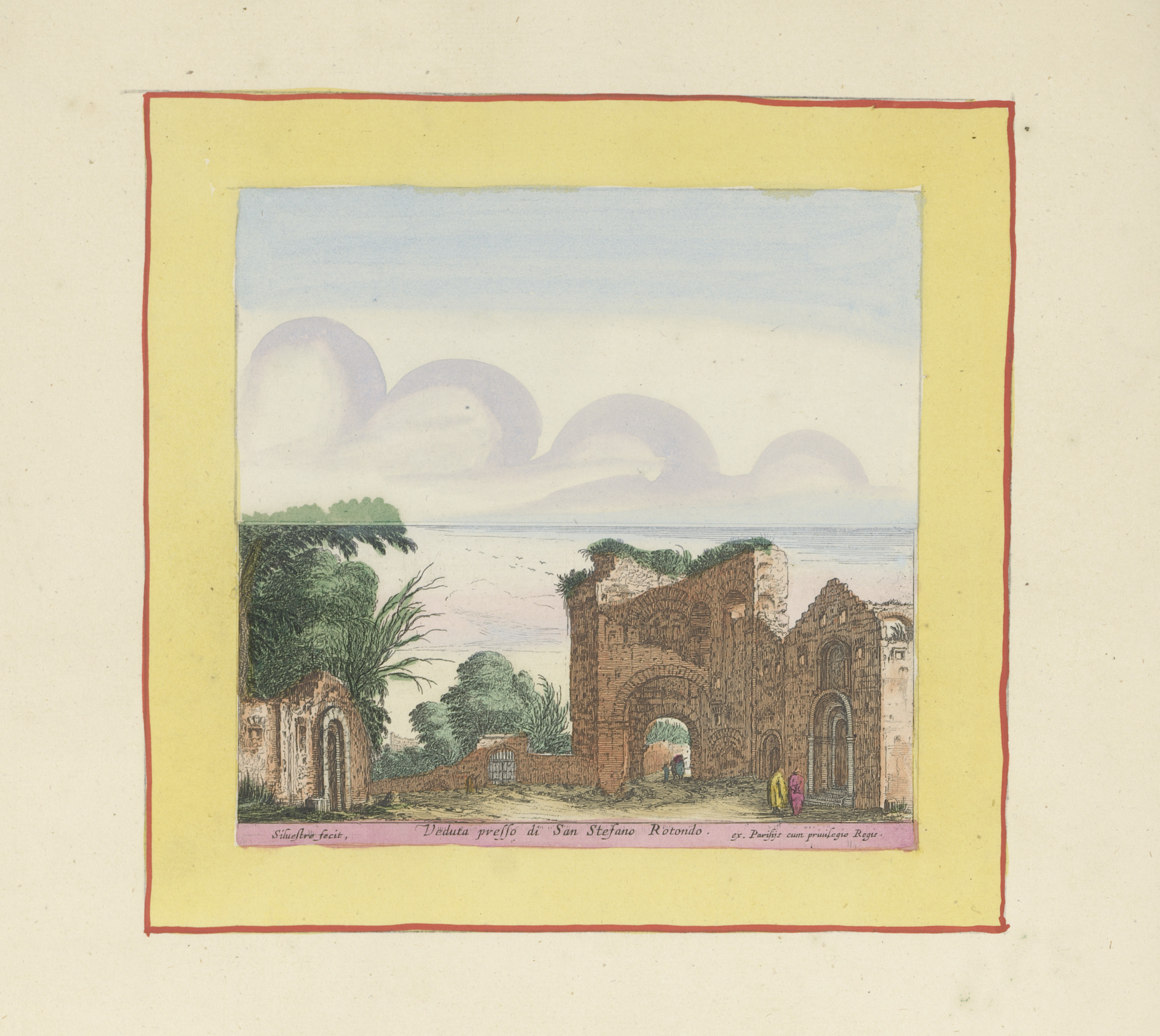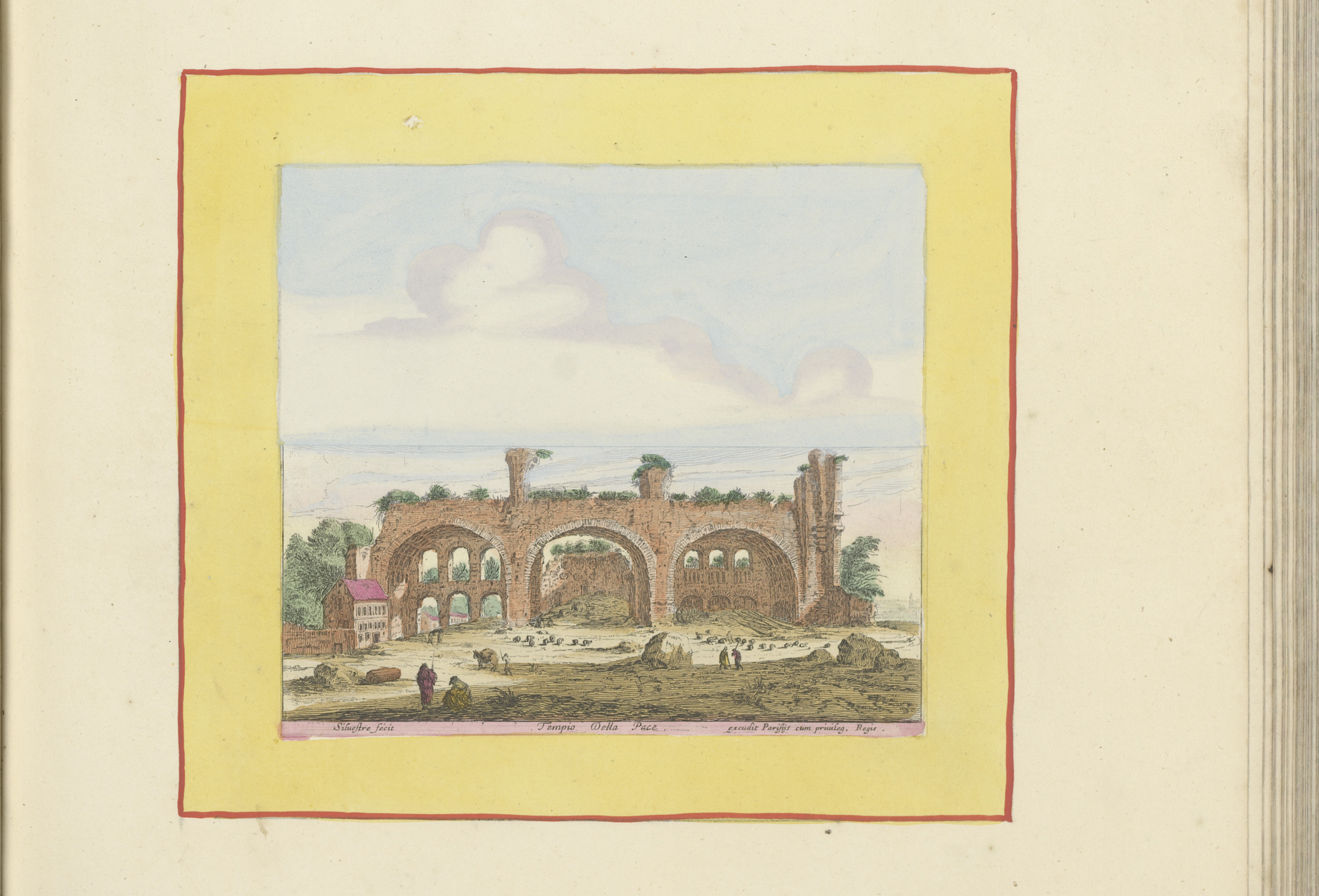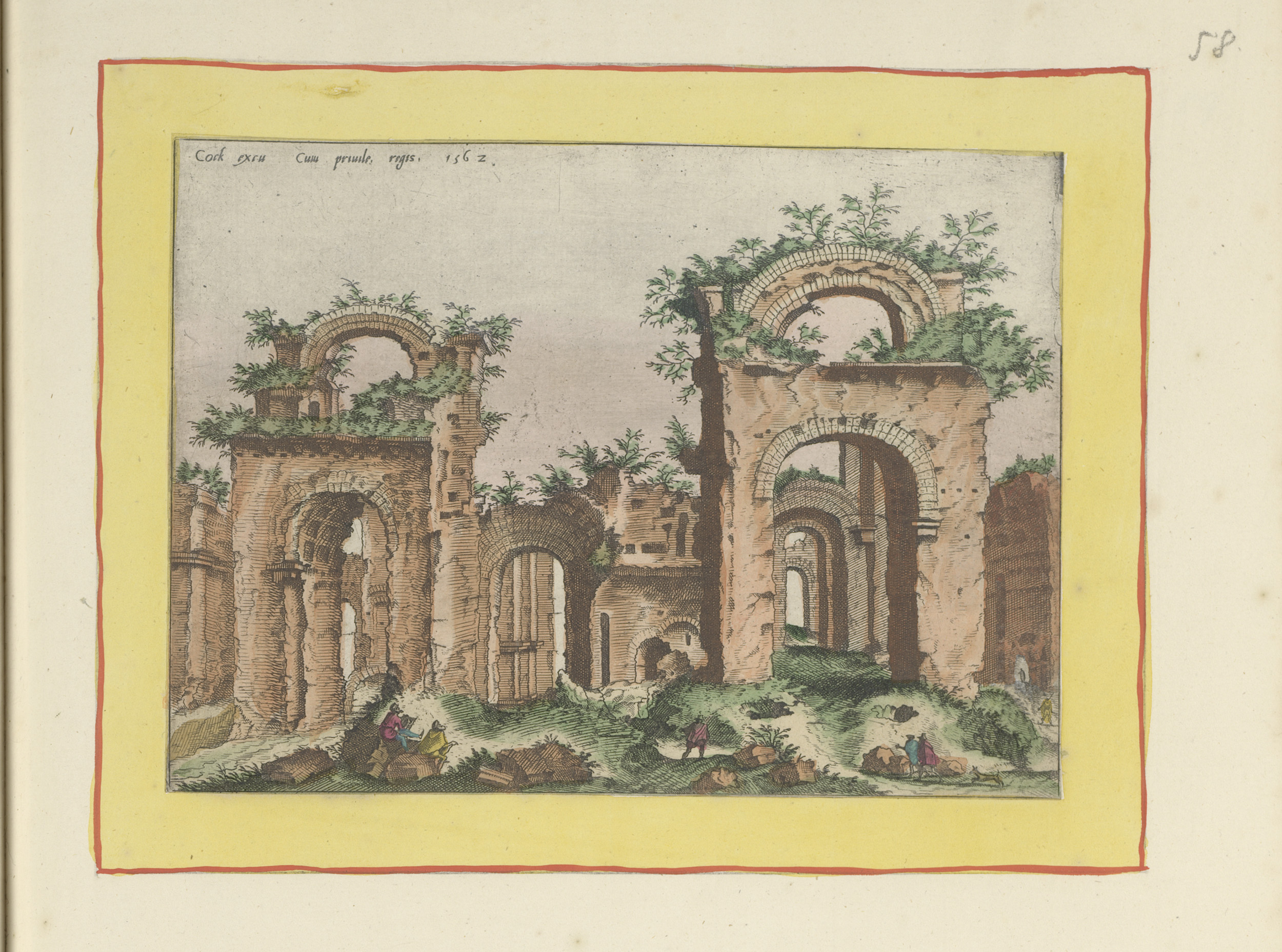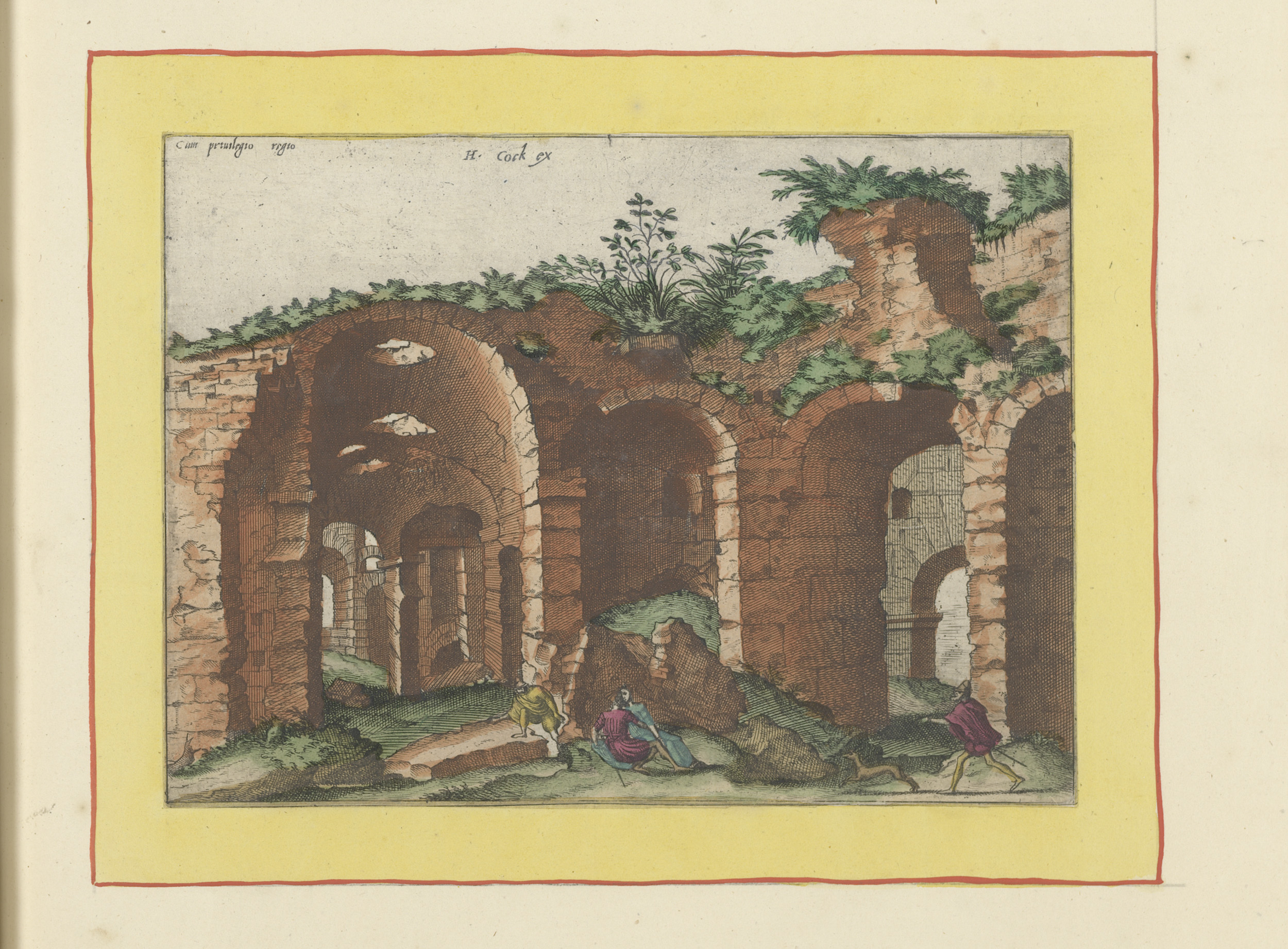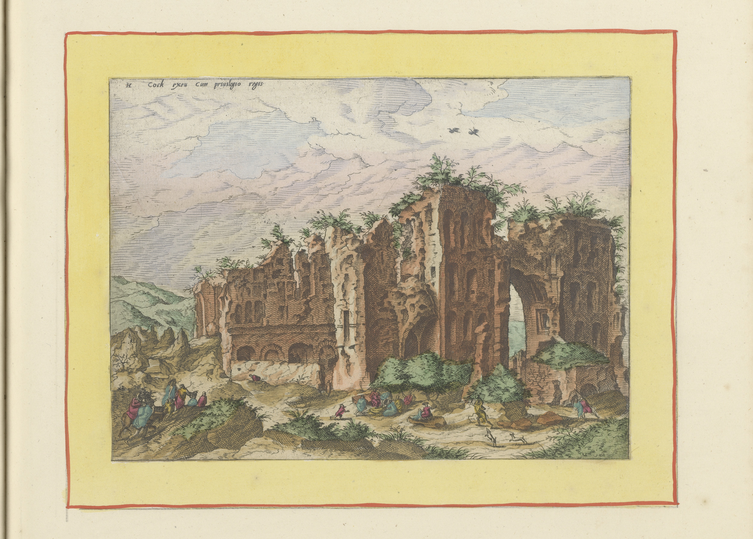 Ruïnes met een groep figuren op de voorgrond
