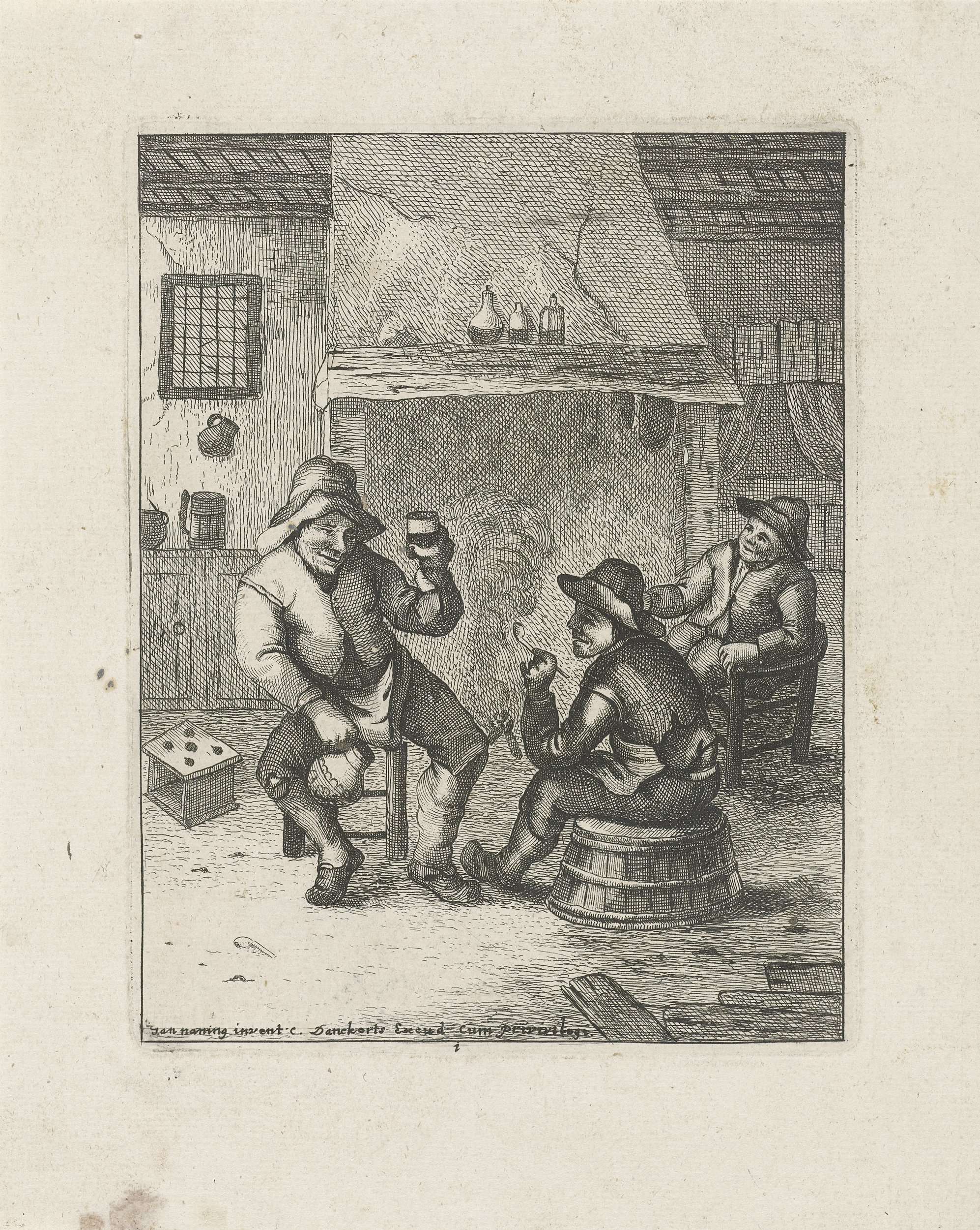 Drie boeren bij de haard