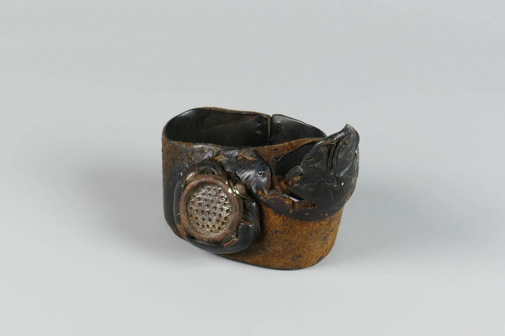 handbeschermer van leer met ijzeren beschermplaatje ...