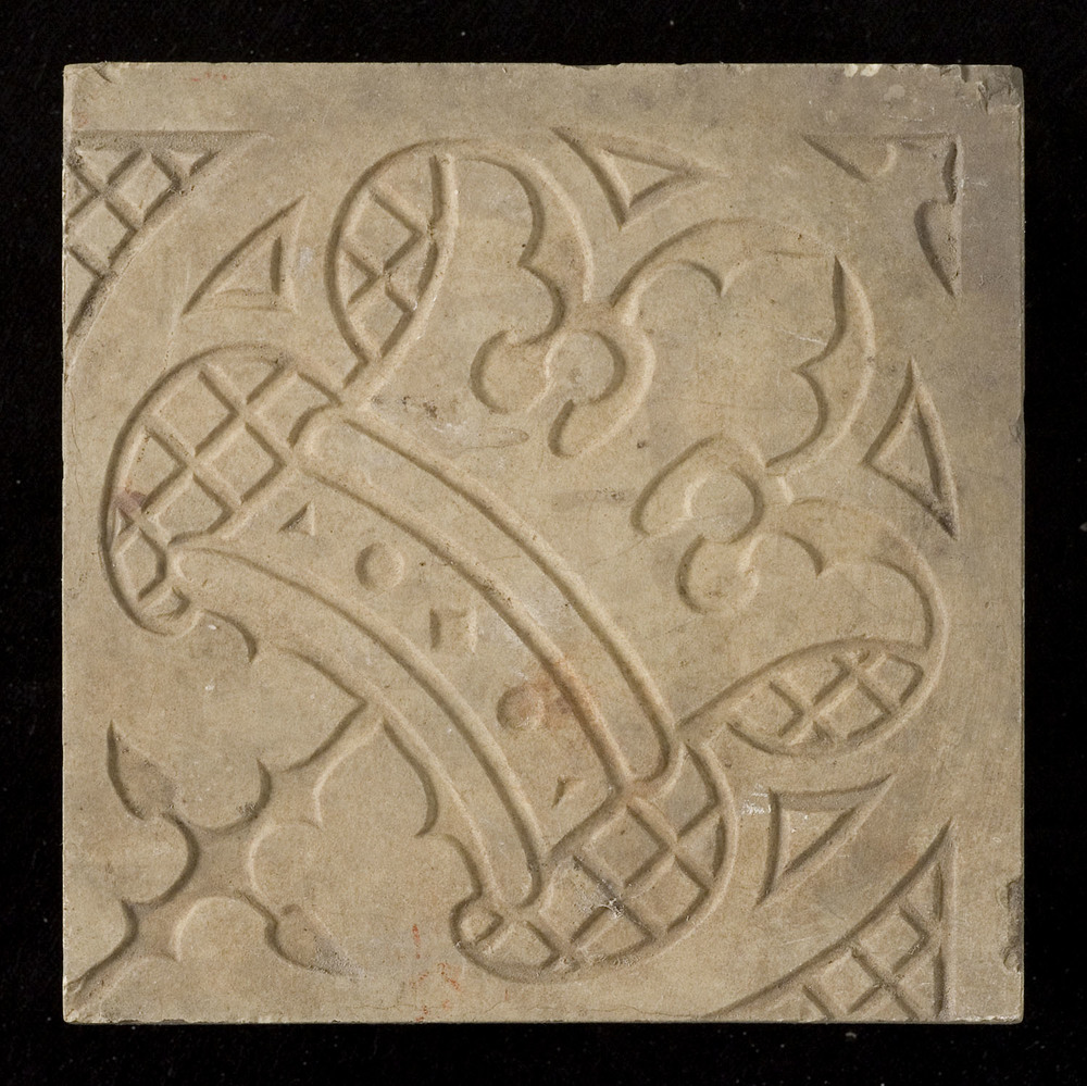 Tegel in reliëf, met voorstelling: ornament met flor...