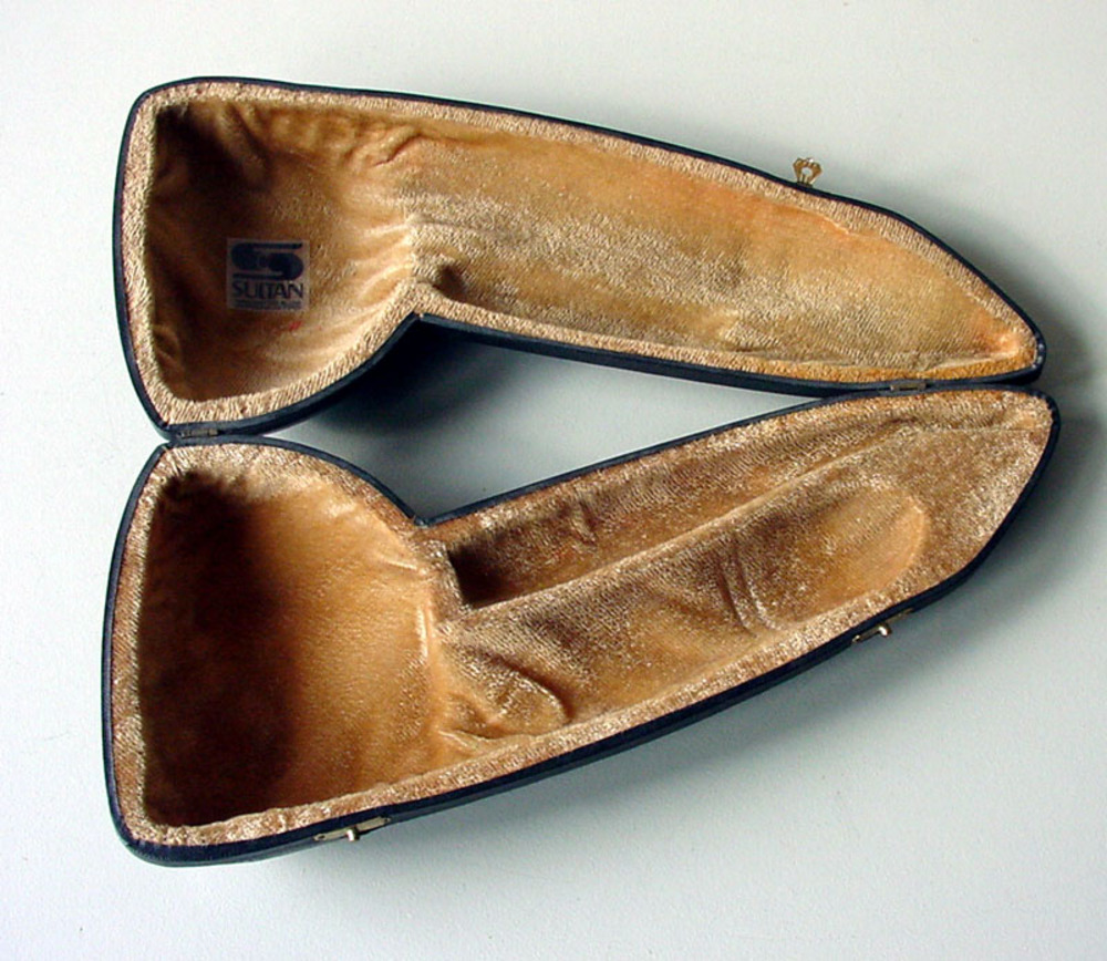 Pijp in een etui van meerschuim leer textiel en plas...