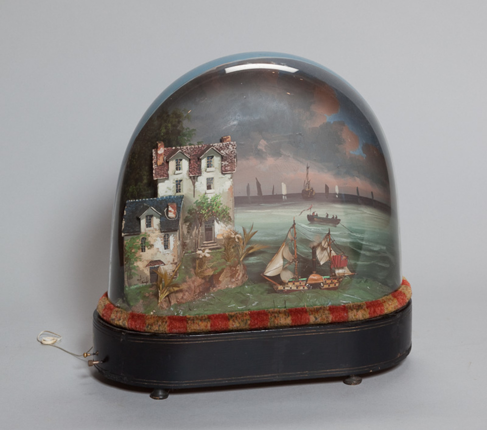 Speelwerk in stolp uit 1870, voorstellend een schip ...