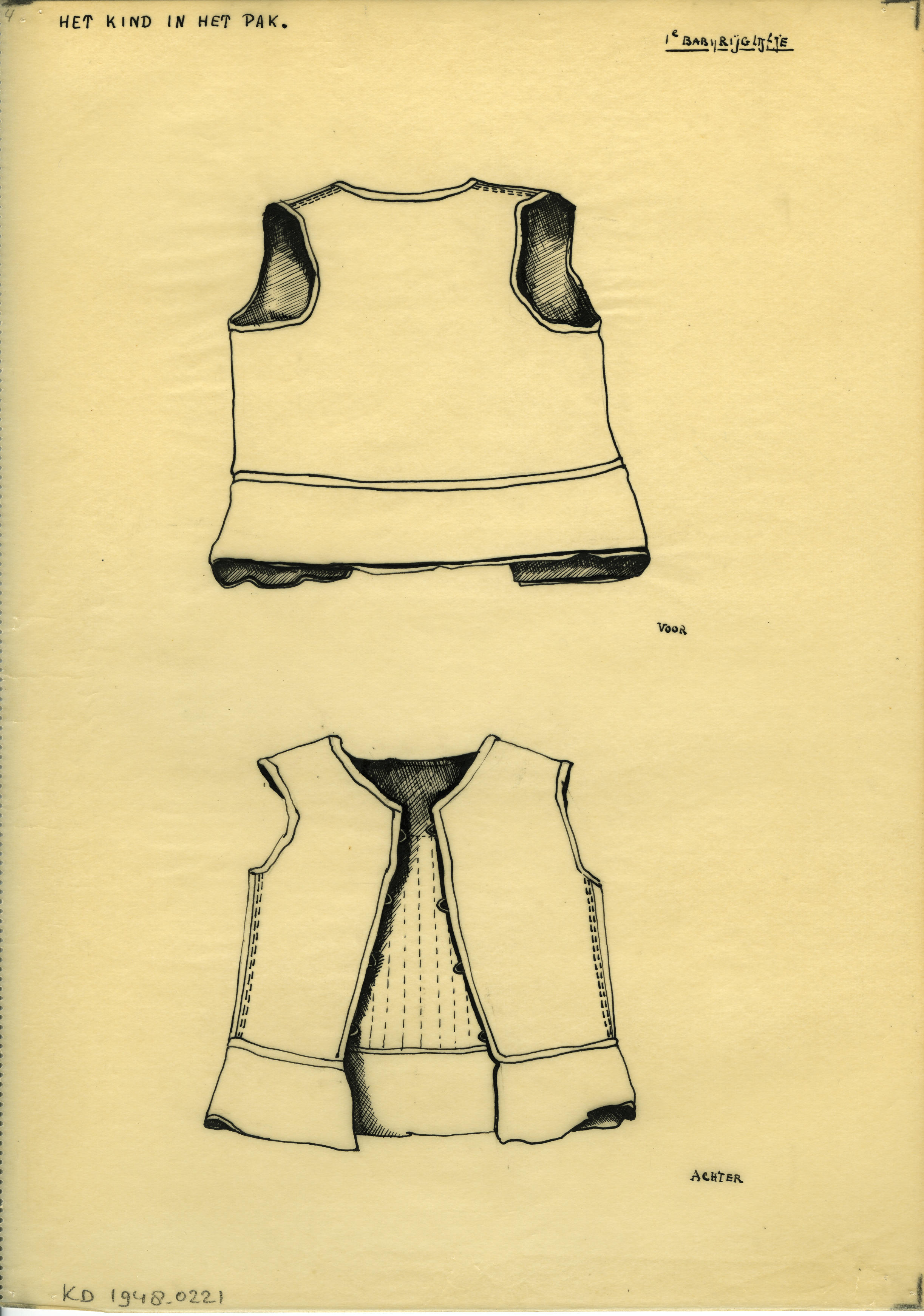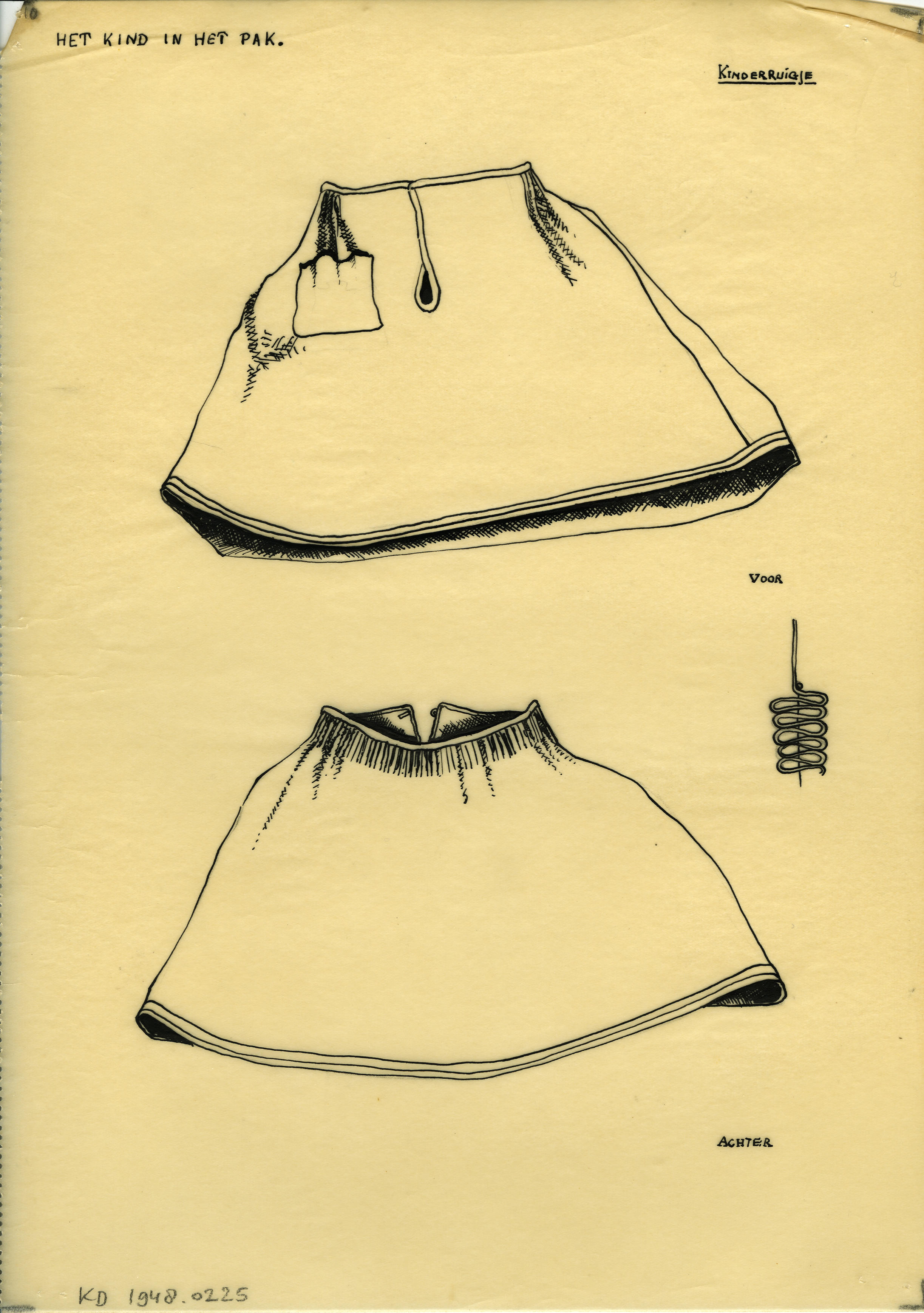 Tekening van een kinderruigje, Marken (patroontekening)