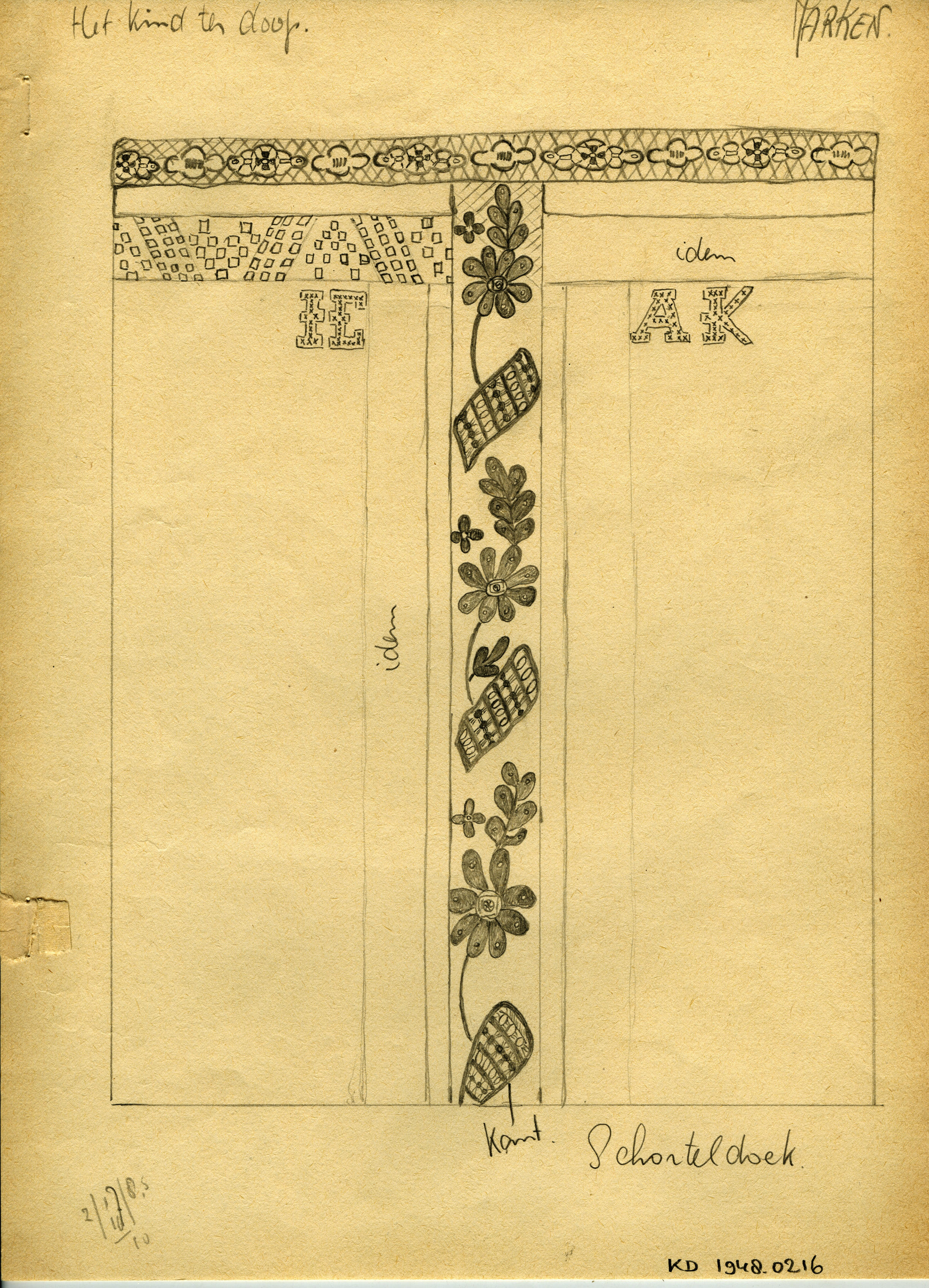 Tekening van belegdoekje doopdeken, Marken (patroont...
