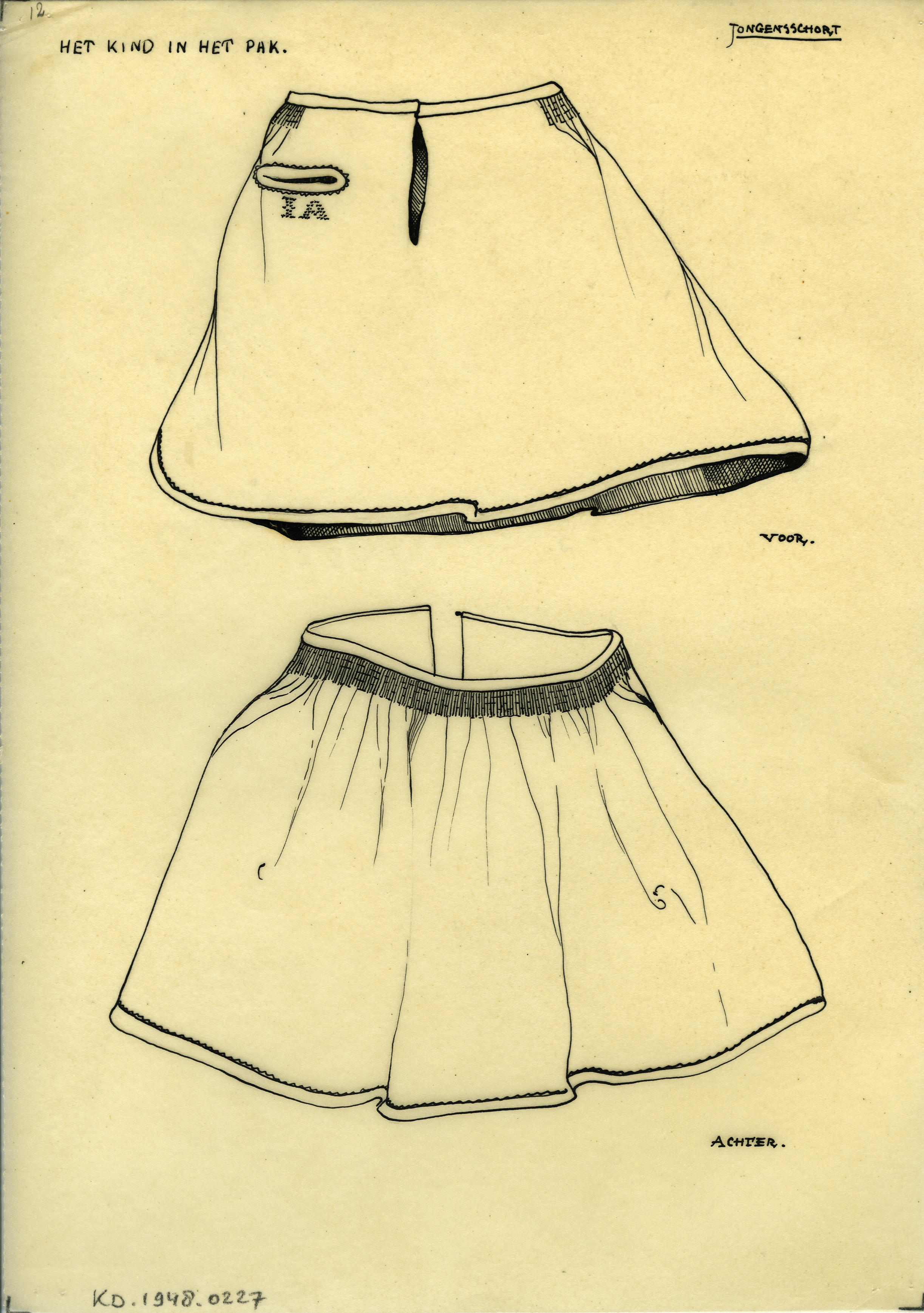 Tekening van een jongensschort, Marken (patroonteken...