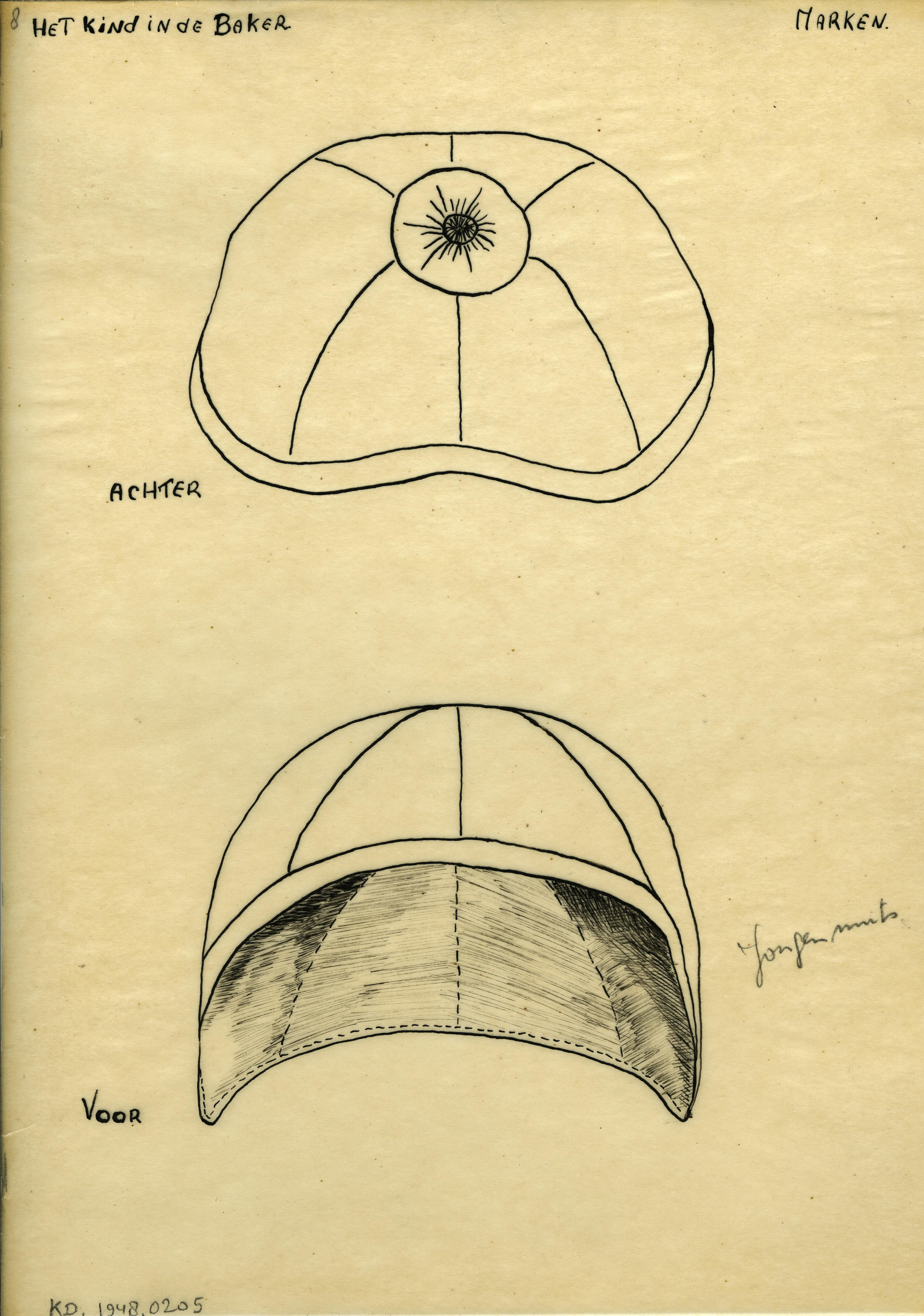 Tekening van jongensmuts voor kind in de baker, Mark...