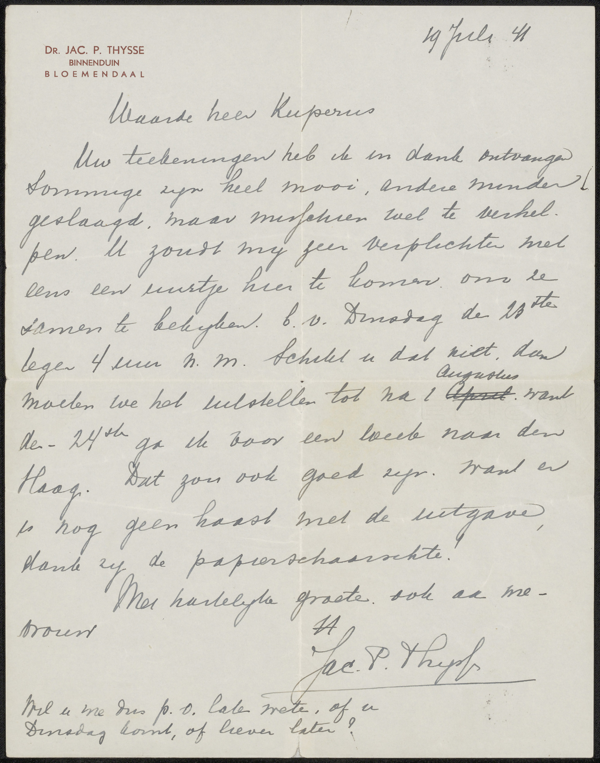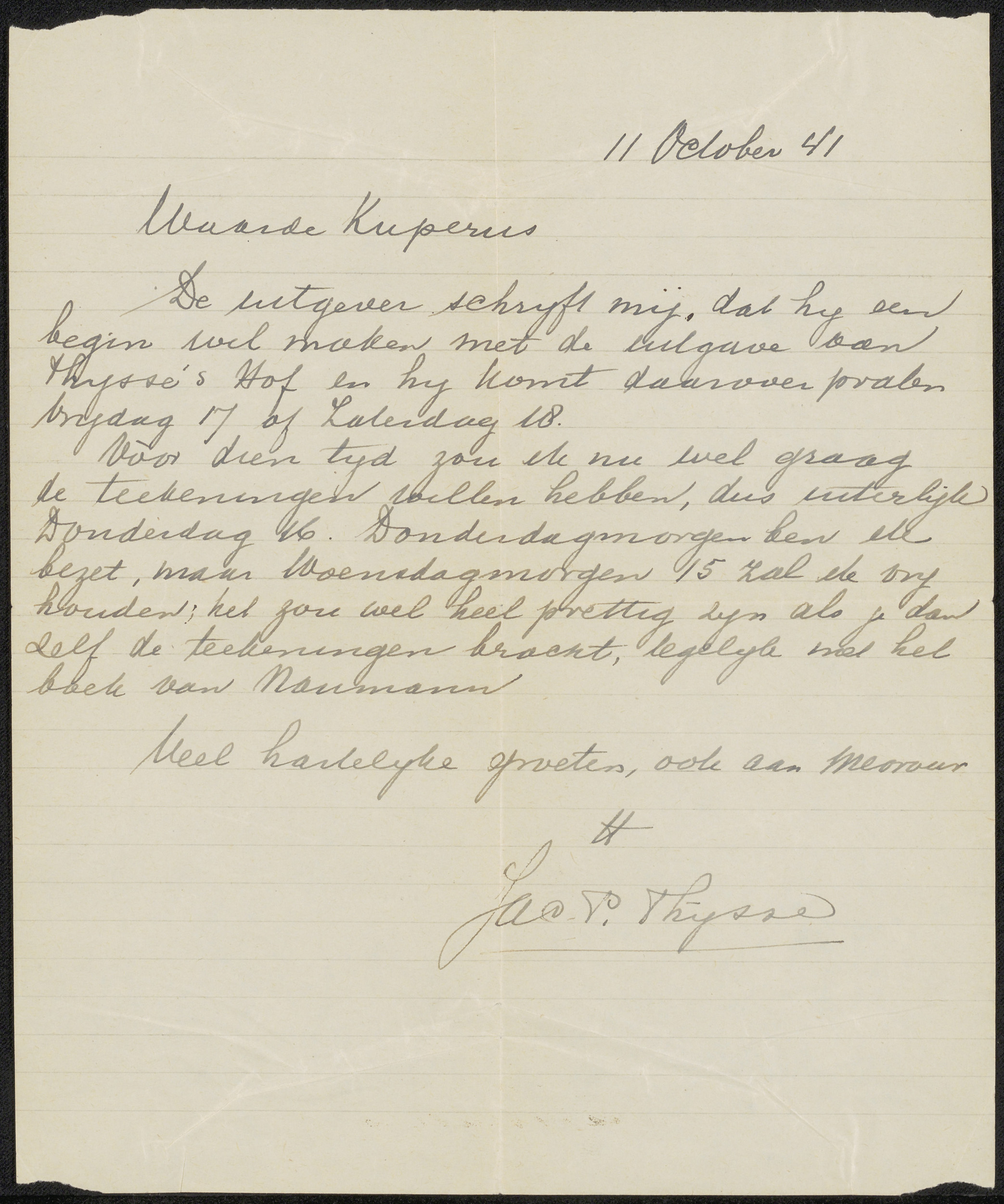Brief aan Sjoerd Kuperus en mevrouw Kuperus