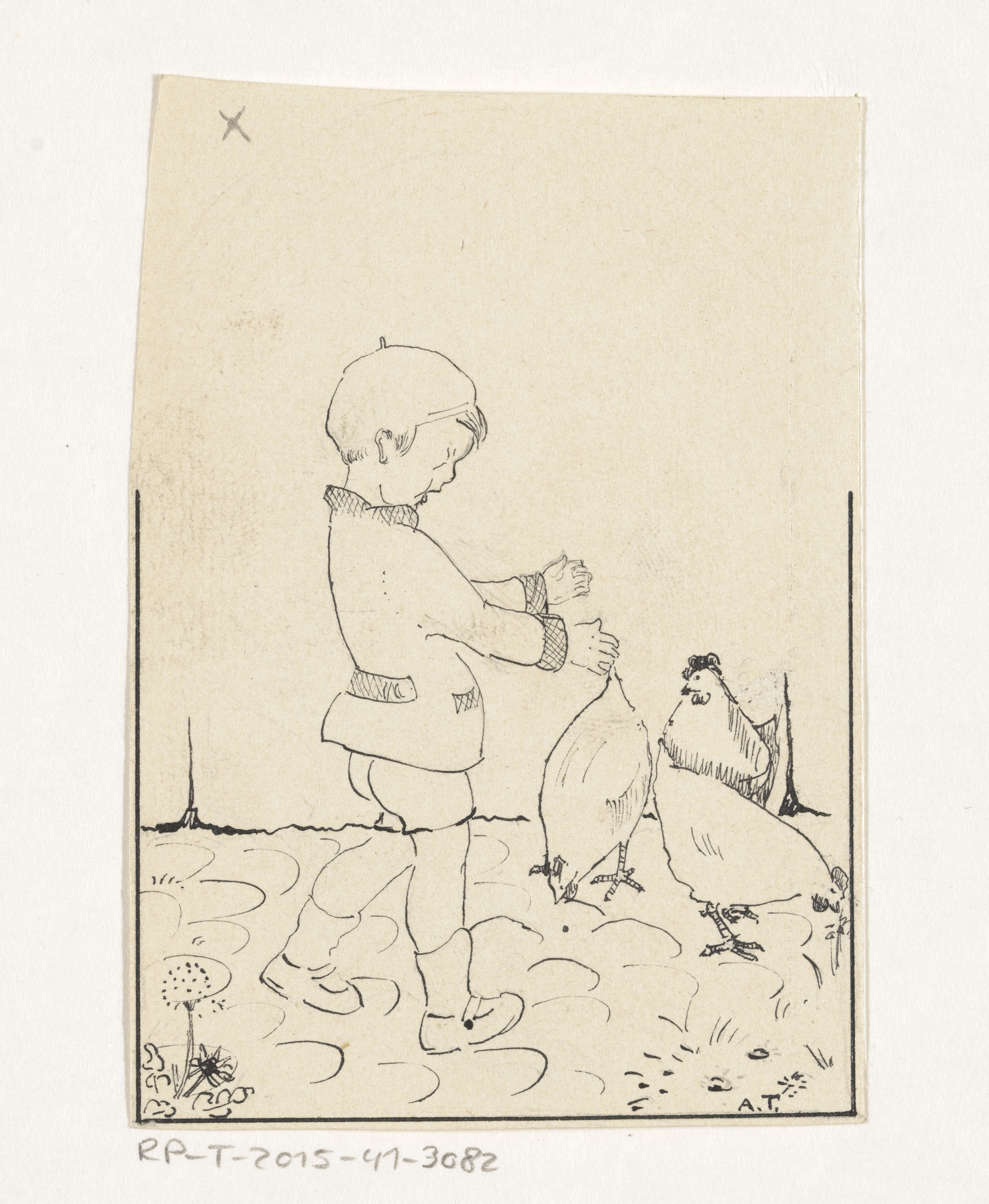 Jongen tussen de kippen