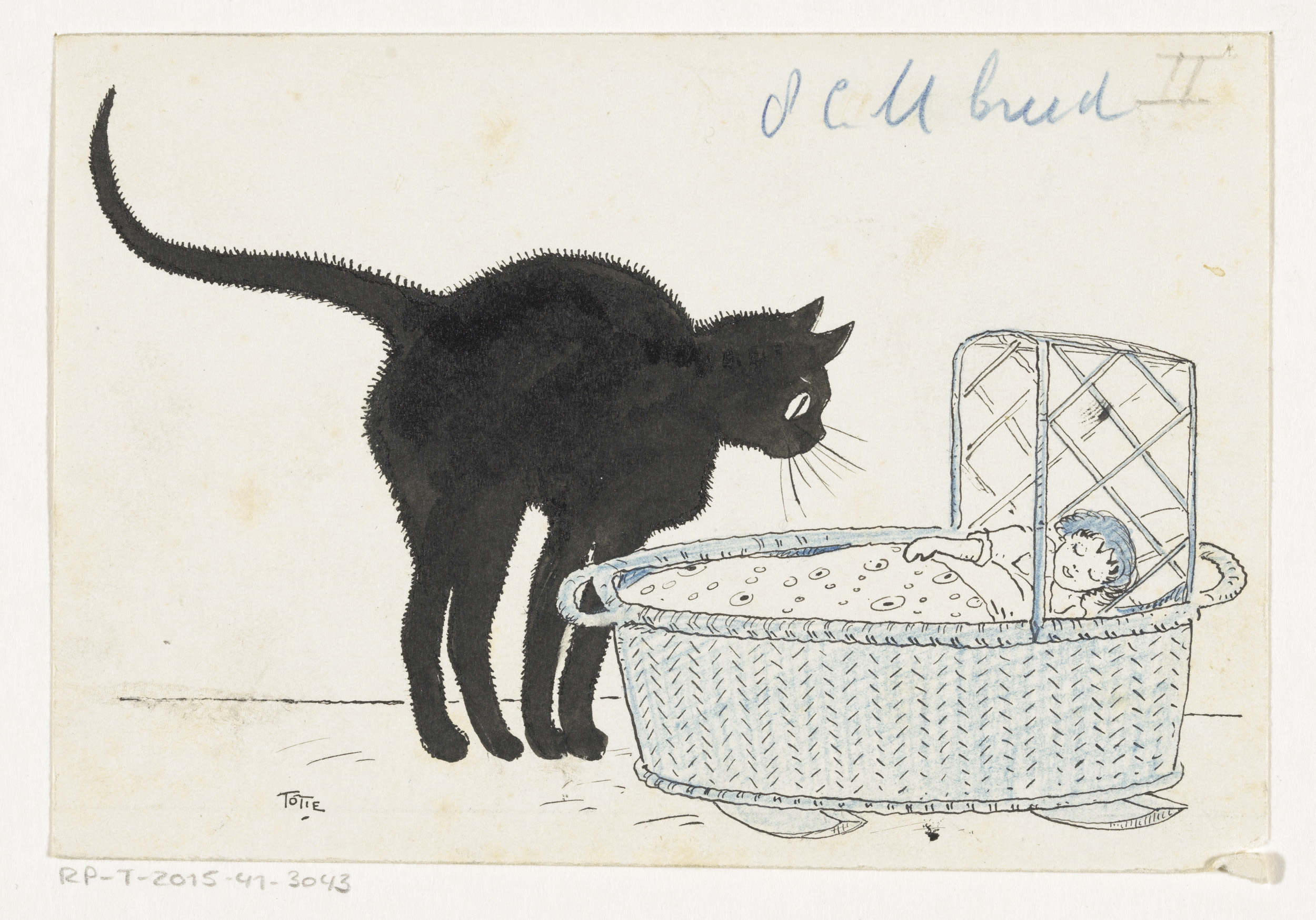 Kat kijkt in een poppenmand