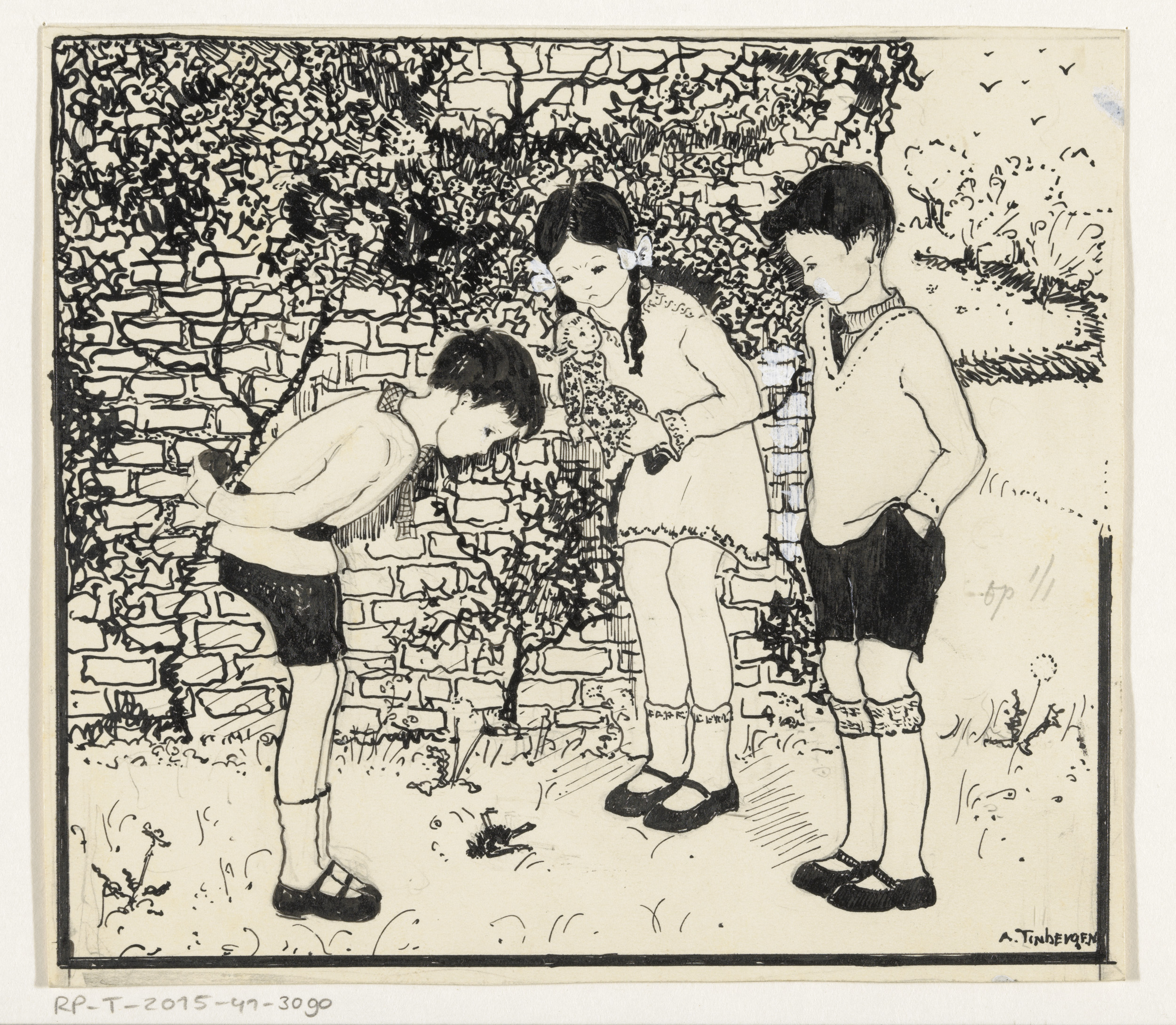 Drie kinderen kijken naar een gevallen vogel